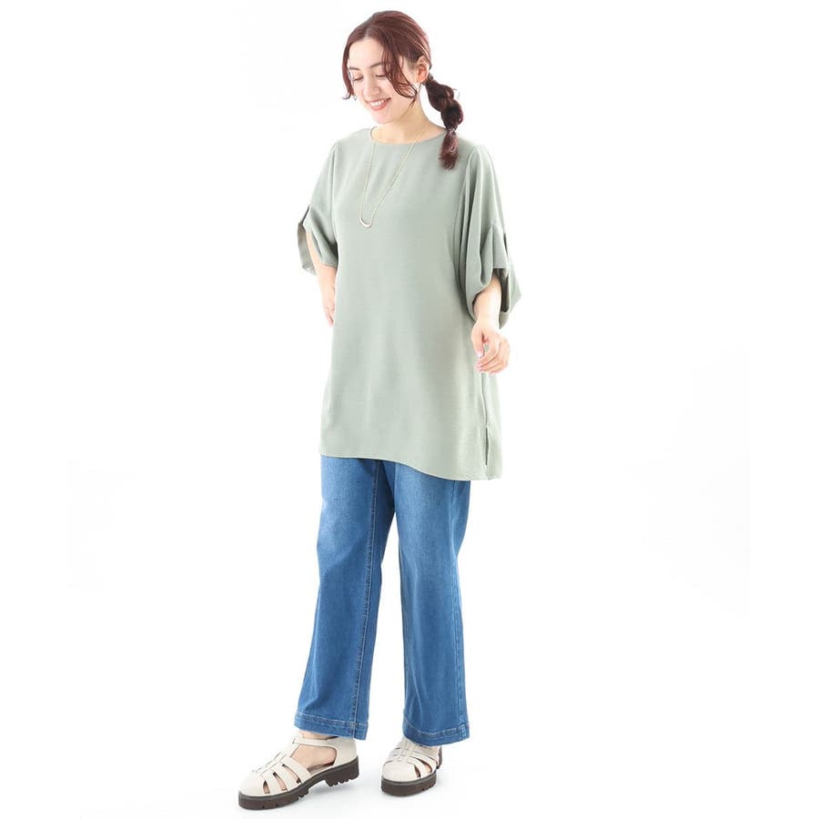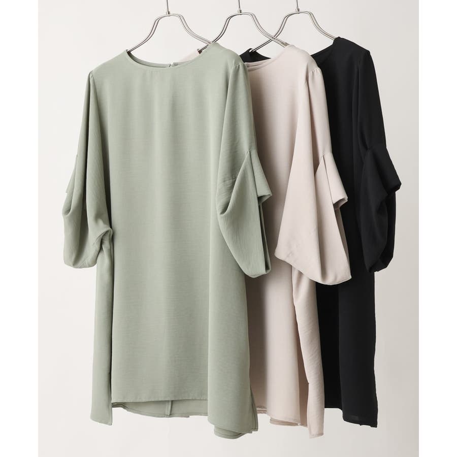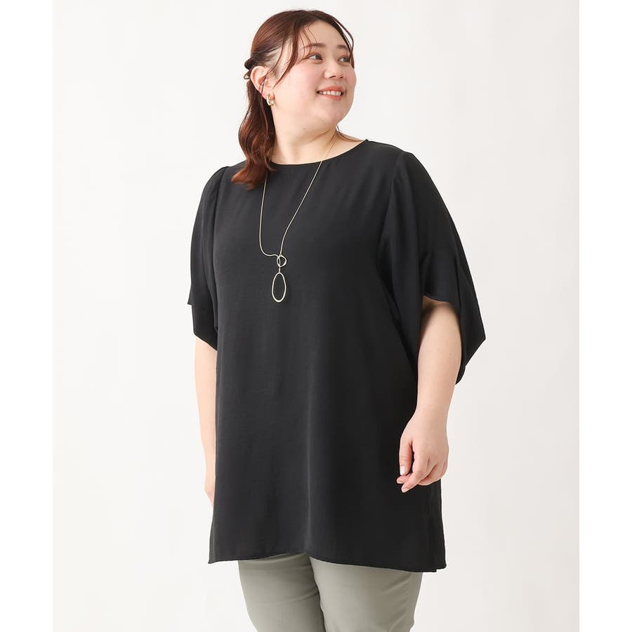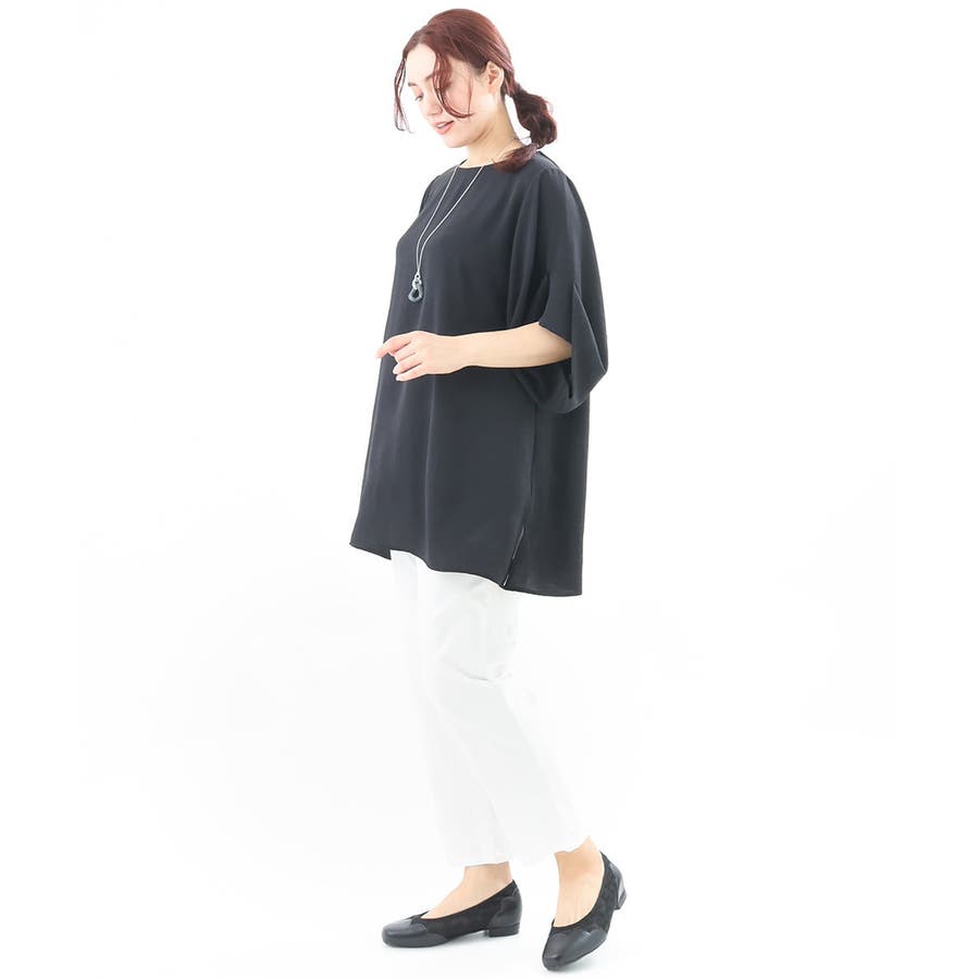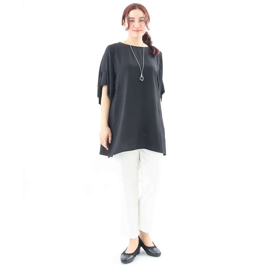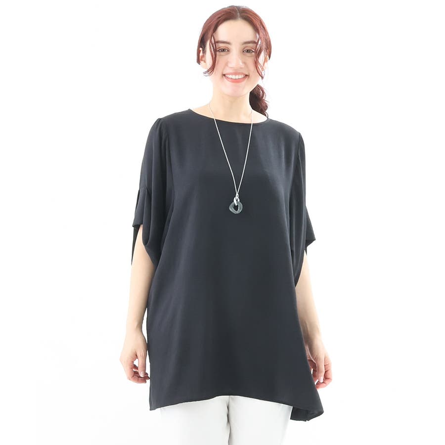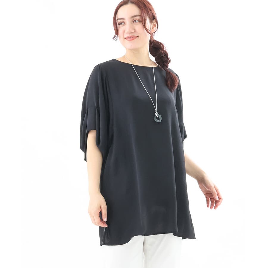 ターンバックした幅広の袖がポイントのデザインチュニック。
