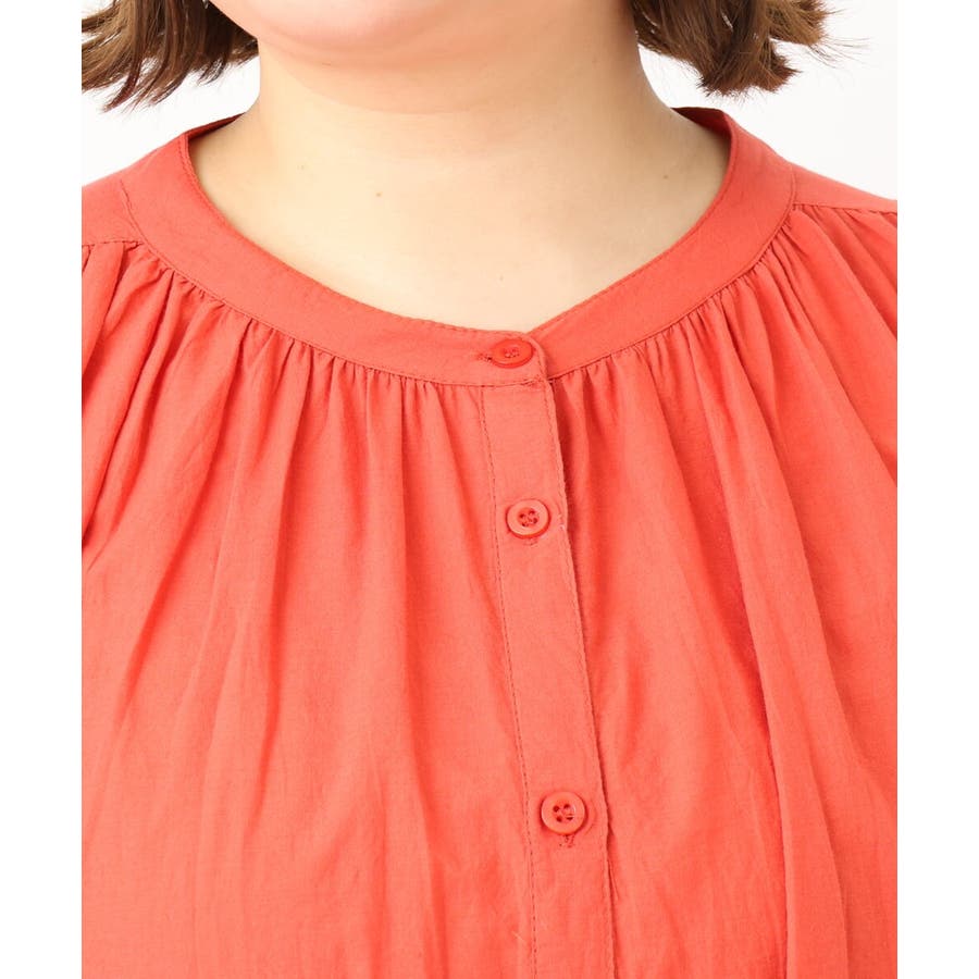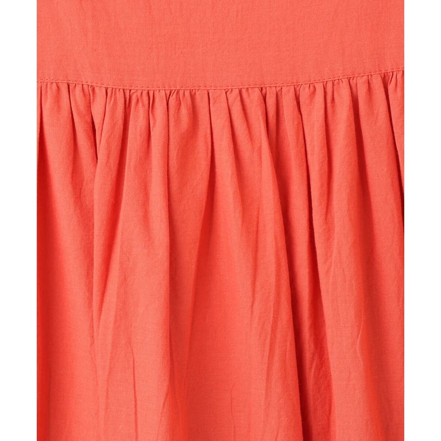 襟ぐりのギャザーと後ろ身頃のギャザーディテールでふんわり涼しく着用いただけます。