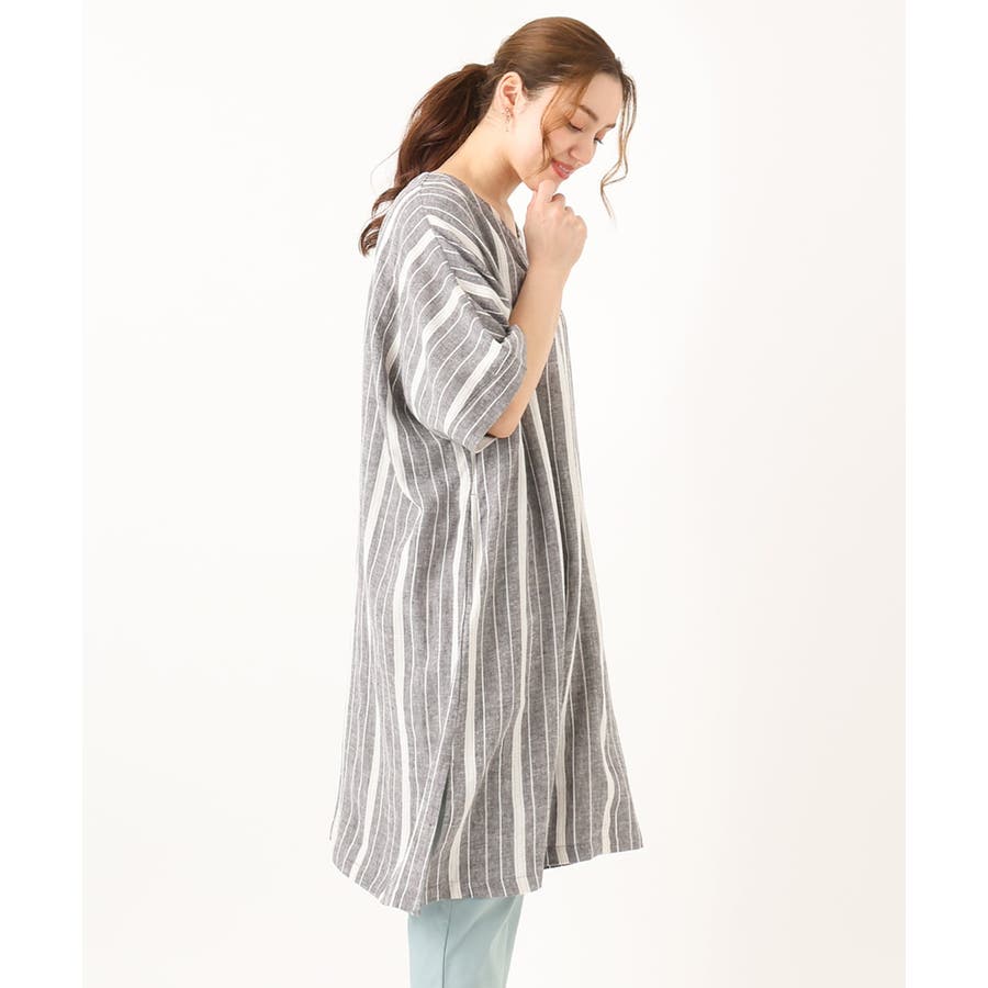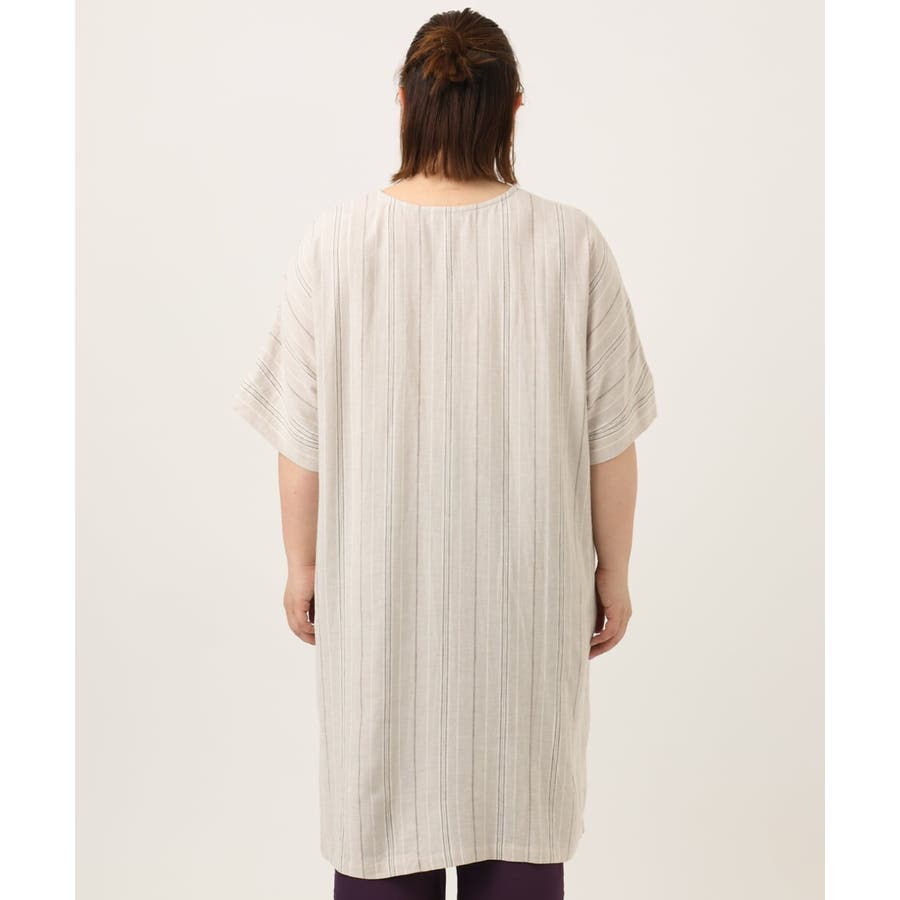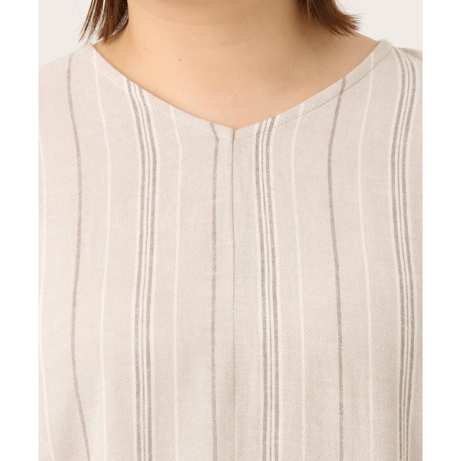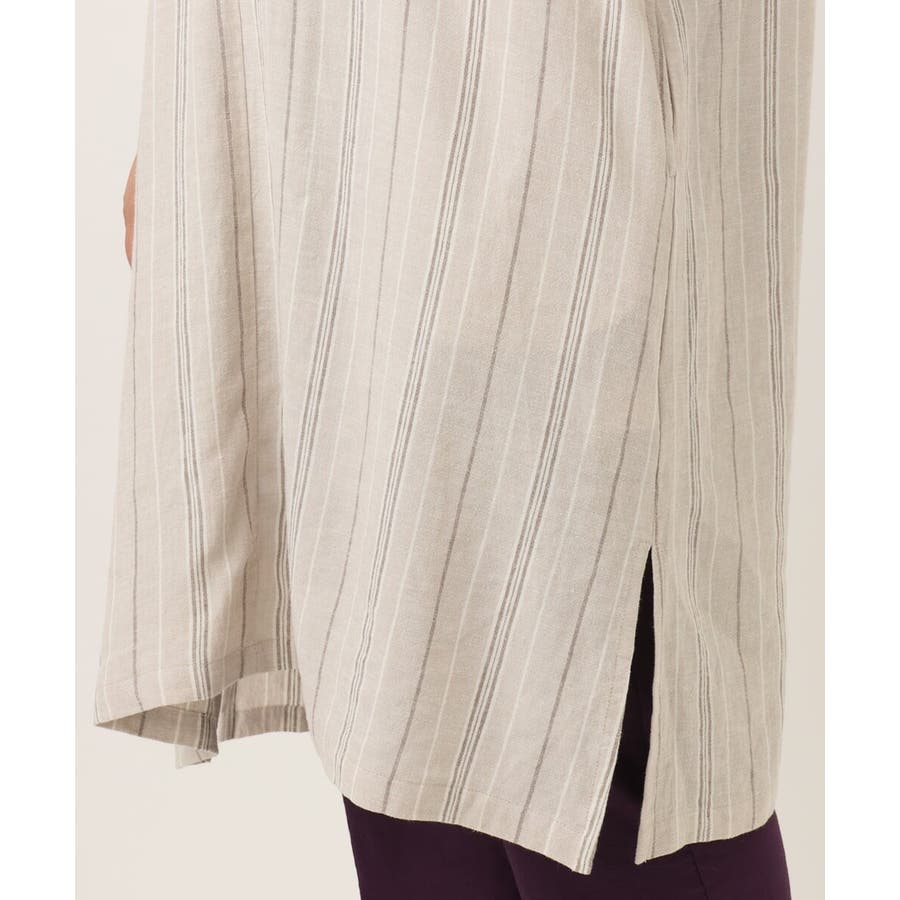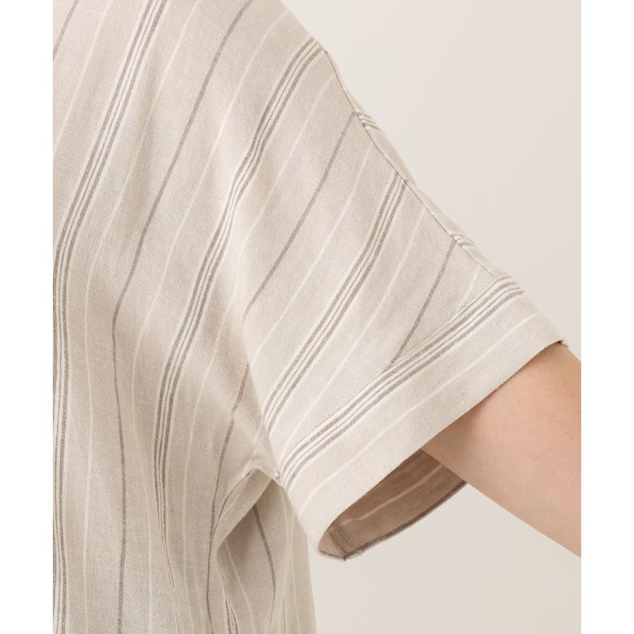 麻混のさらっと心地よい平織り素材のしわが気にならない素材の先染めストライプです。