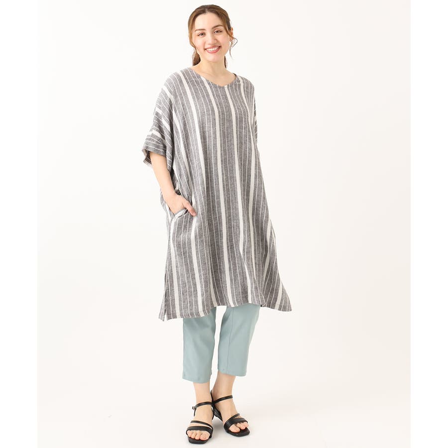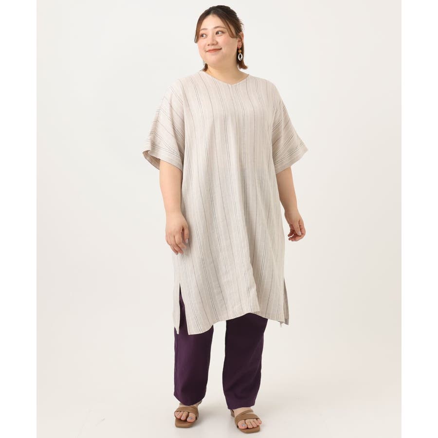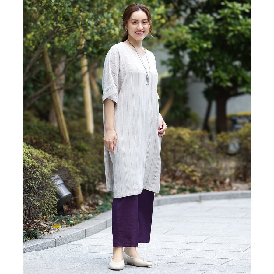 Iラインですっきり見せるカフタンチュニックは夏の定番。