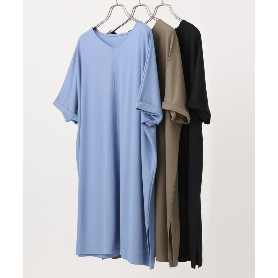 浅いVネックで襟元もすっきり着られます。
