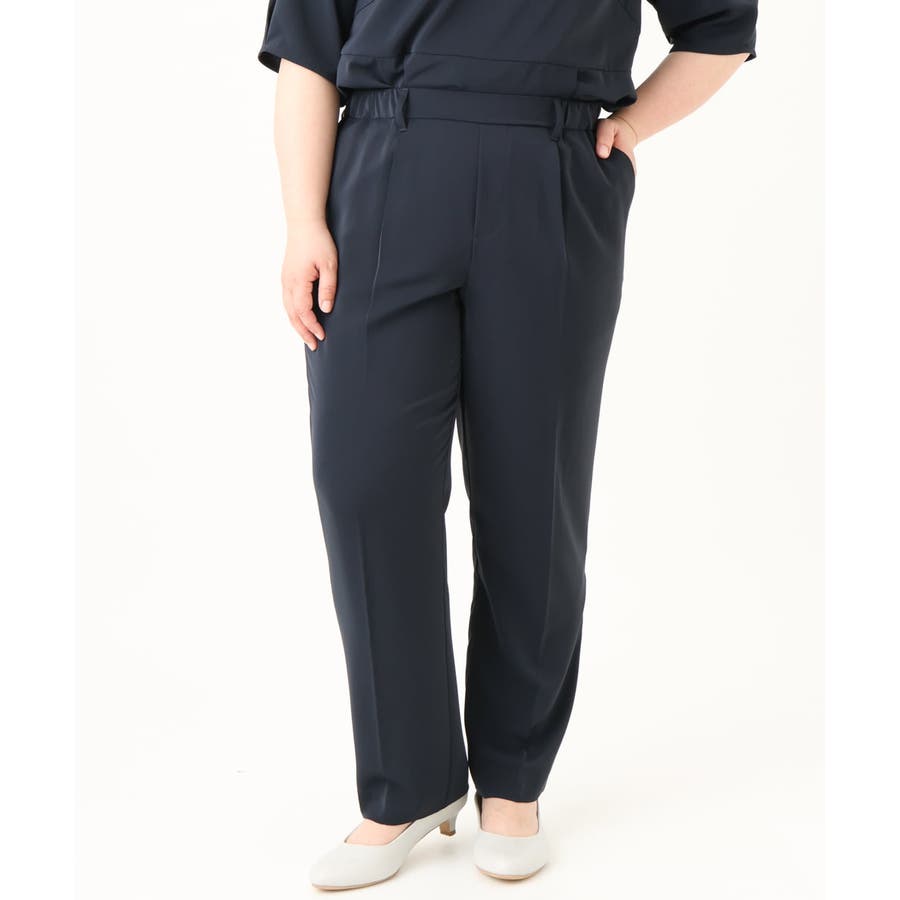 パンツはゆるテーパードのシルエットにセンタープレス入りでスッキリと見せます。