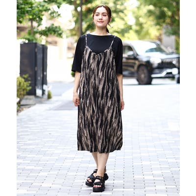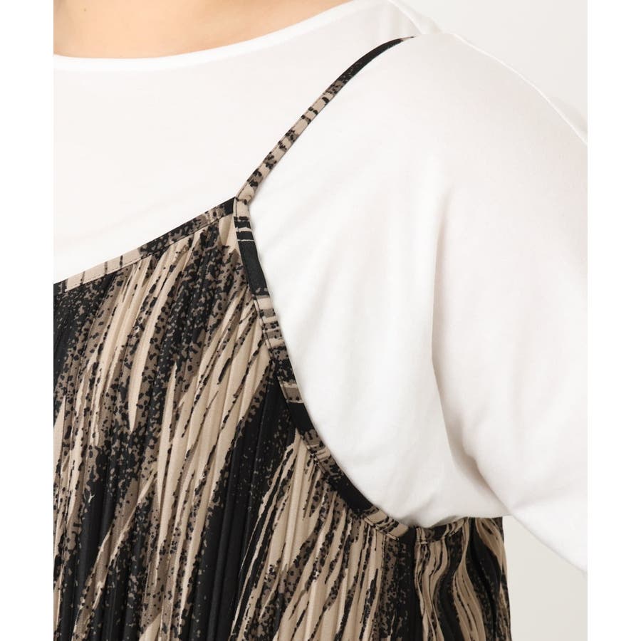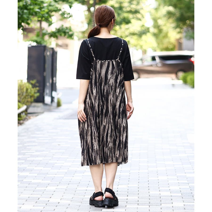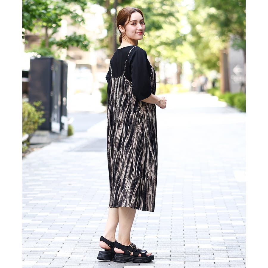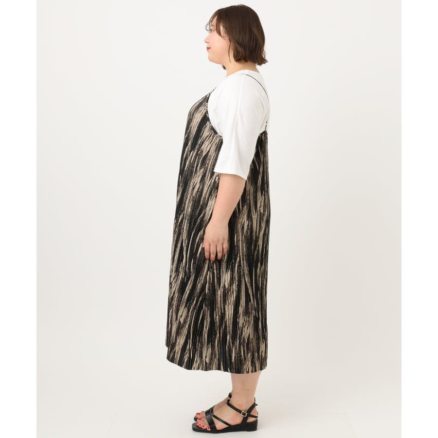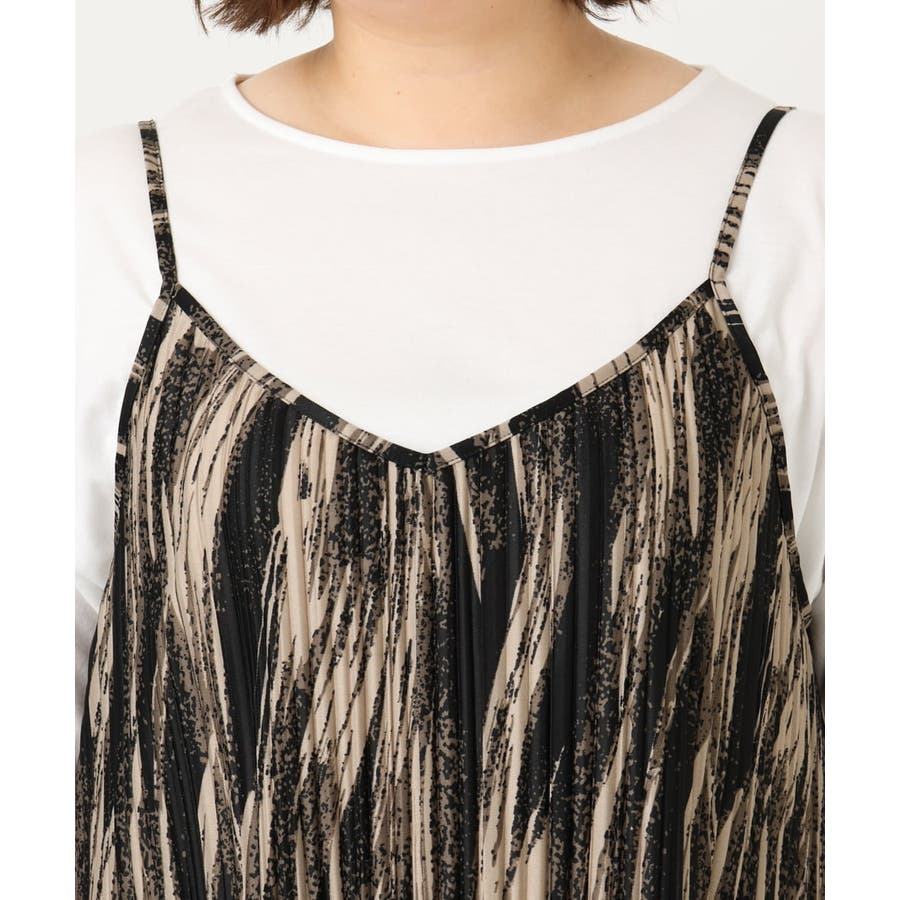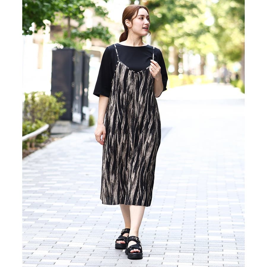 体のラインを拾いにくいランダムプリーツのキャミソールワンピース。