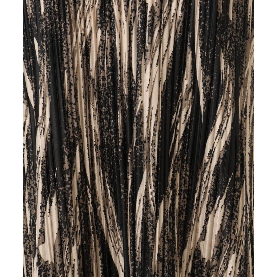 ポリエステルスムースジャージーに同色系のアブストラクト柄をのせた生地と無地生地にランダムプリーツをかけた生地を使用しています。
