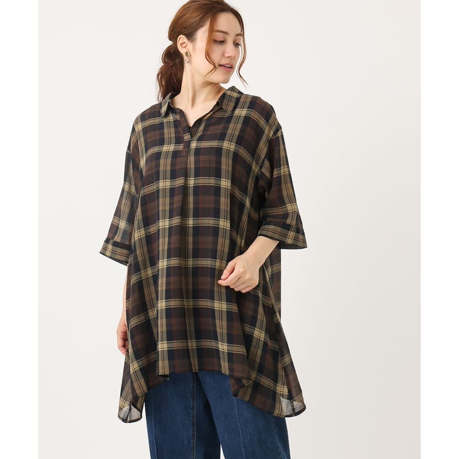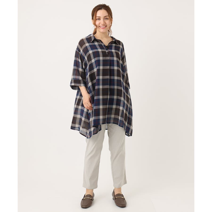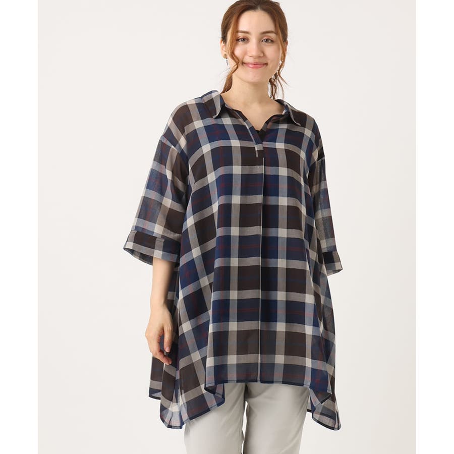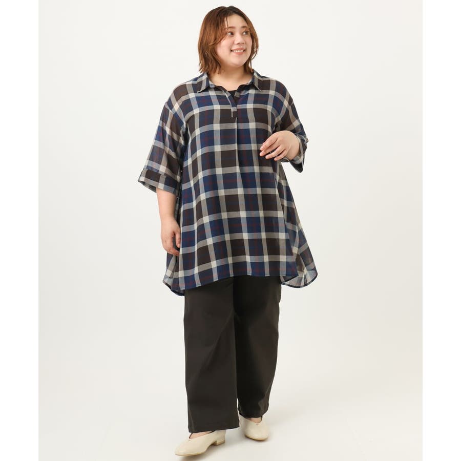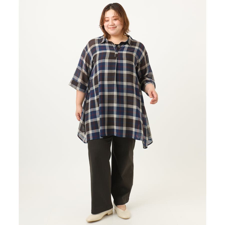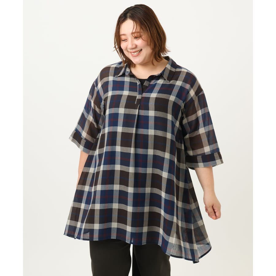 【大きいサイズ】シアーチェックシャツチュニック