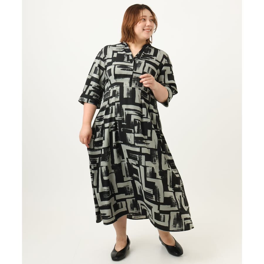 晩夏の空気感をまとったブロックプリントは、大人女性にぴったりなワンピースです。