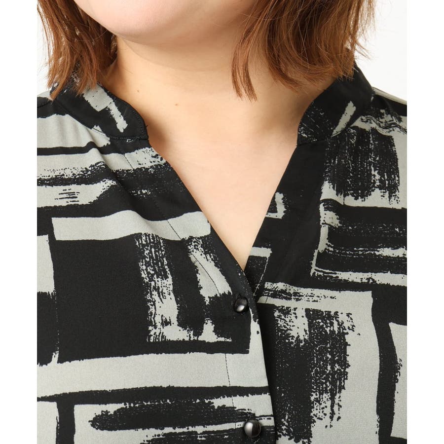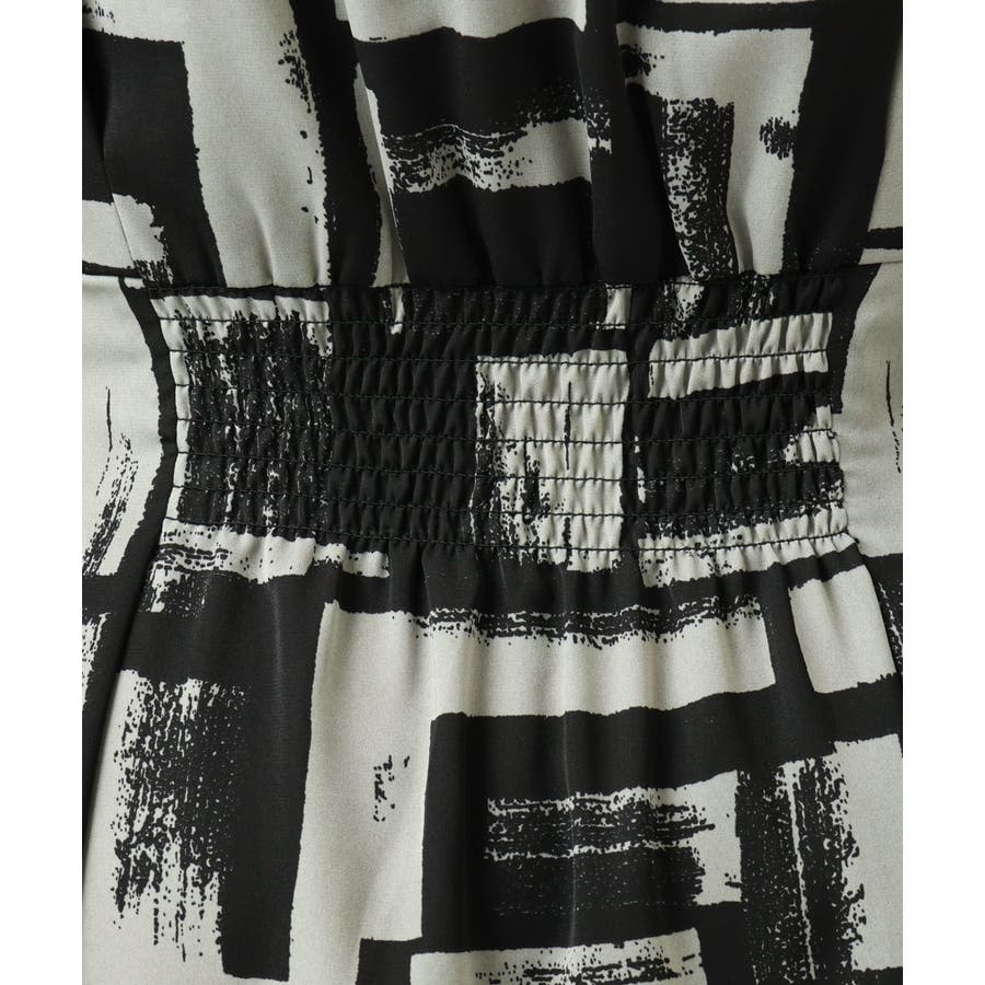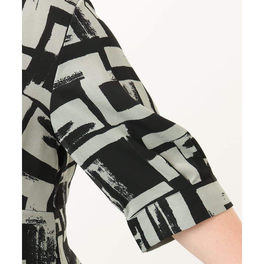 落ち感のきれいなサラッとした微光沢サテン生地に刷毛目調のブロック柄プリントをかけた生地を使用しています。