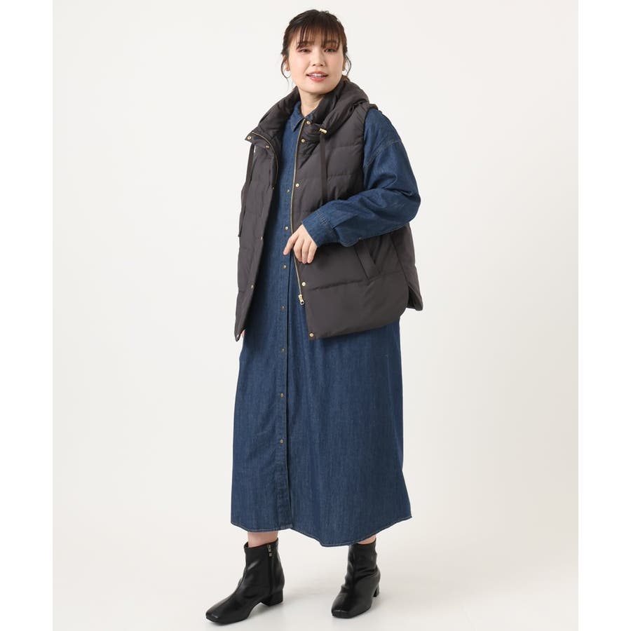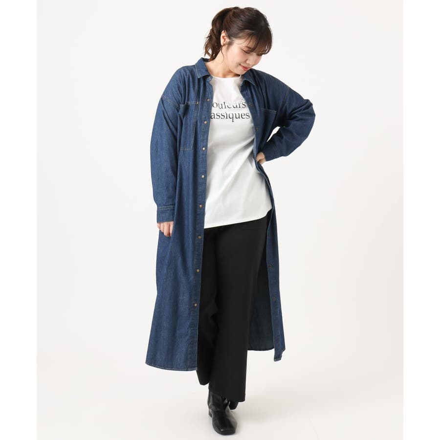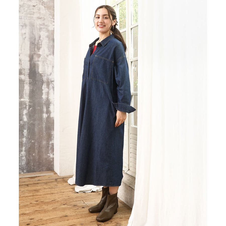カバーオール風のデザインデニムシャツは羽織としても、ワンピースとしても着まわせるトレンドアイテム。