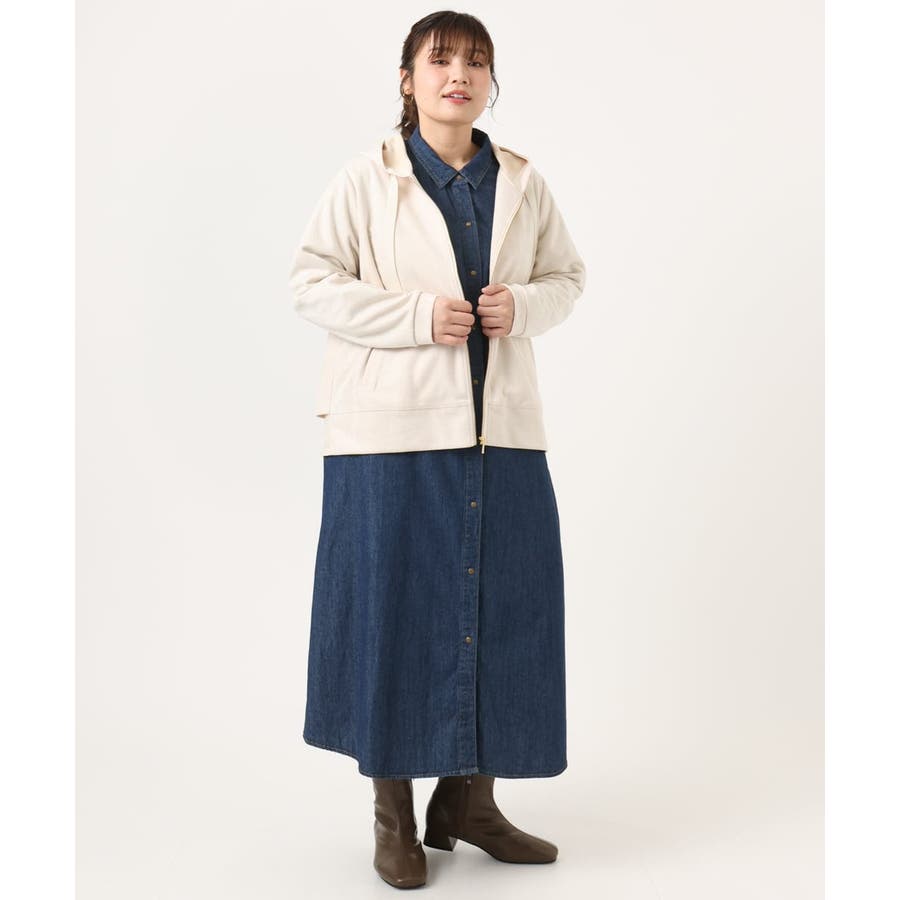 ラグランスリーブで肩まわりゆったりなので襟元はボタンをとめても、開けて襟を抜いてもこなれ感ある着こなしが楽しめます。
