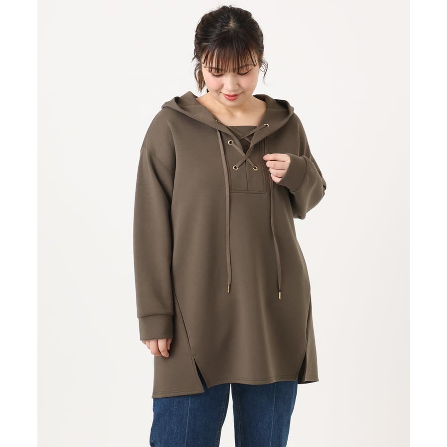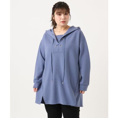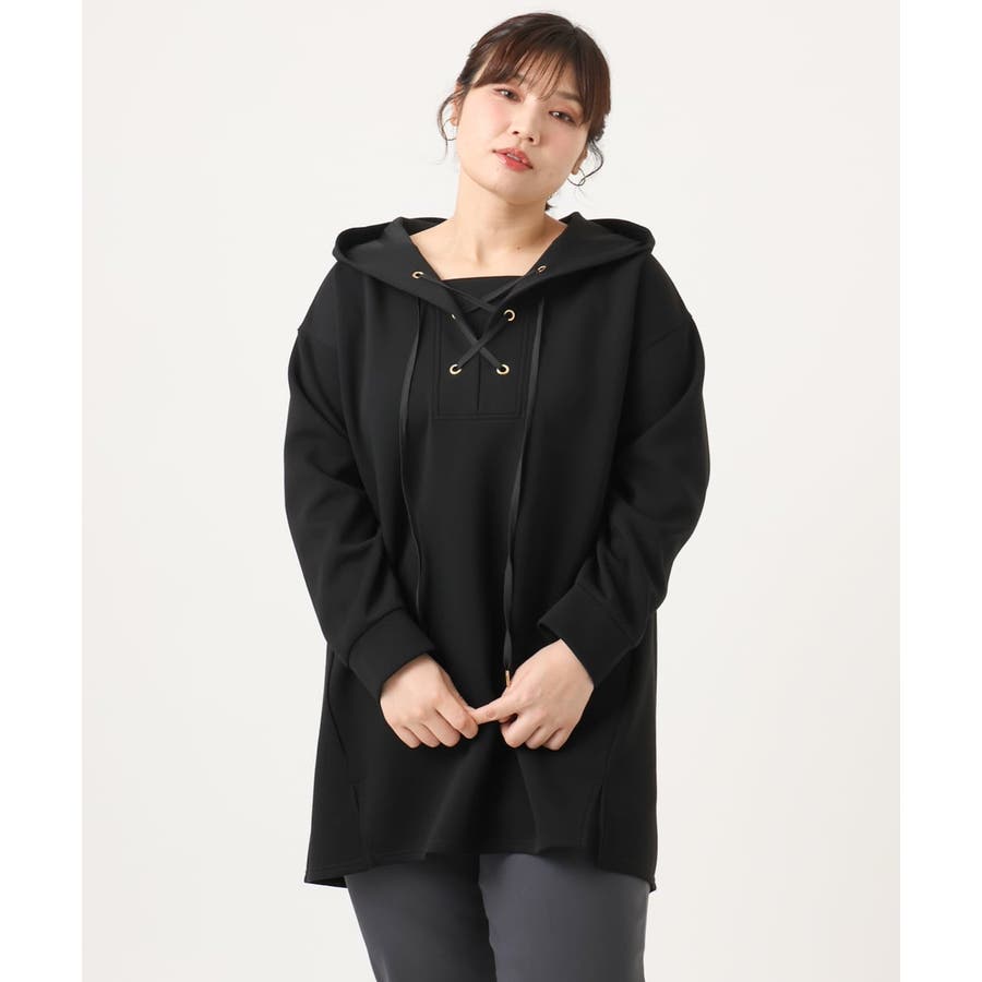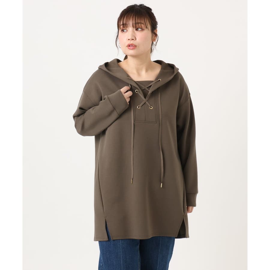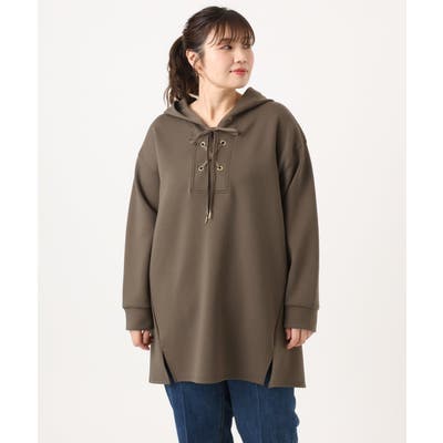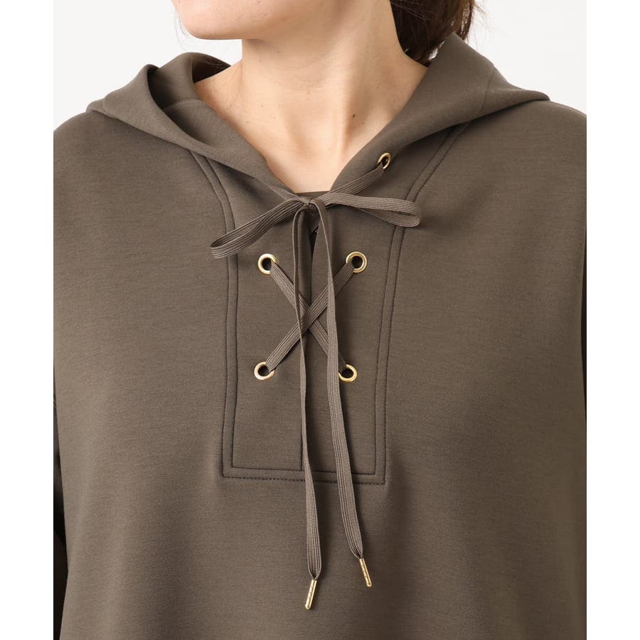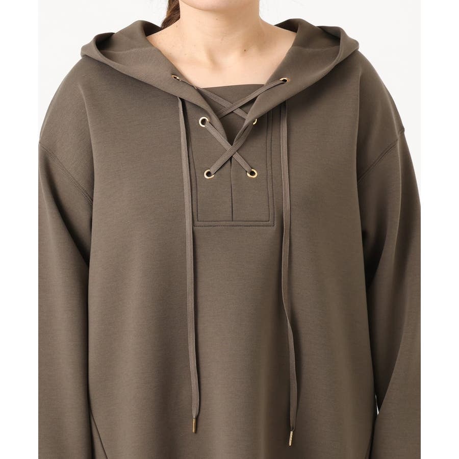 レースアップされたディテールが可愛いフードデザインチュニック。