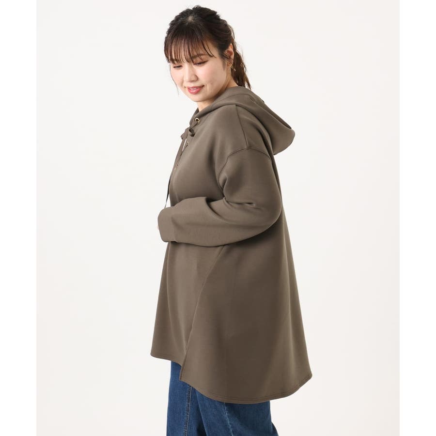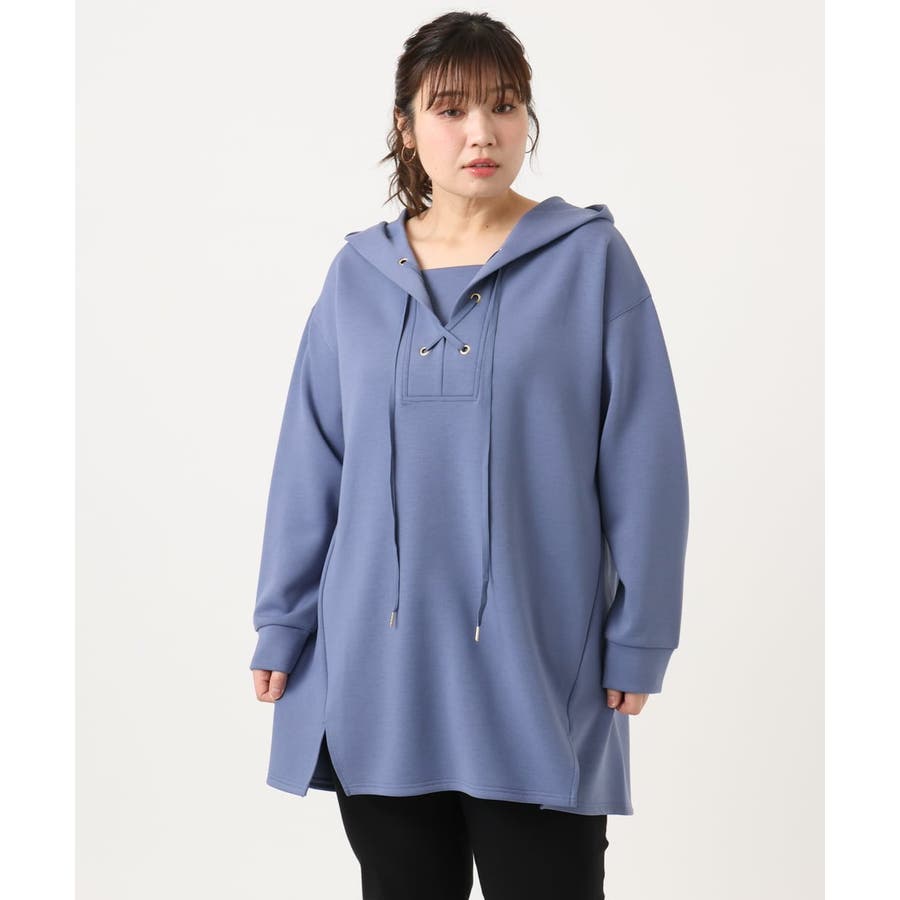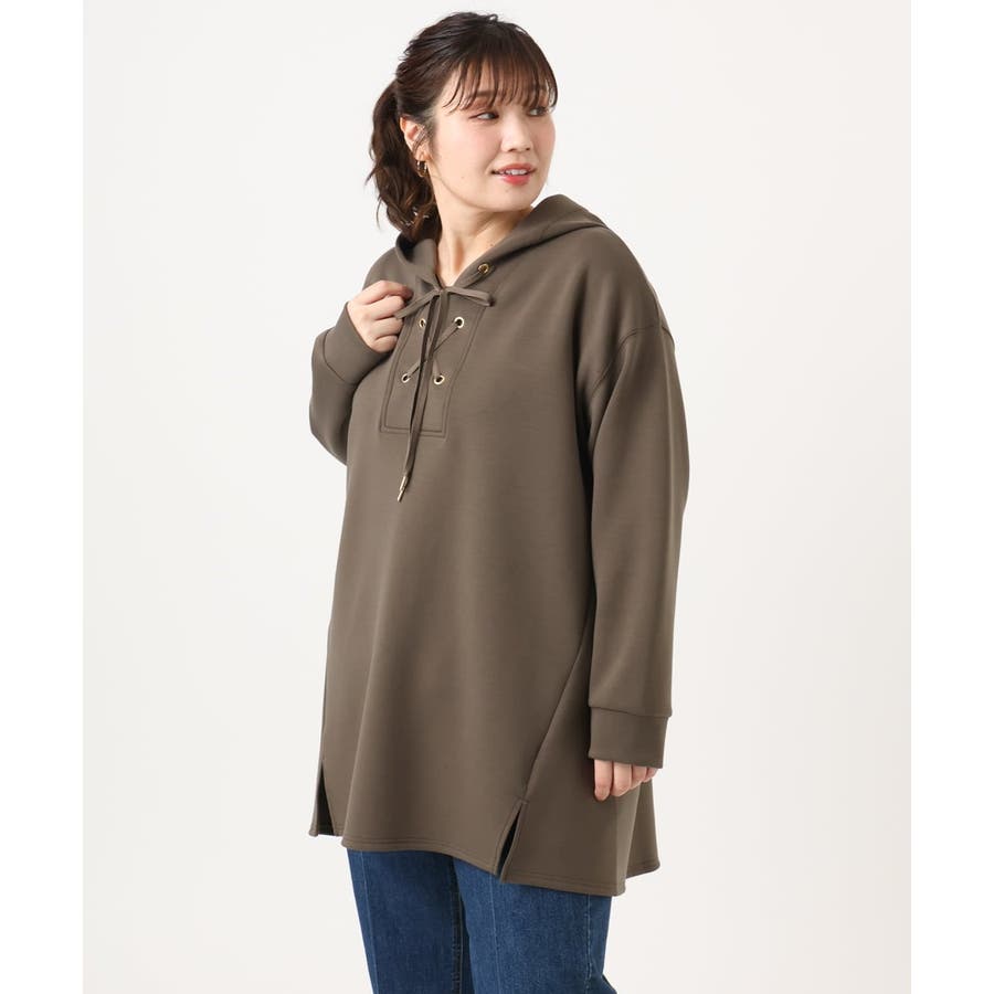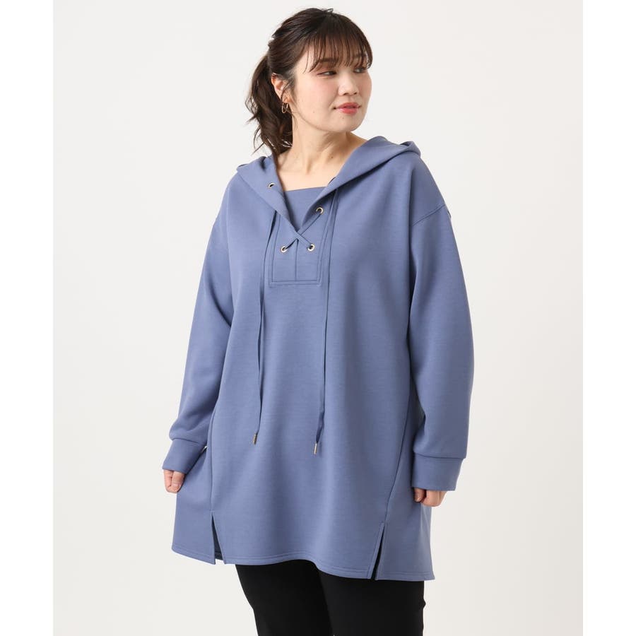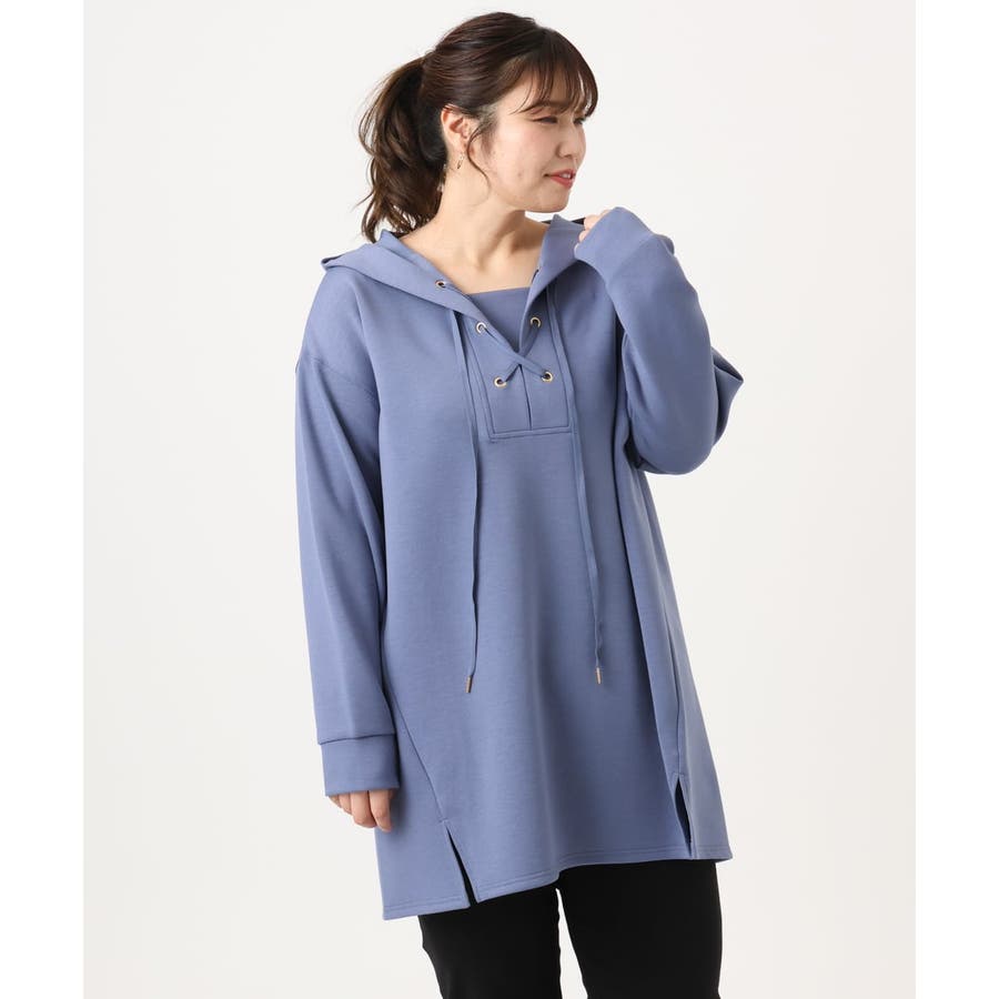 レースアップされたディテールが可愛いフードデザインチュニック。