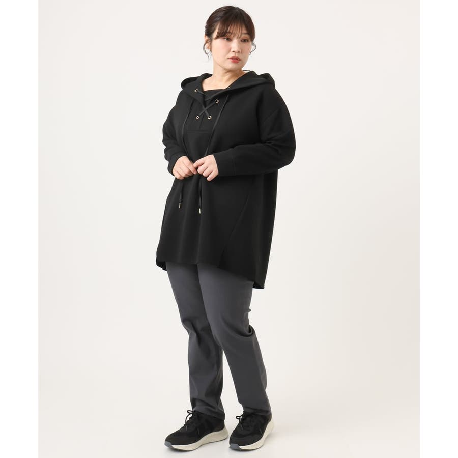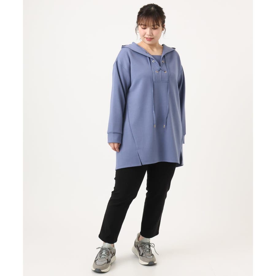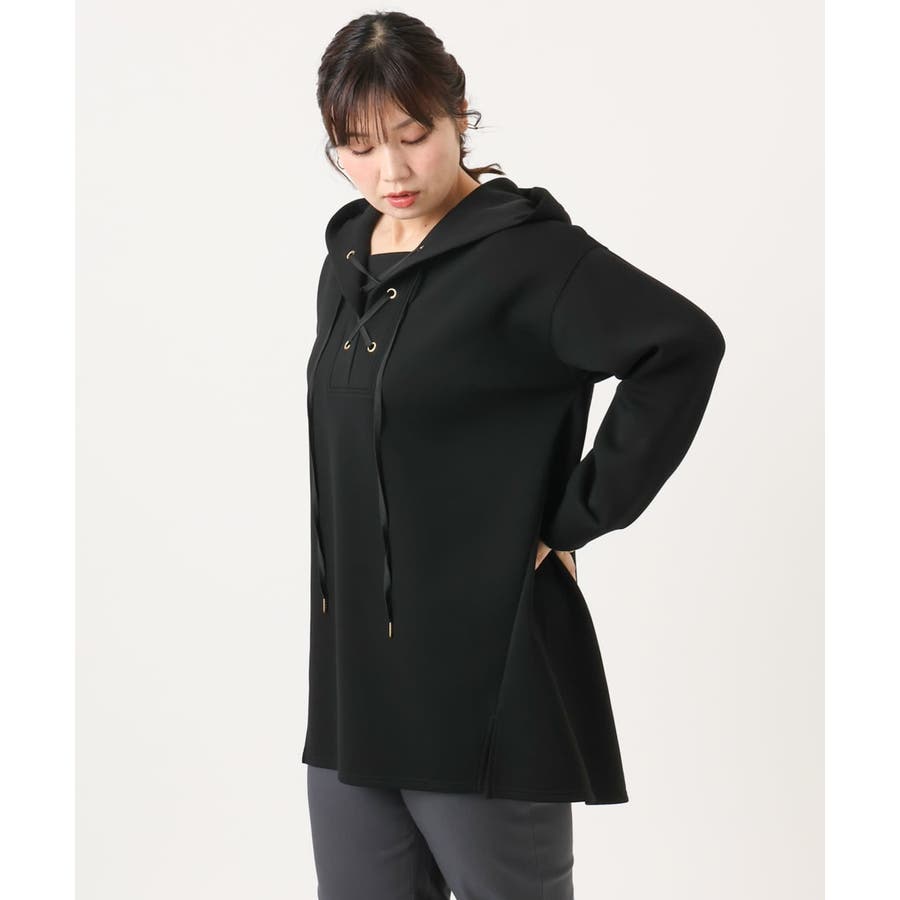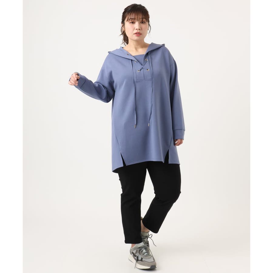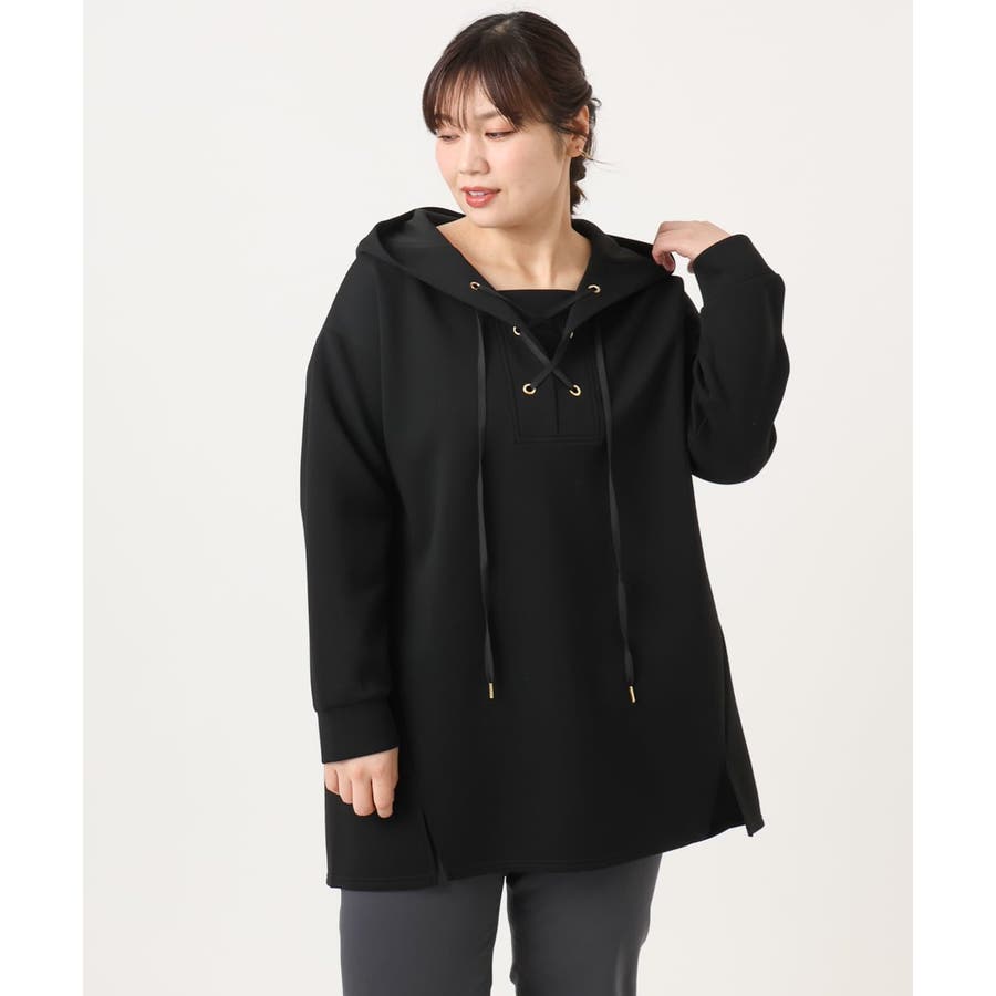 レースアップされたディテールが可愛いフードデザインチュニック。