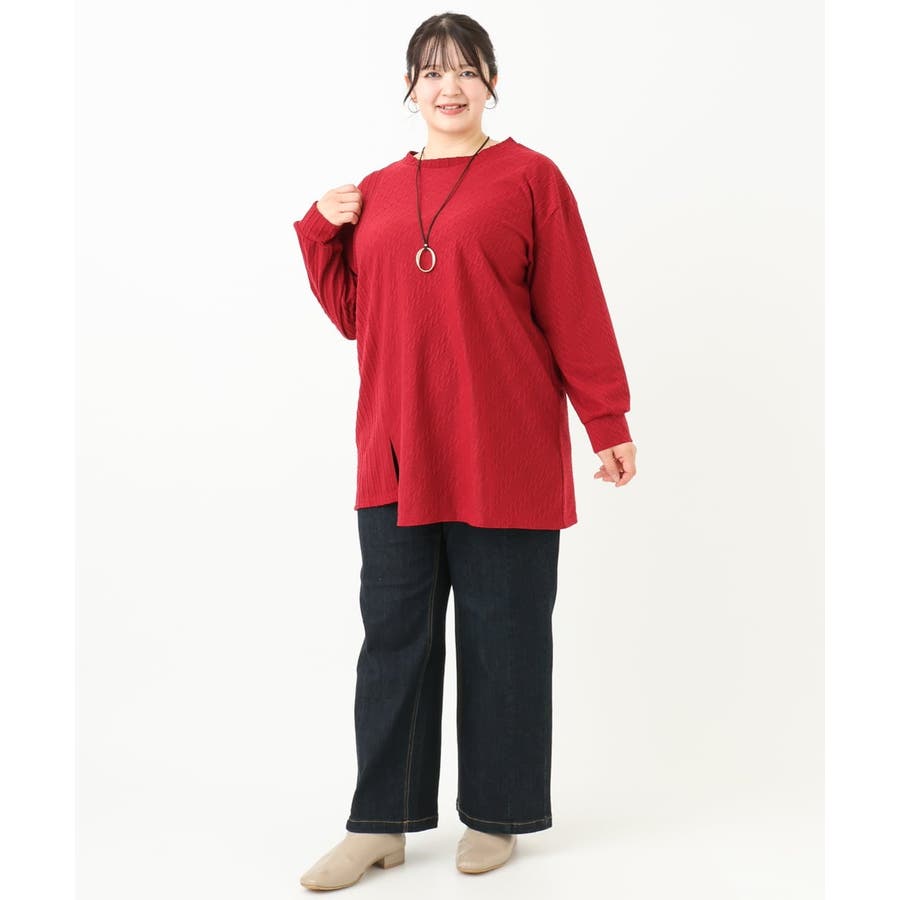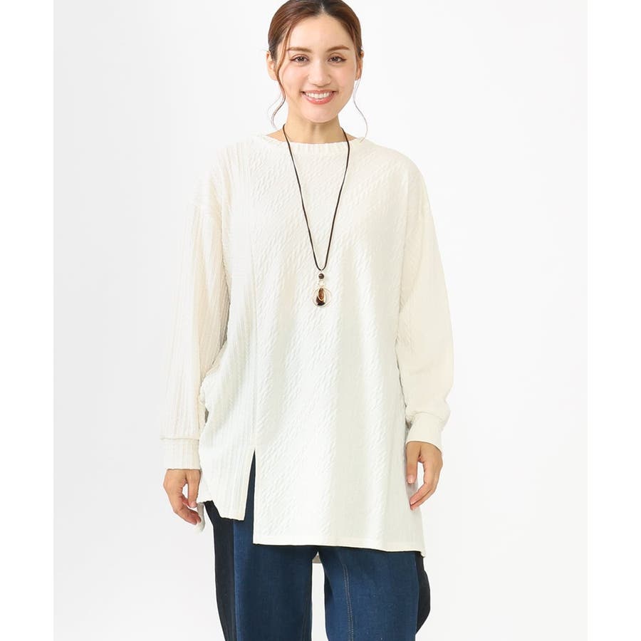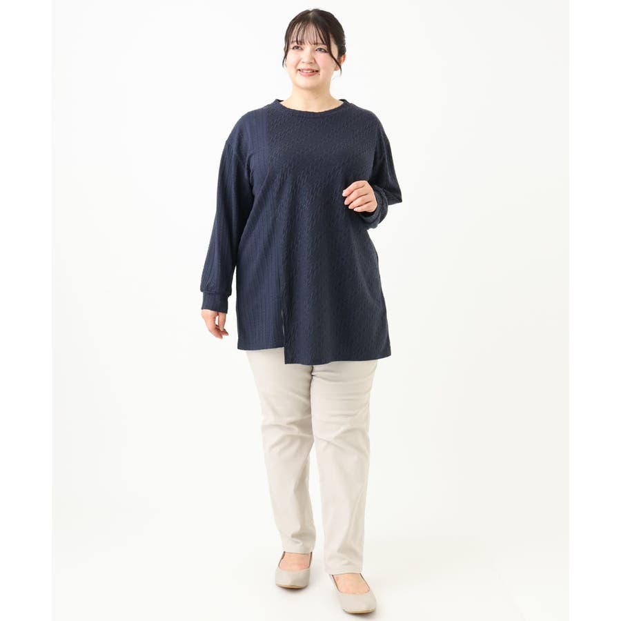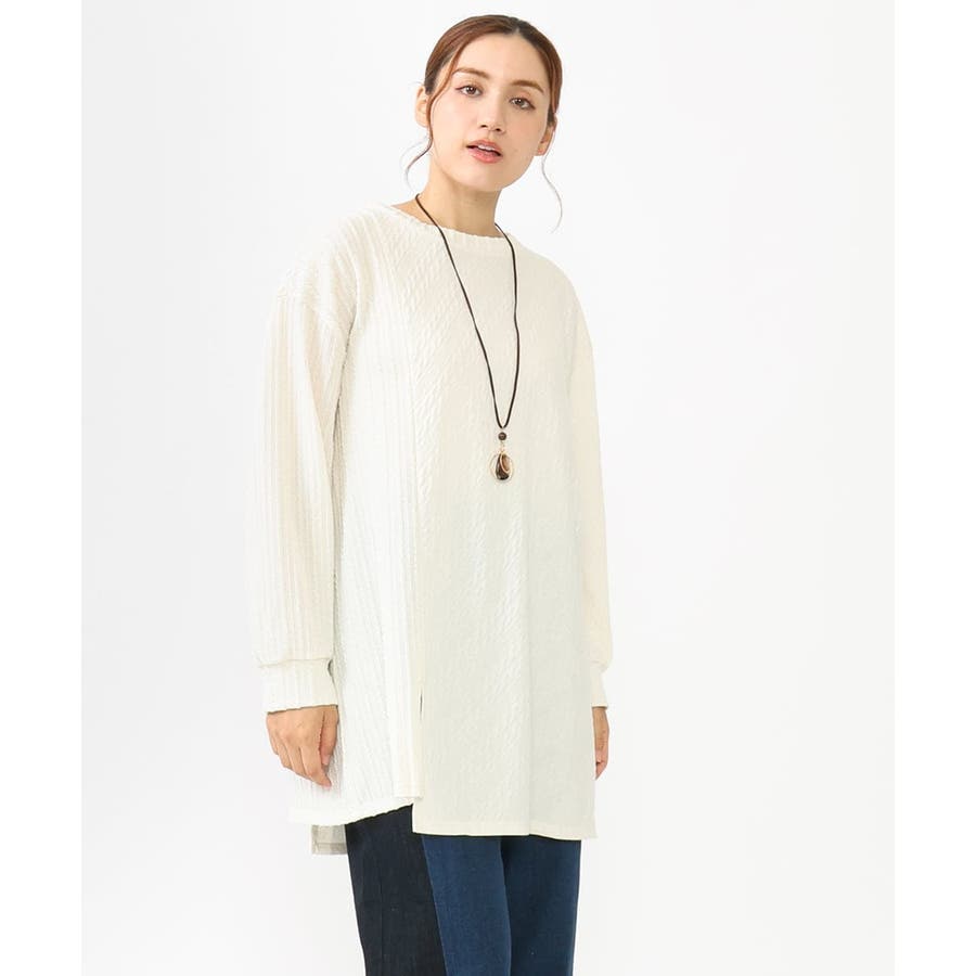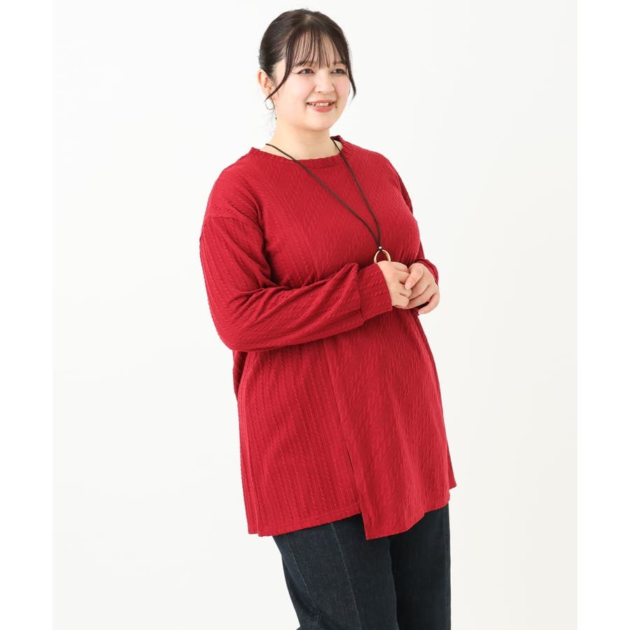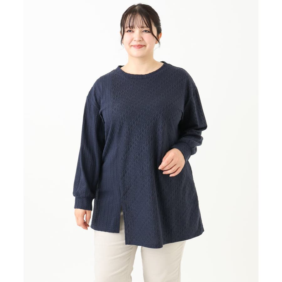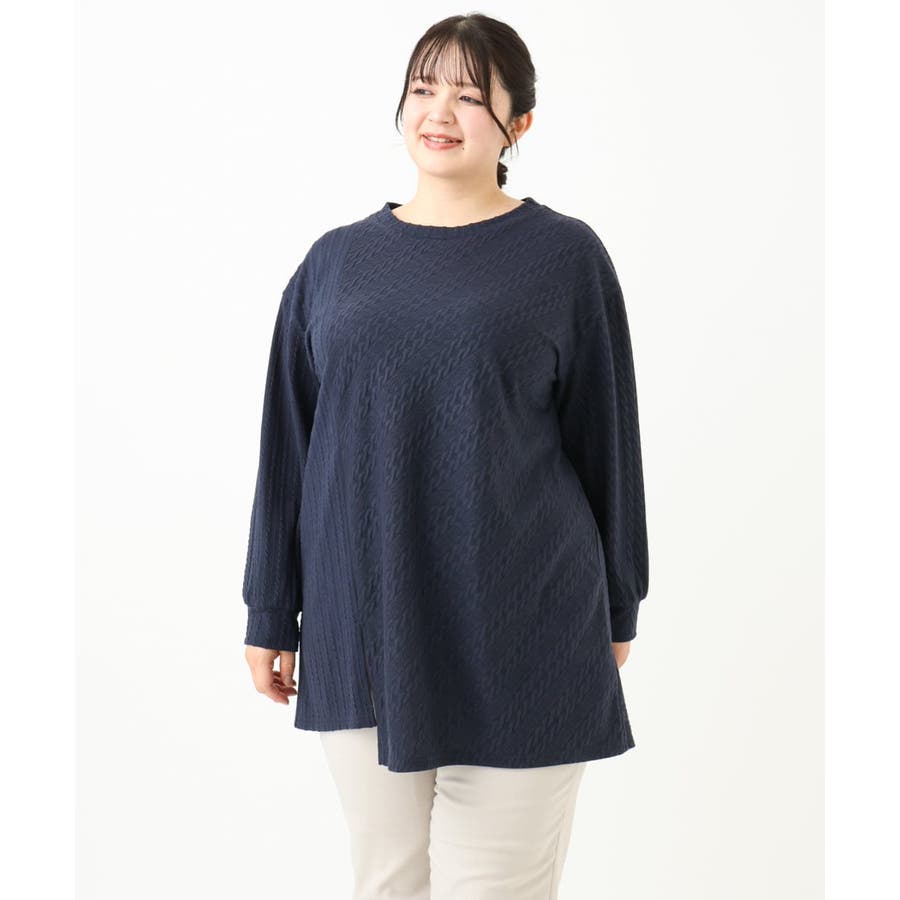 【大きいサイズ】ケーブルジャージーチュニック