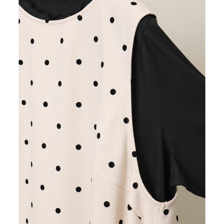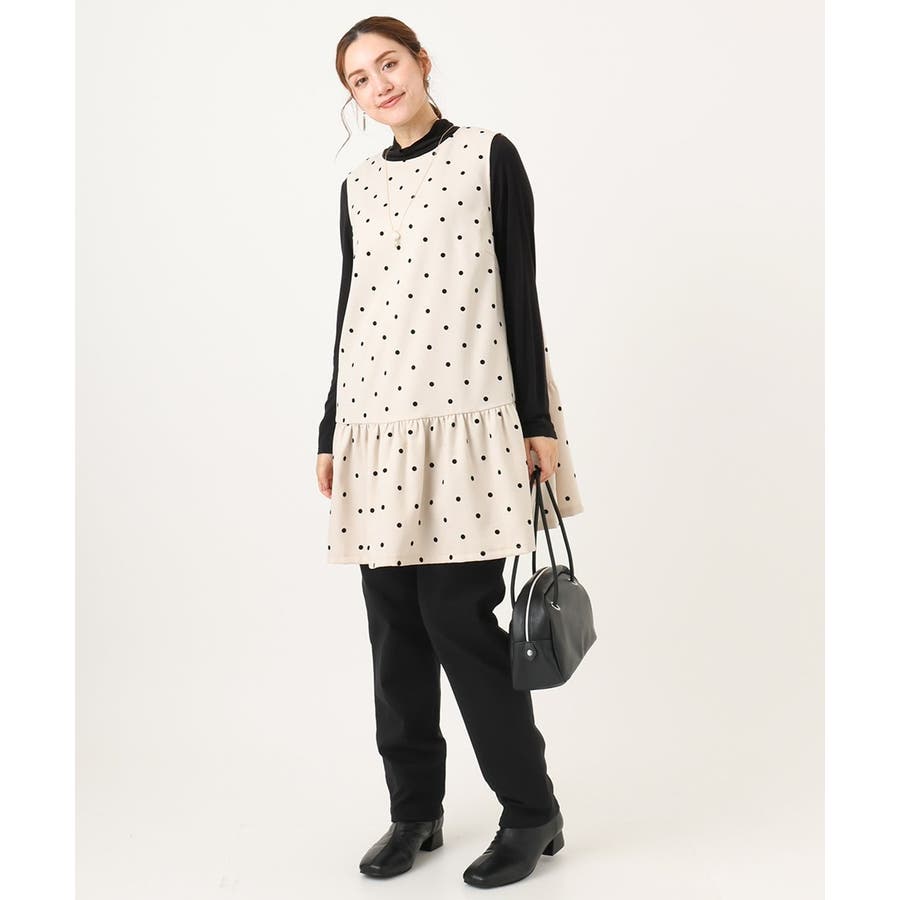 フロッキードットプリントがカジュアルになりすぎず大人可愛く着られます。