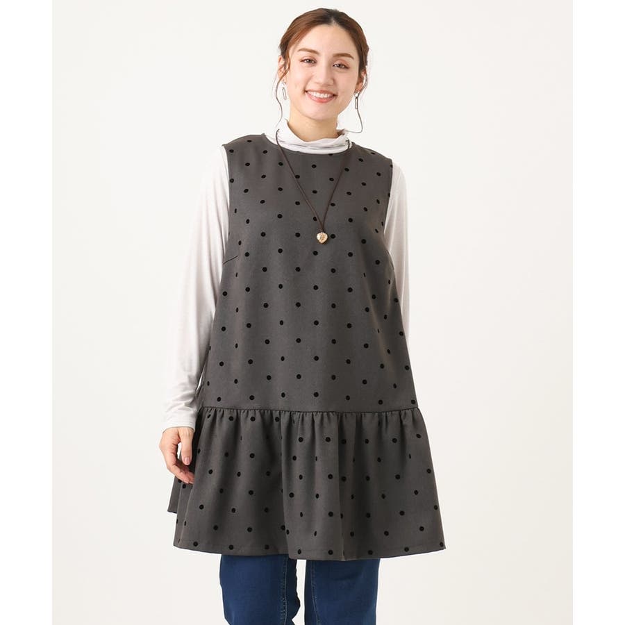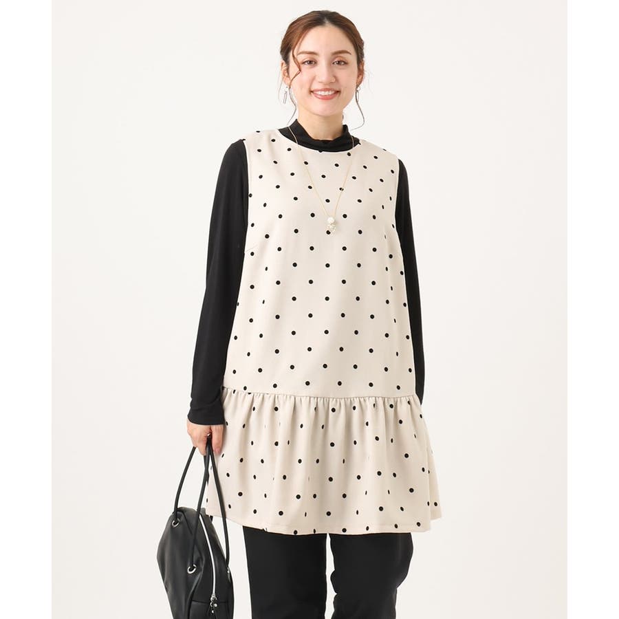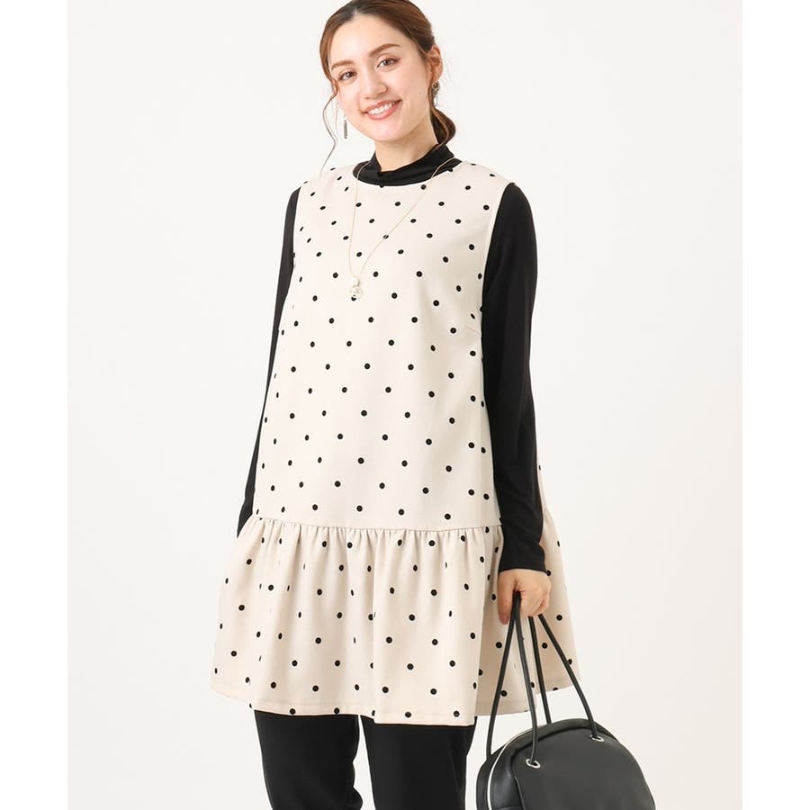 【大きいサイズ】フロッキードットペプラムチュニック