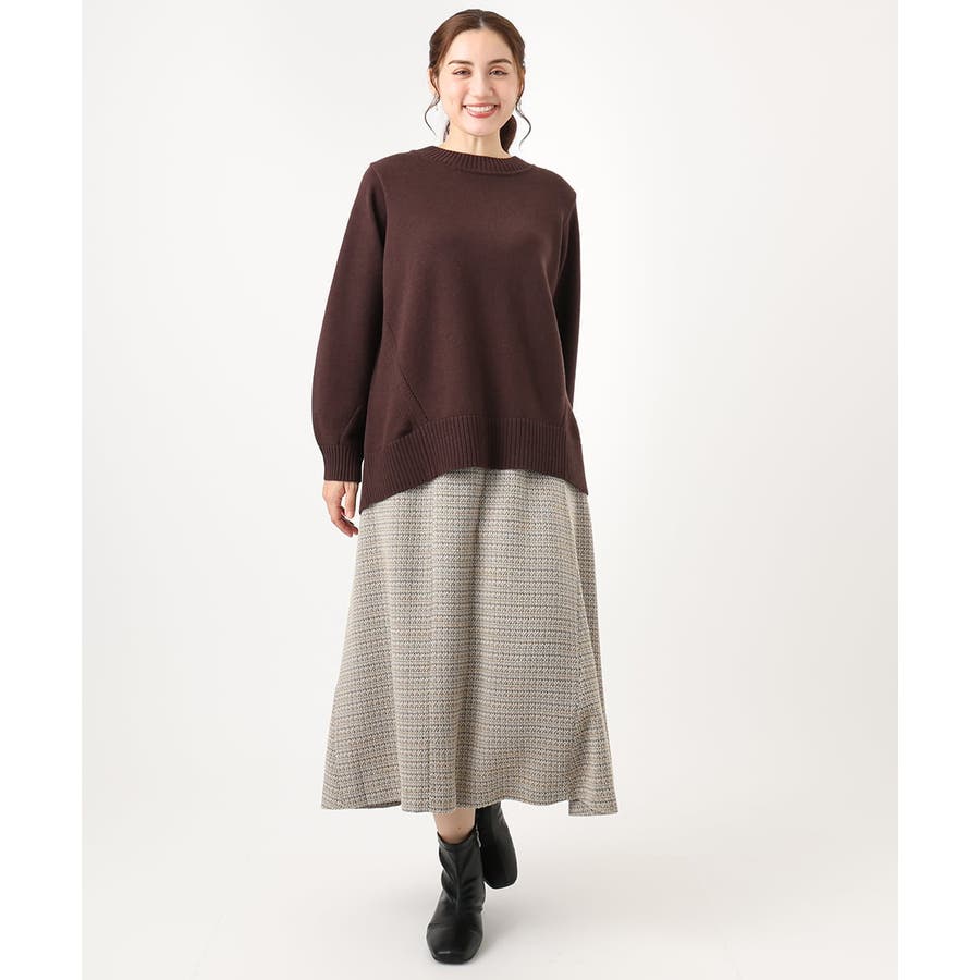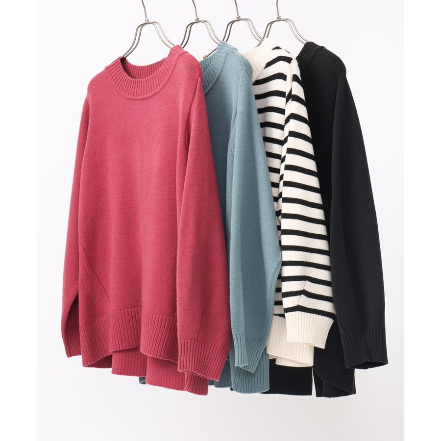 もっちり風合いも着心地良い、着丈に前後差のついたゆったりシルエットの着回し力抜群なニット。