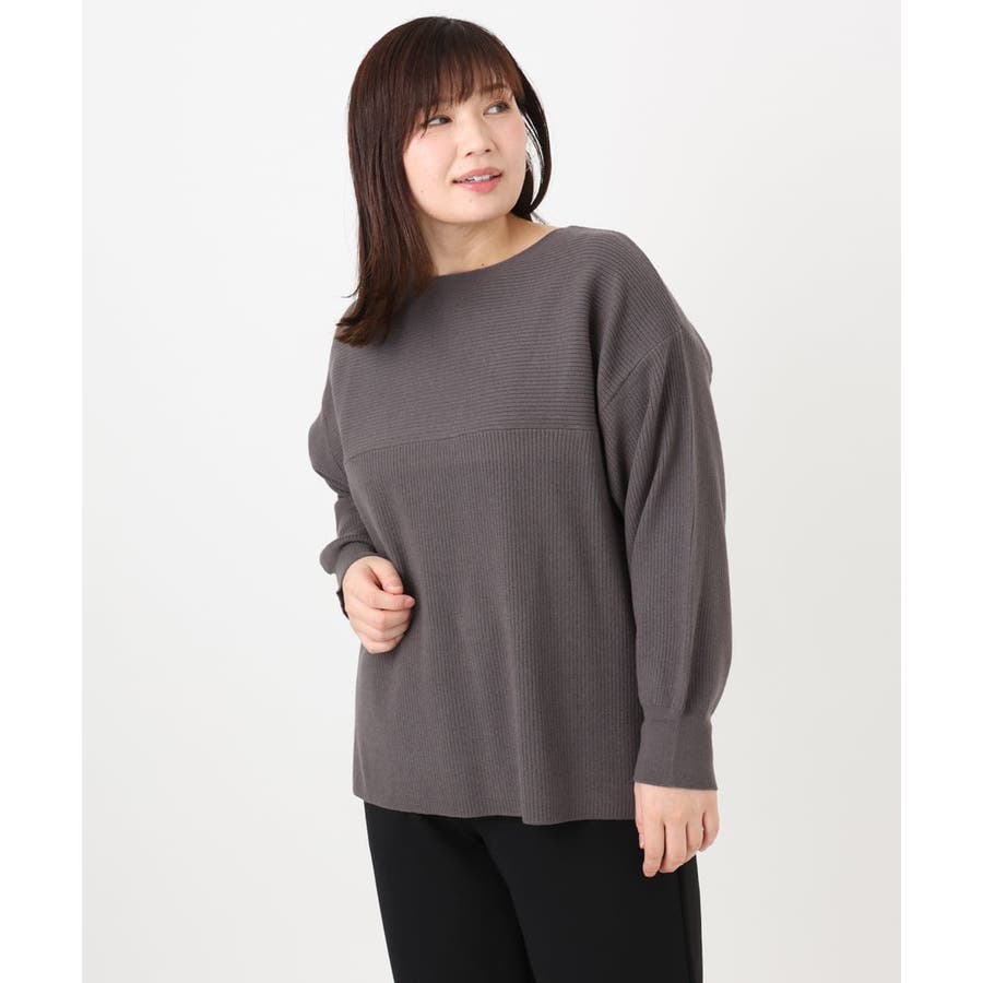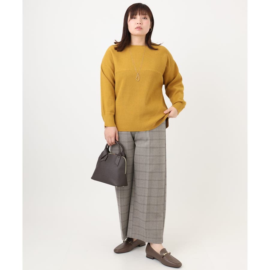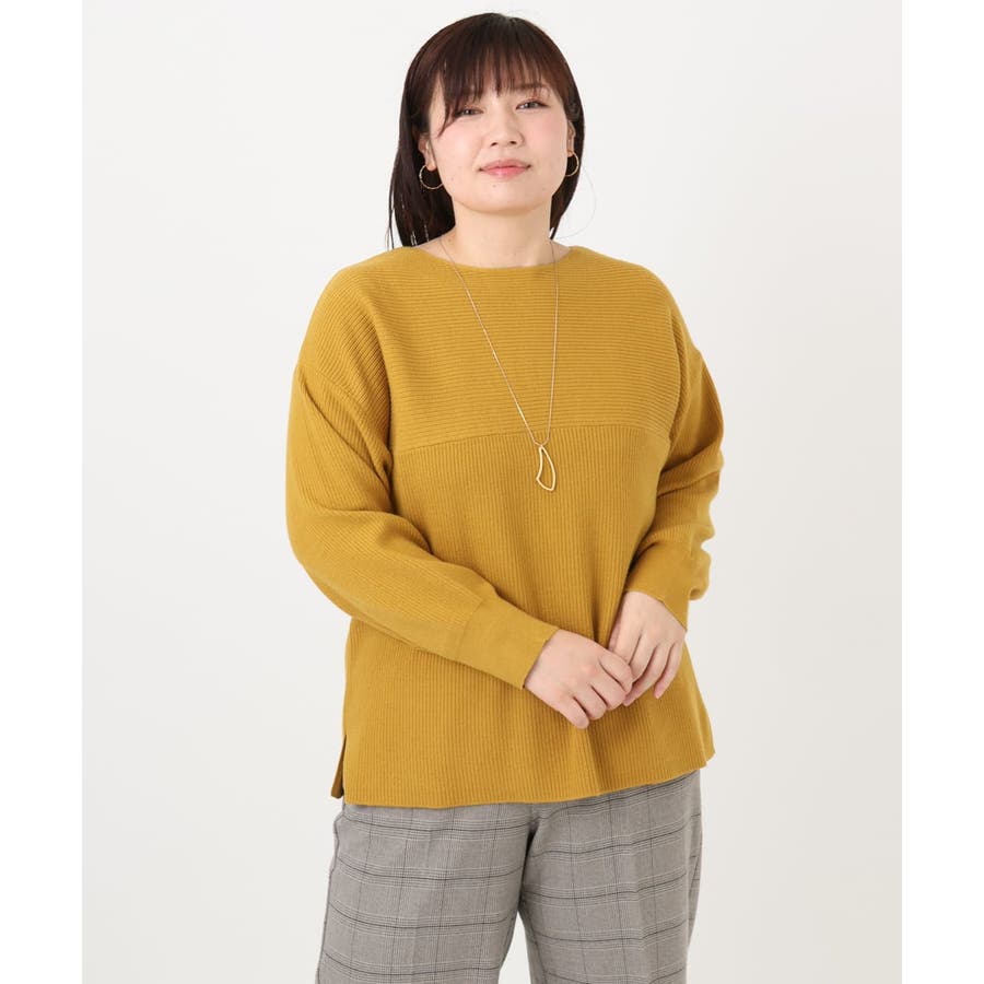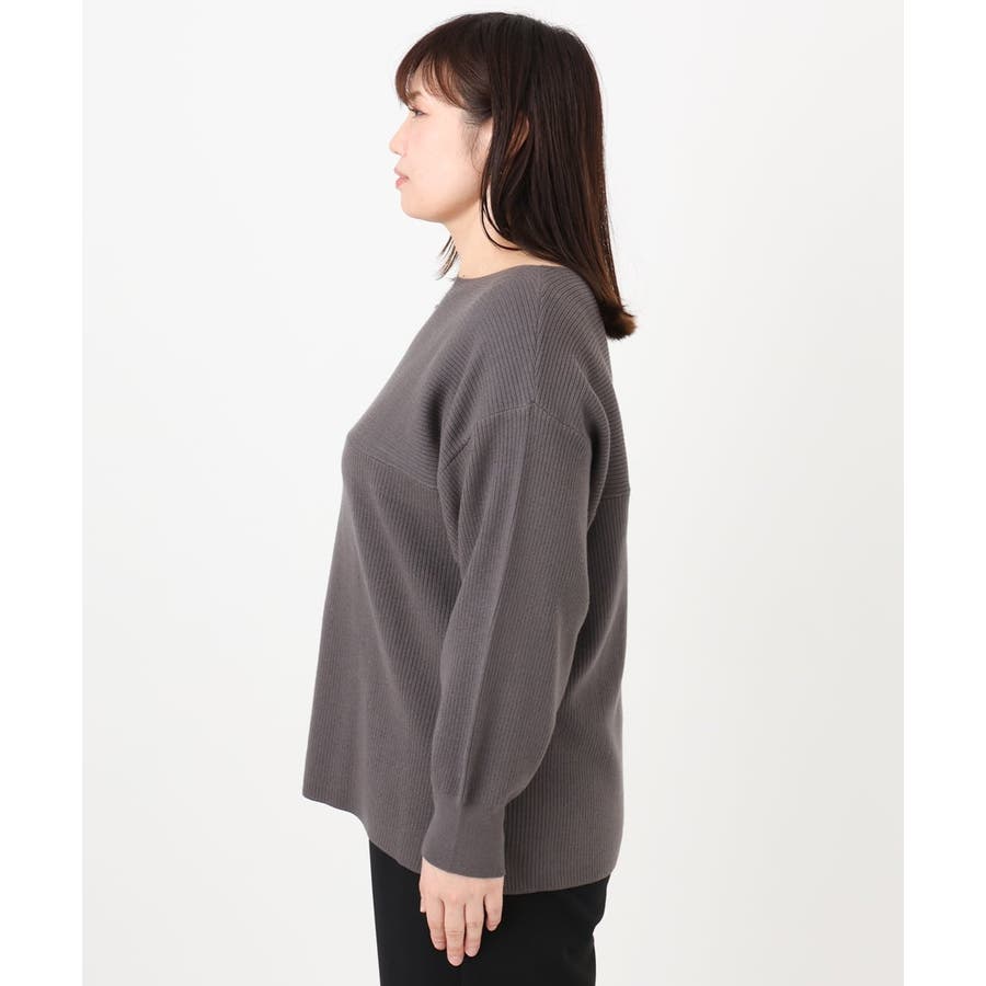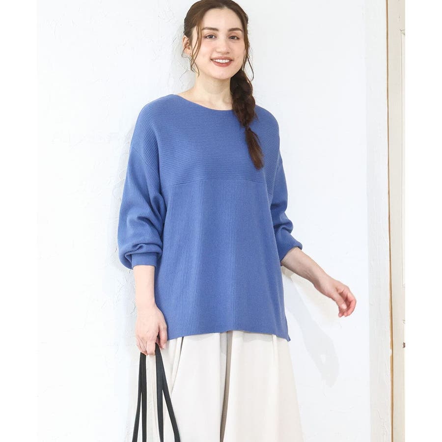 シンプルなデザインながら、胸元の横リブ使いで少し抜け感のある大人のベーシックニットに仕上げています。