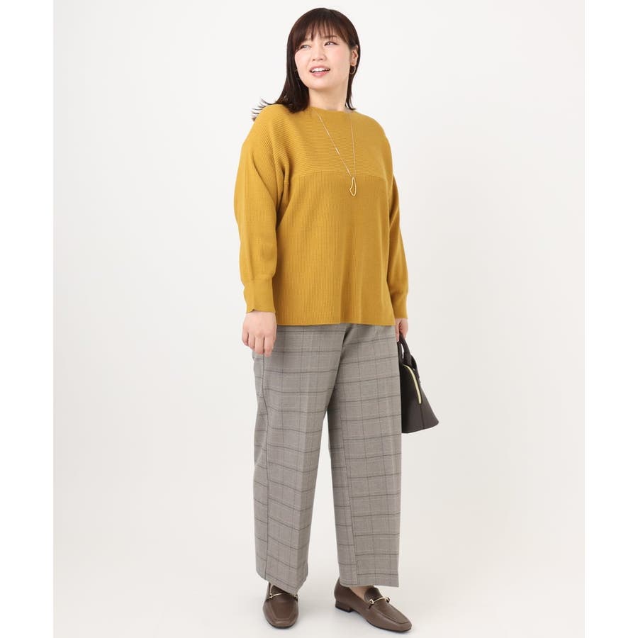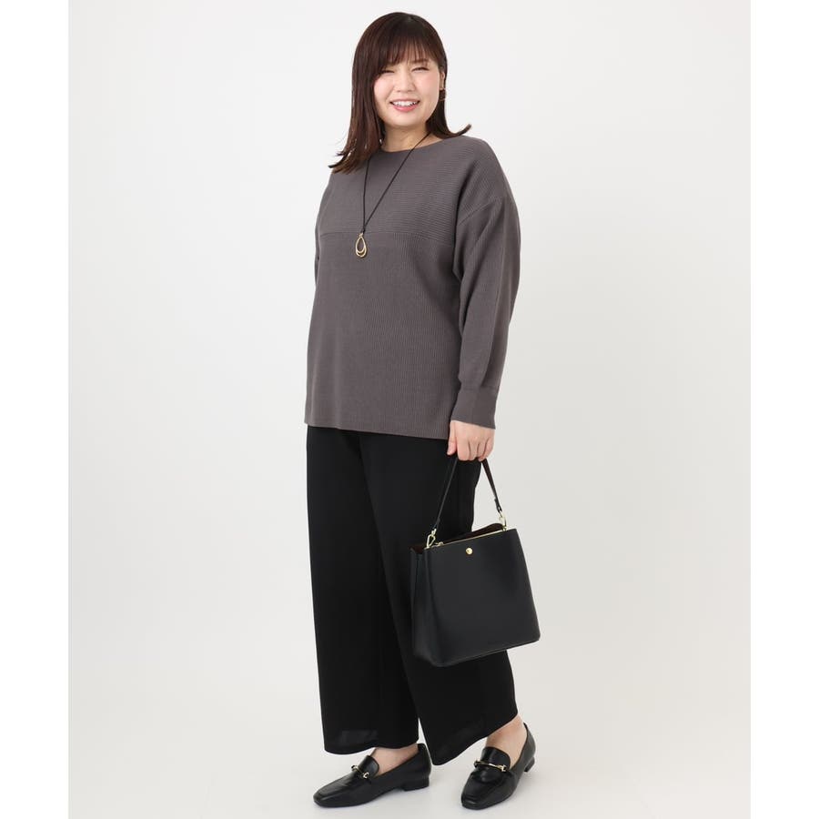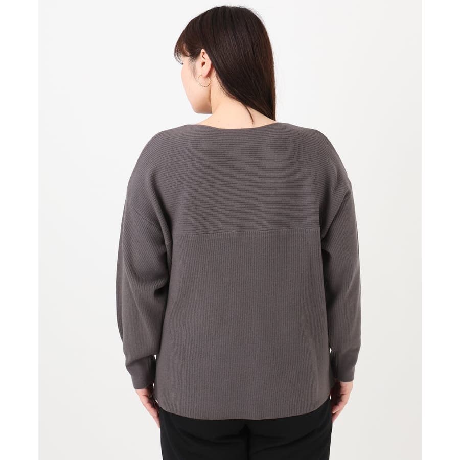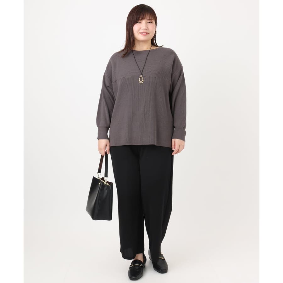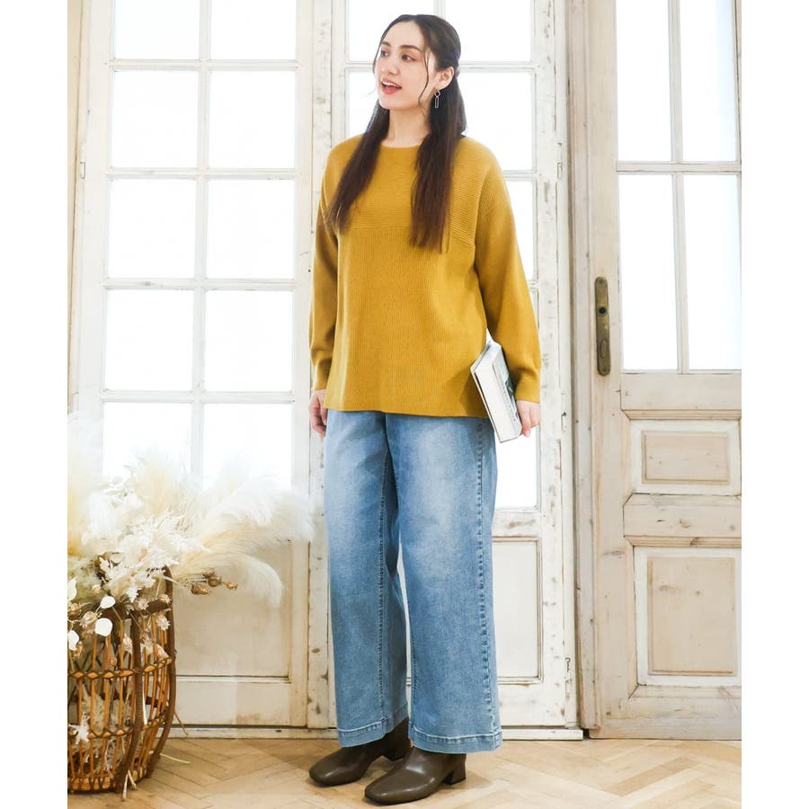シンプルなデザインながら、胸元の横リブ使いで少し抜け感のある大人のベーシックニットに仕上げています。