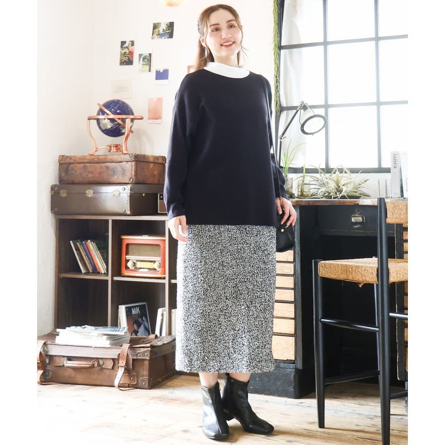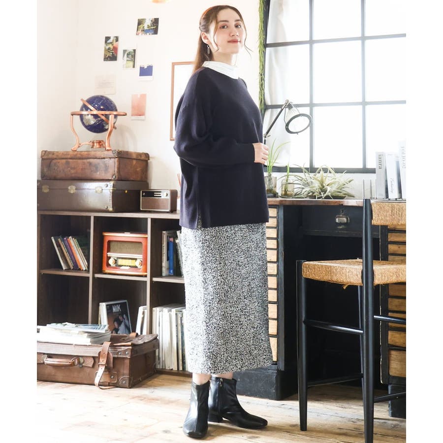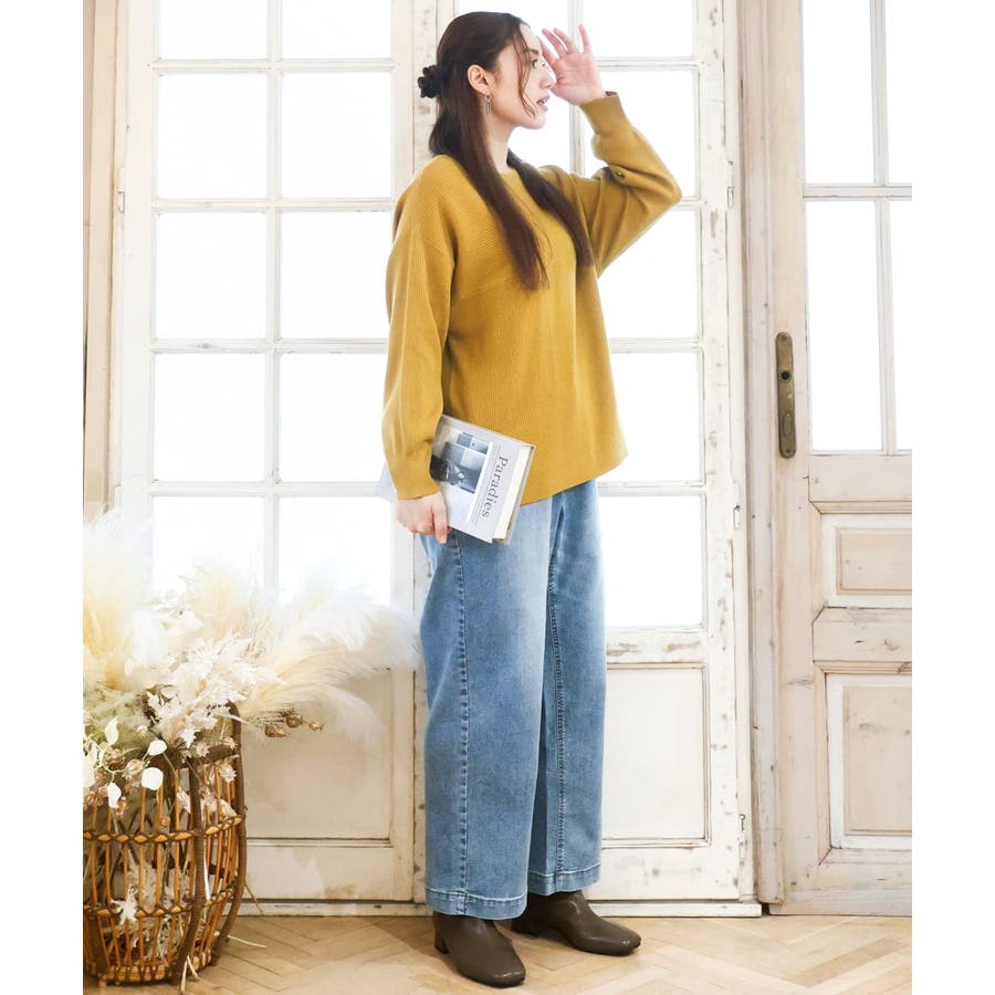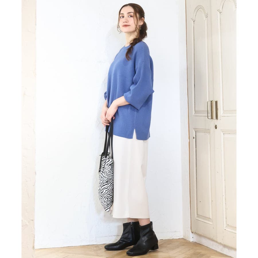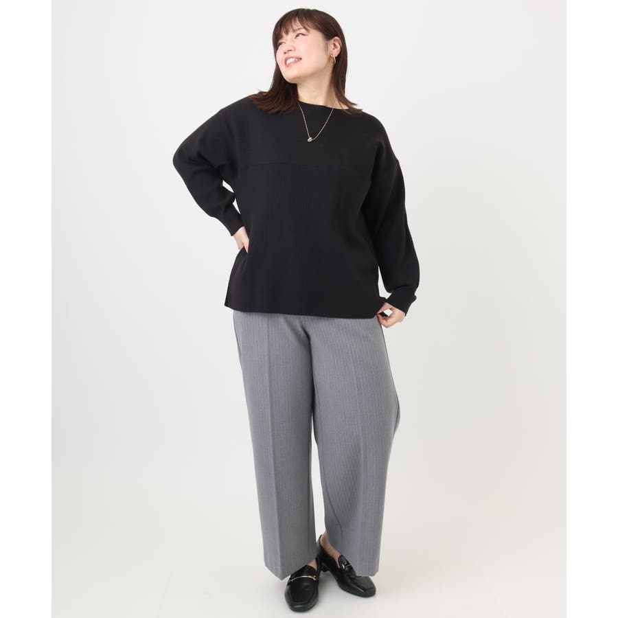 きれい目にもカジュアルにも着まわせる万能ニットです。