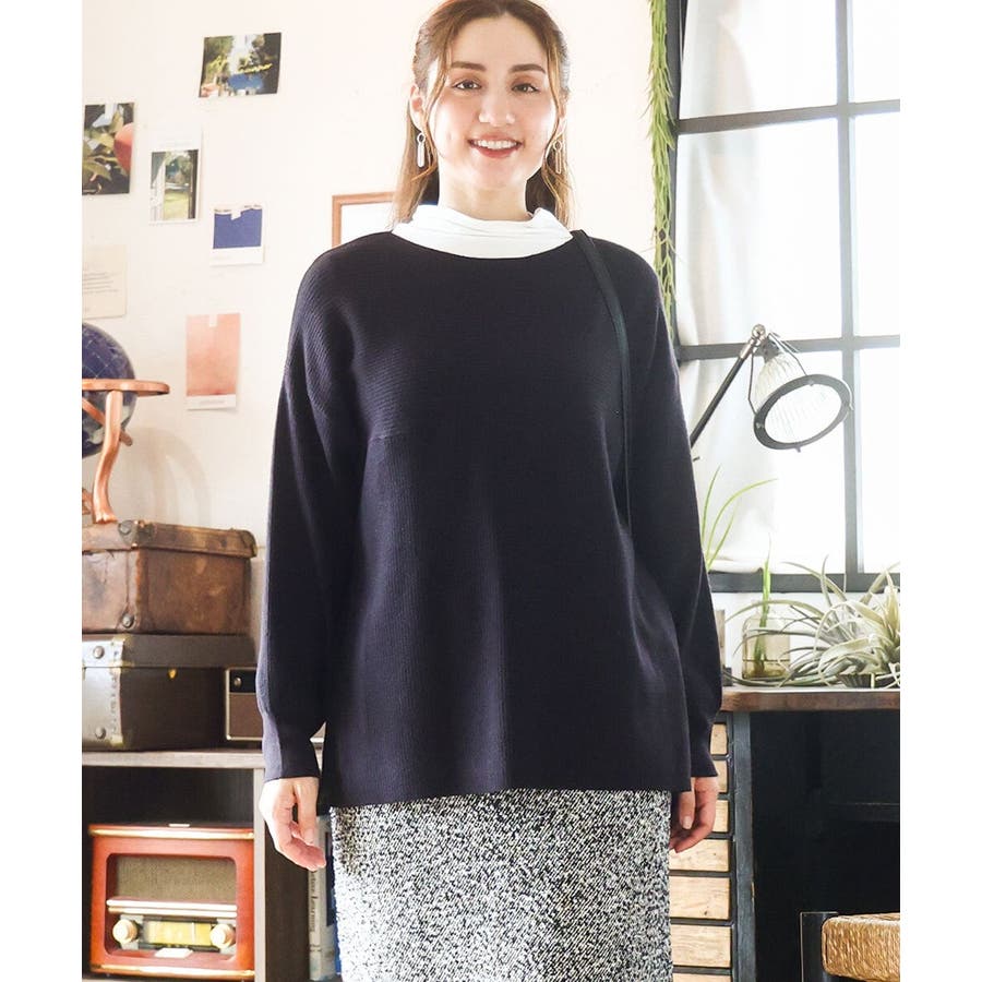【大きいサイズ】サイドスリットカラーニット