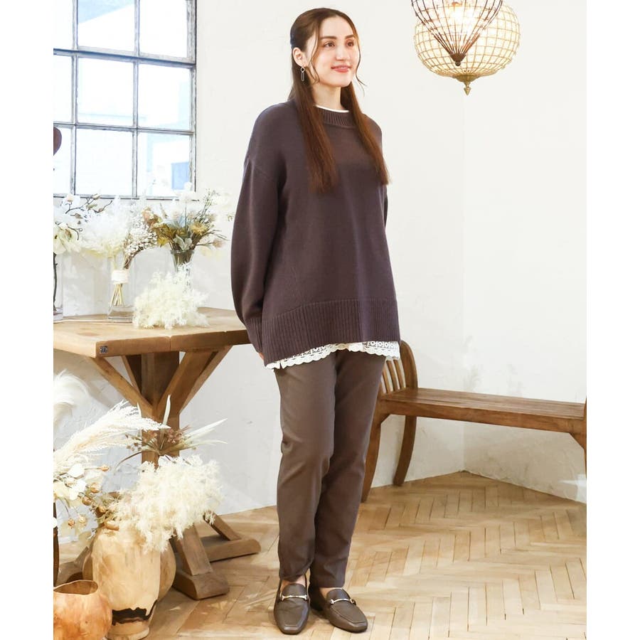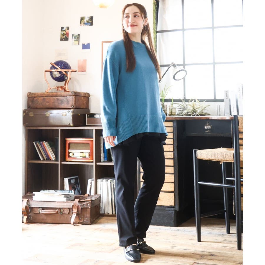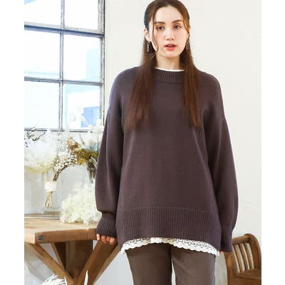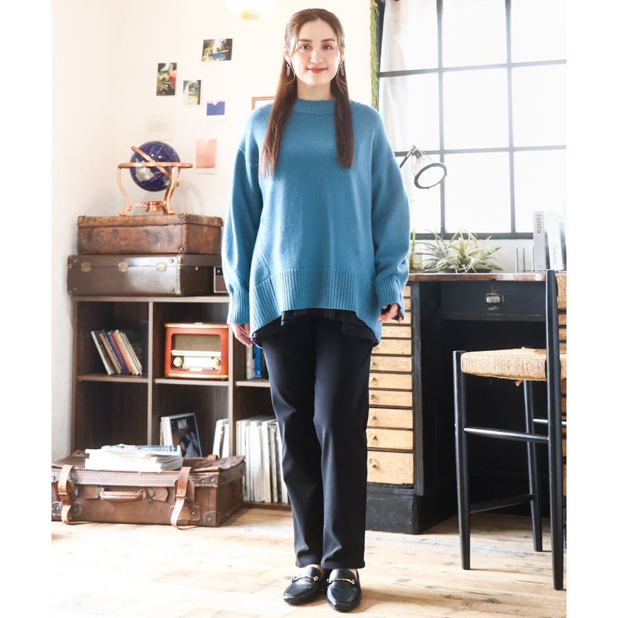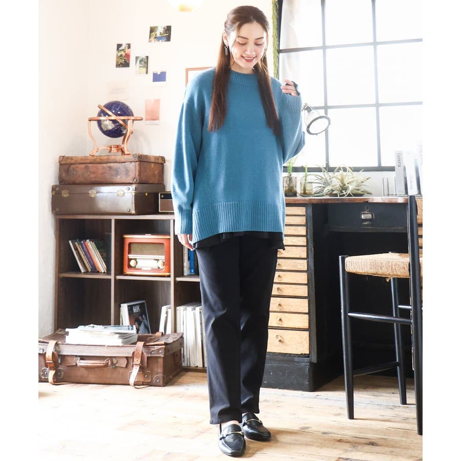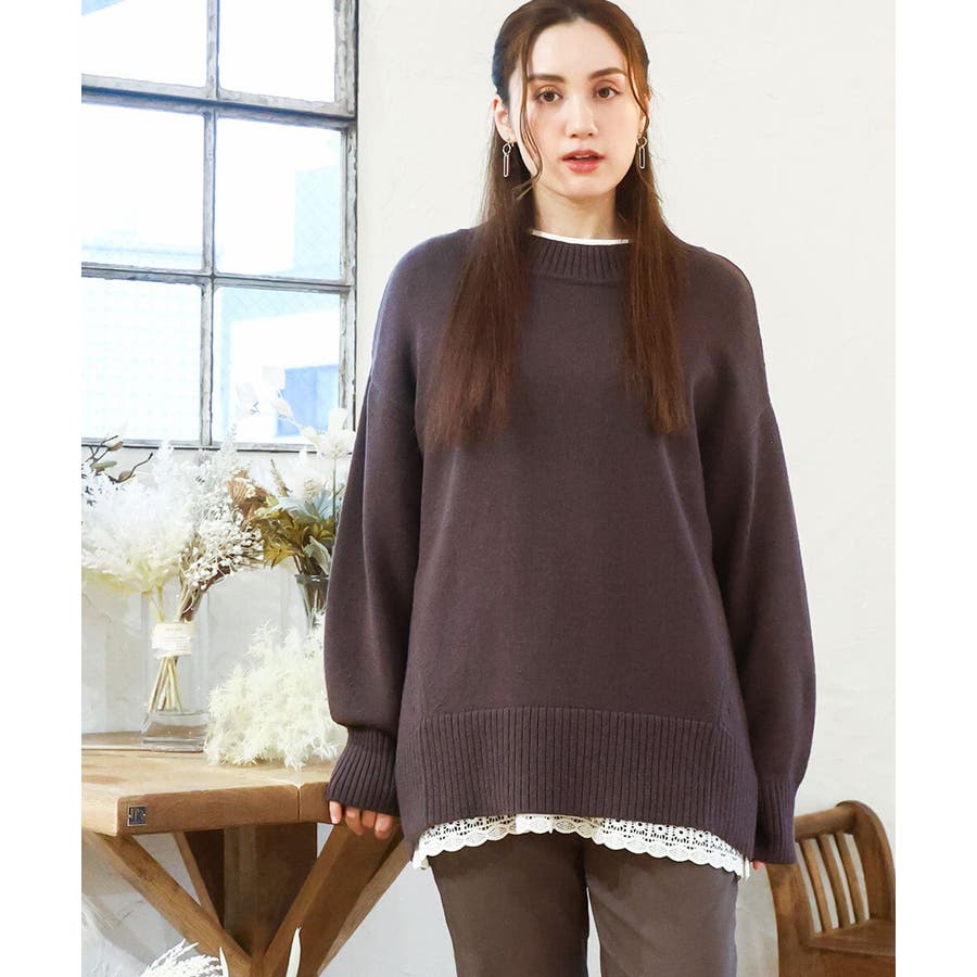 もっちりしたと風合いが着心地良い、着丈に前後差のついたゆったりシルエットの着回し力抜群なニット。