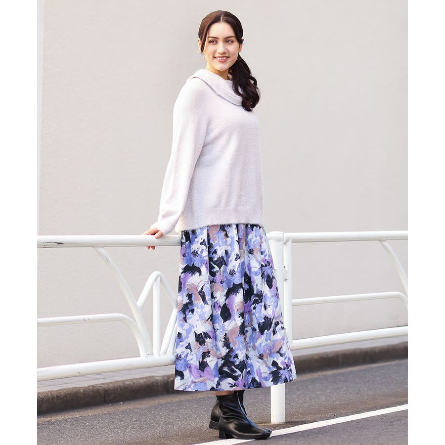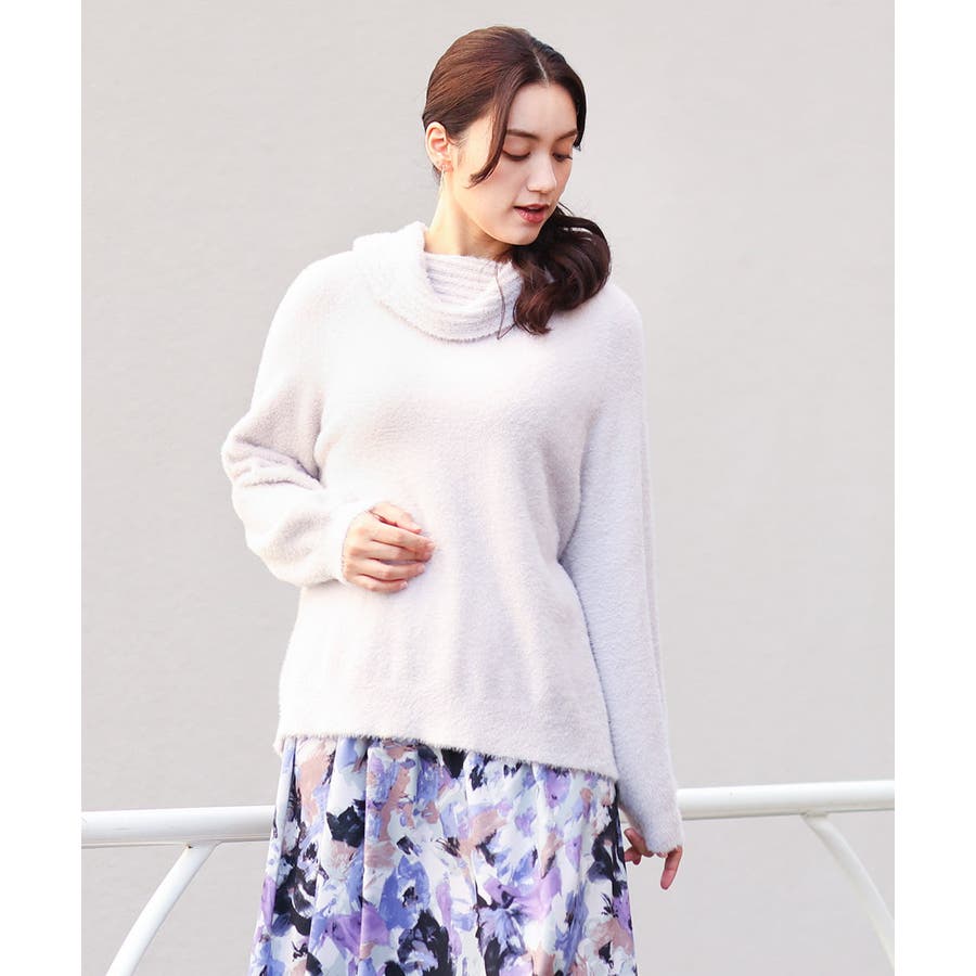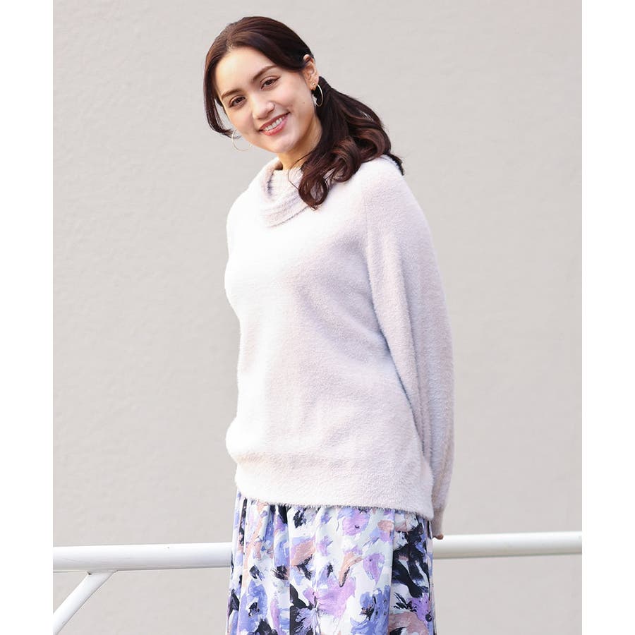 柔らかな毛足のあるシャギーニットは女性らしく可愛く着こなせる冬の定番アイテム。