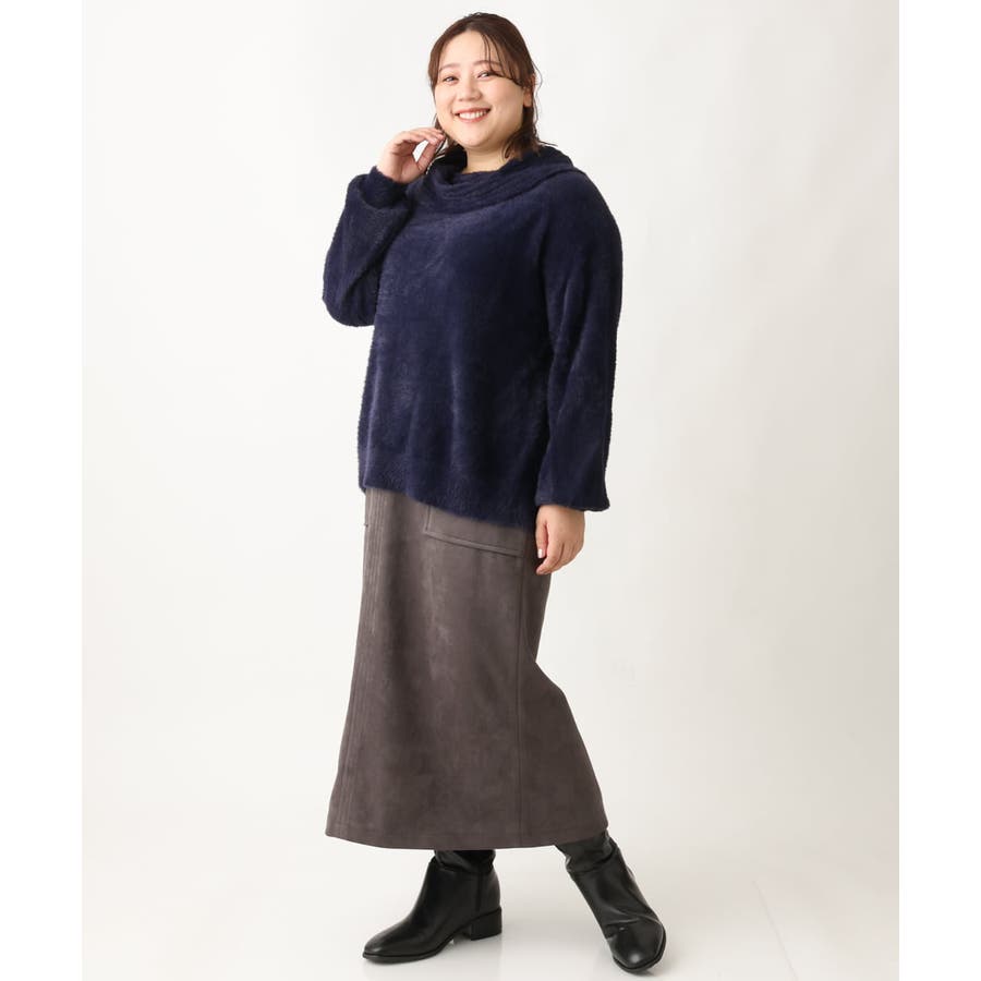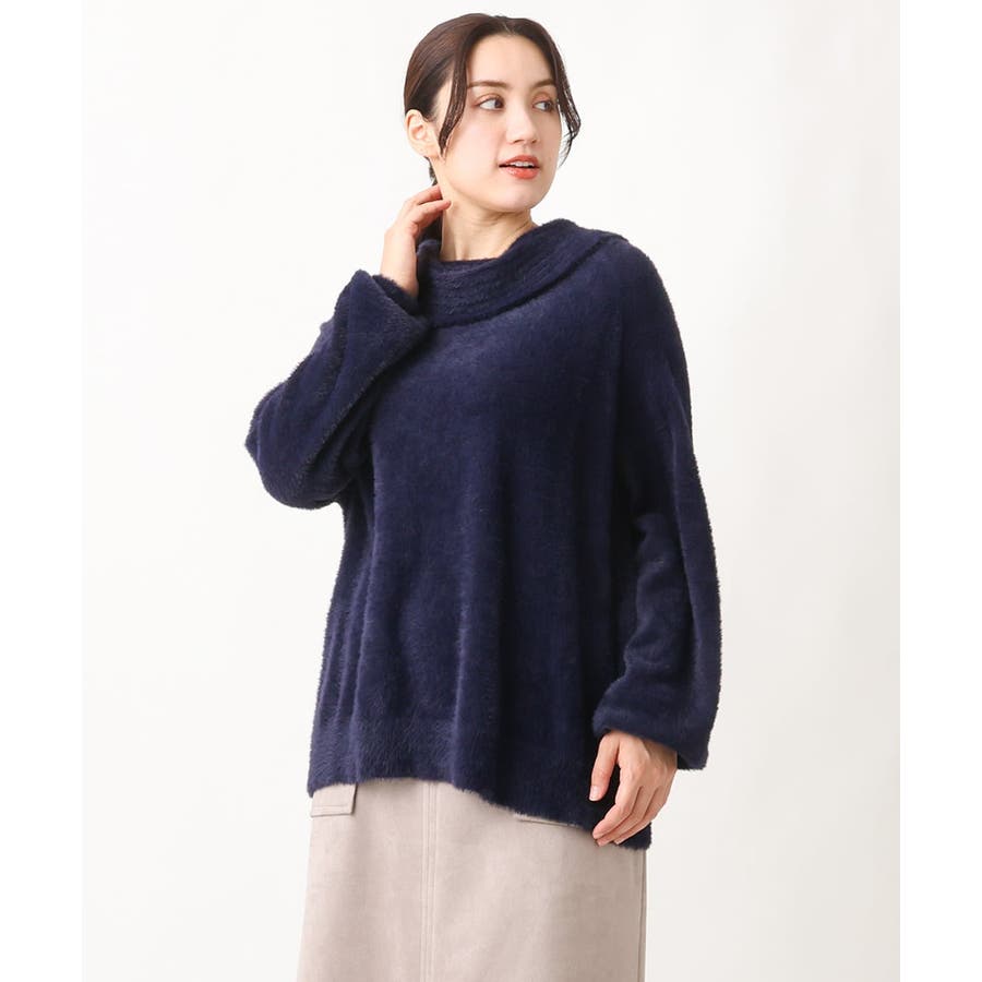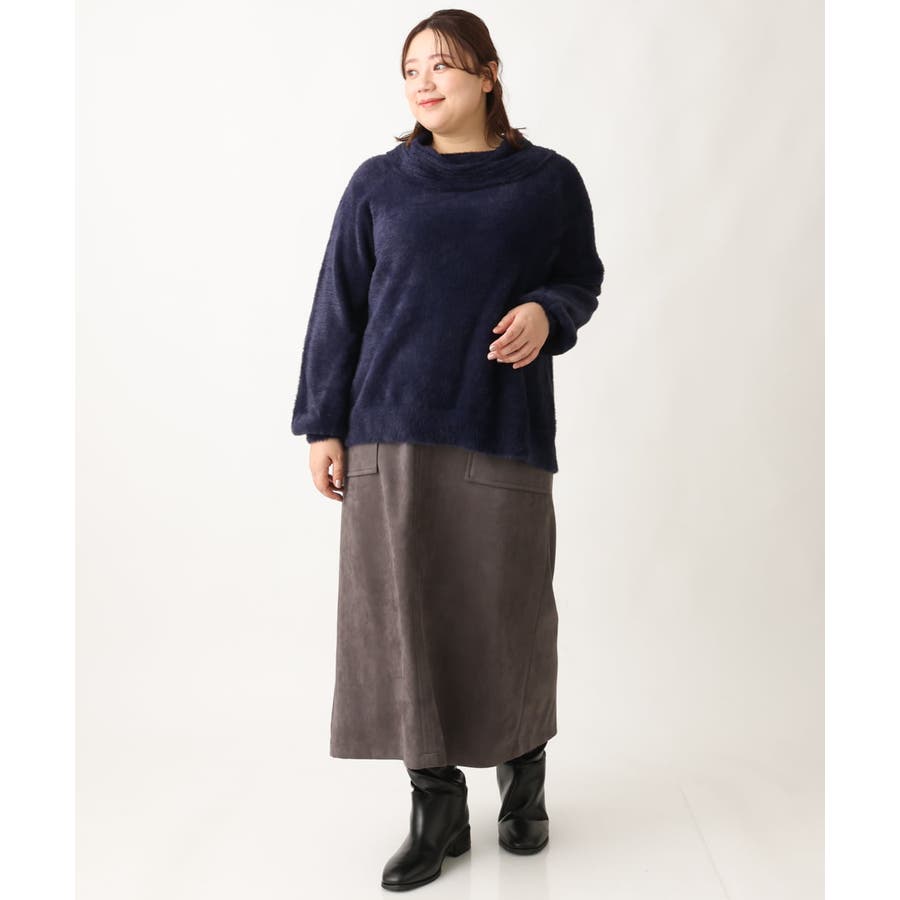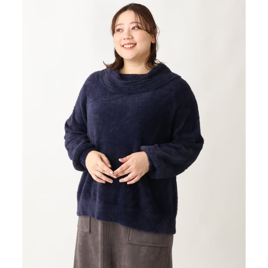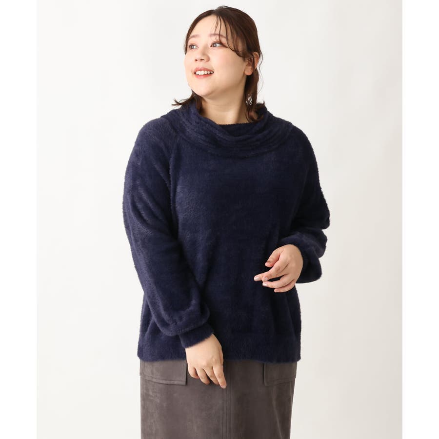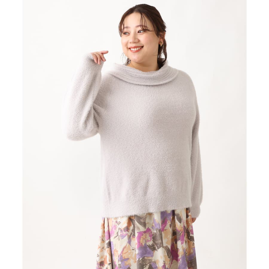 【大きいサイズ】シャギーオフふわふわタートルニット