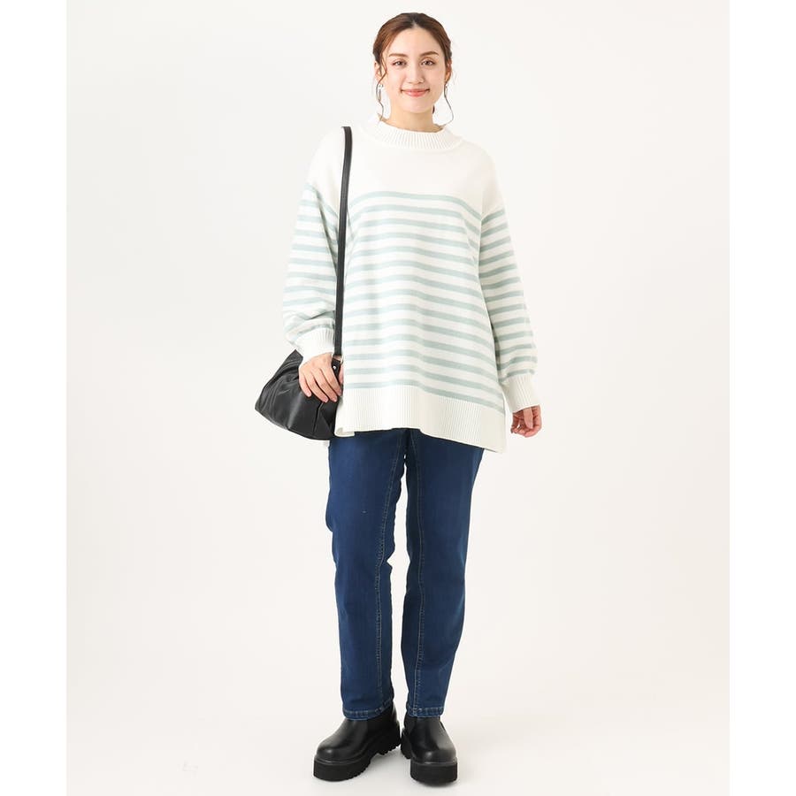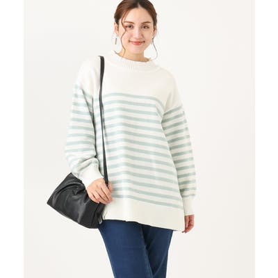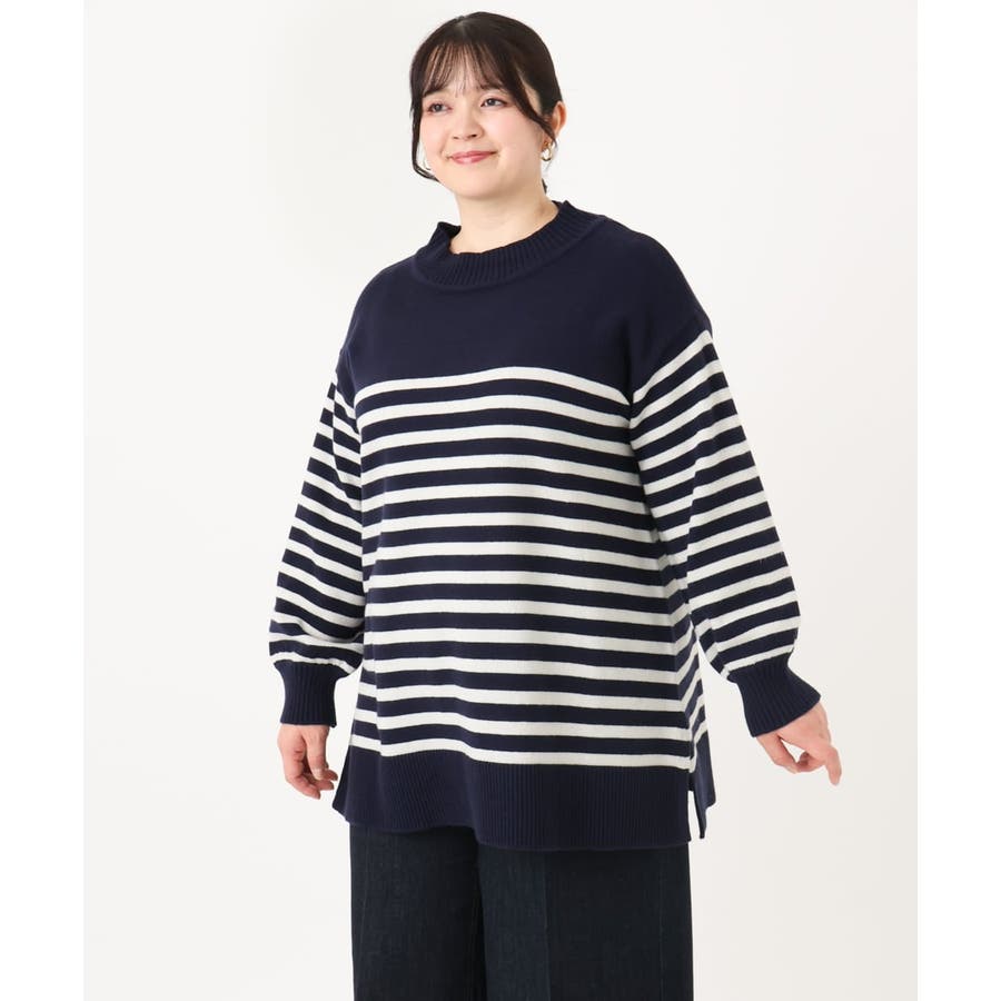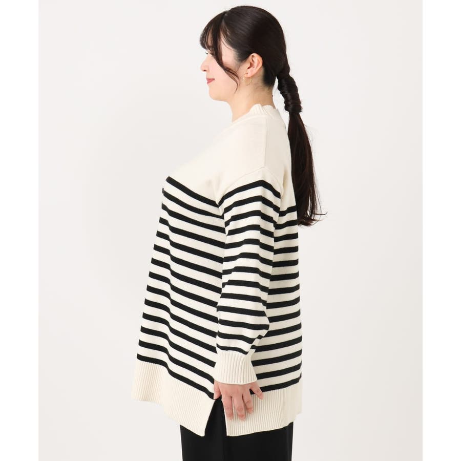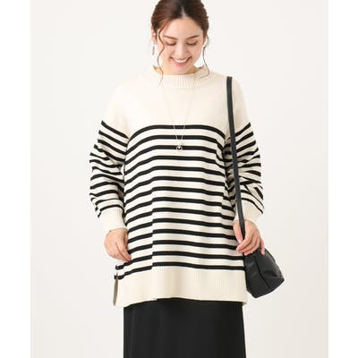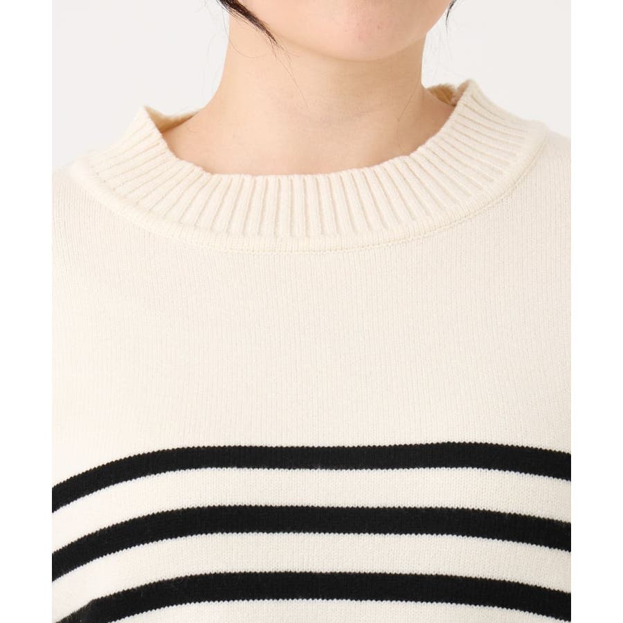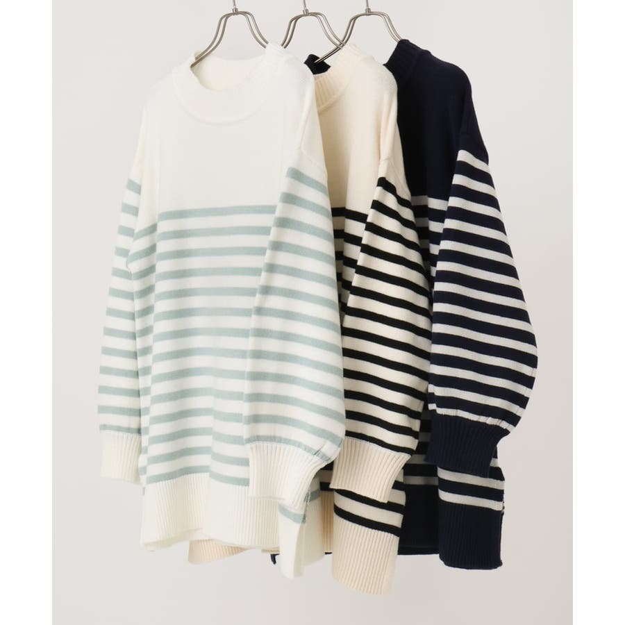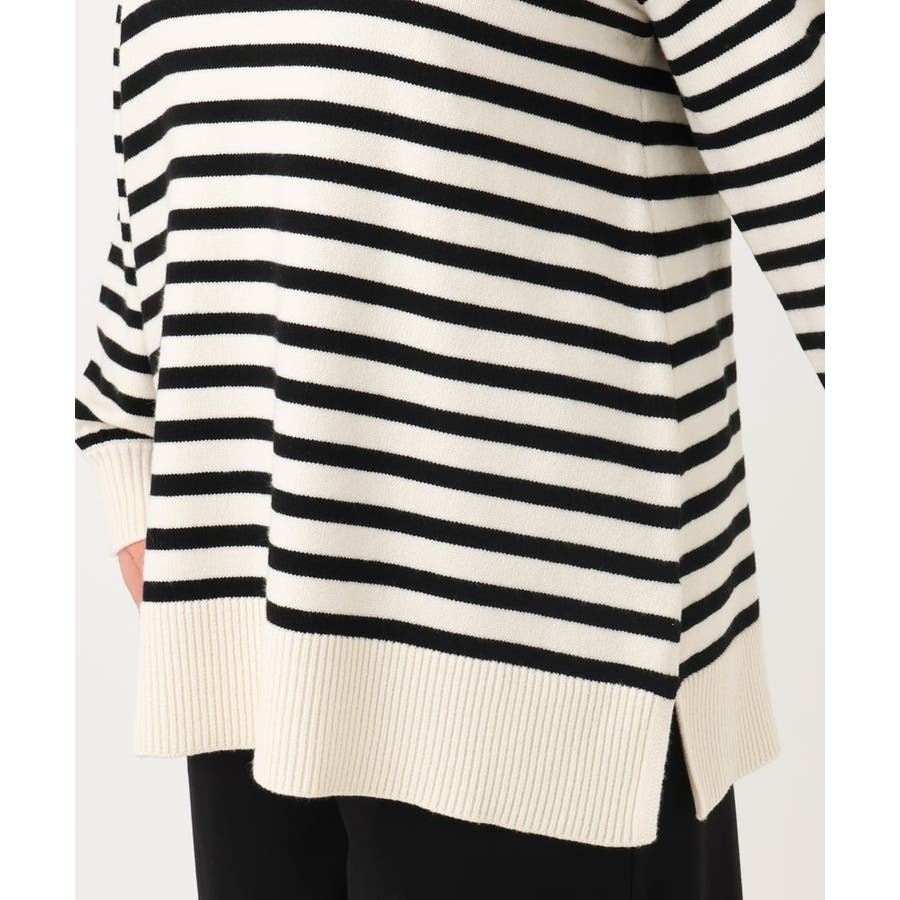 程よくネックラインにそうハイネックにゆったりとしたシルエットのパネルボーダーニット。
