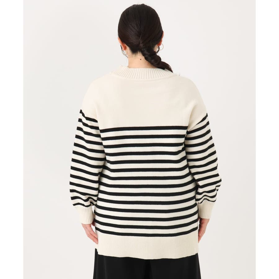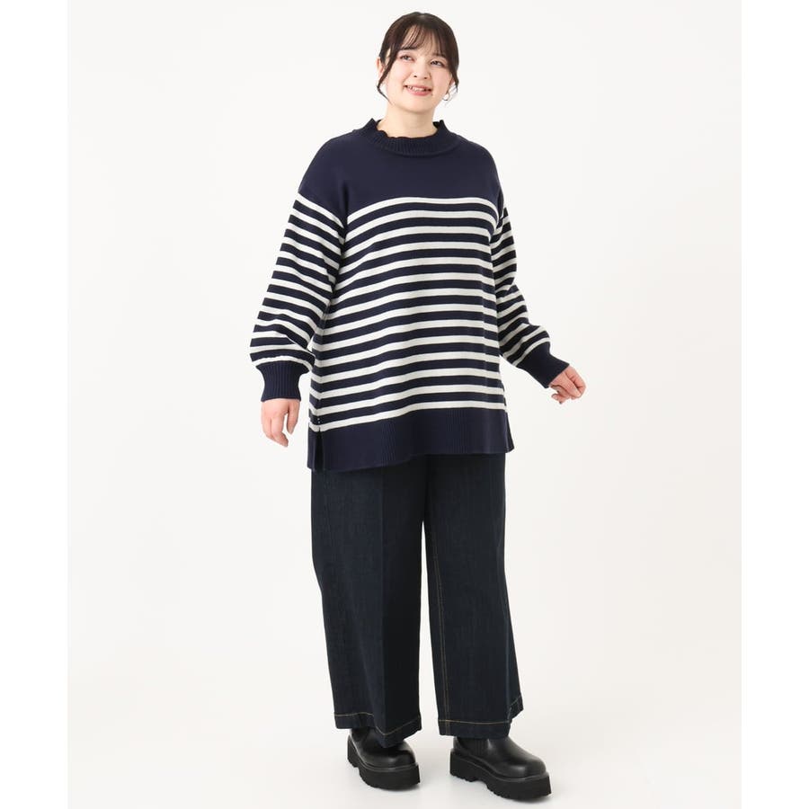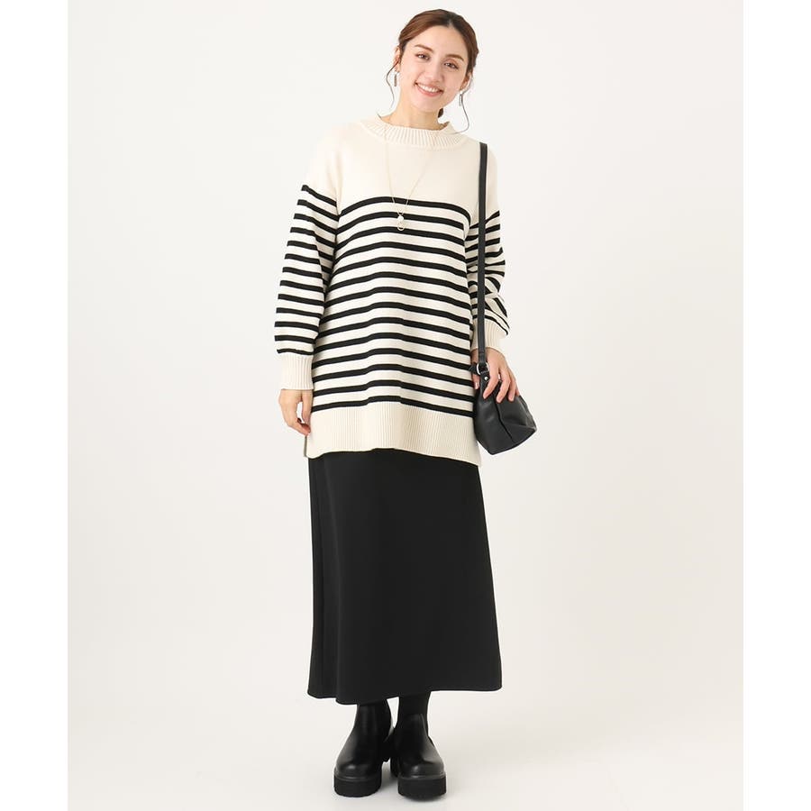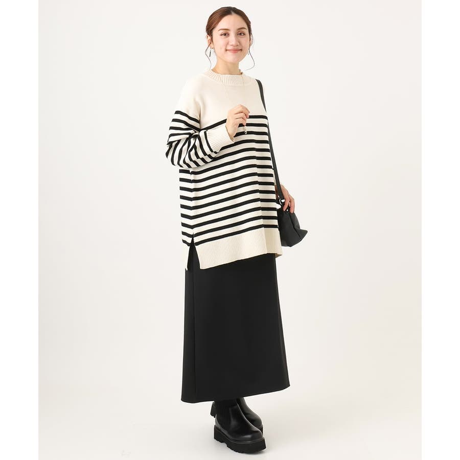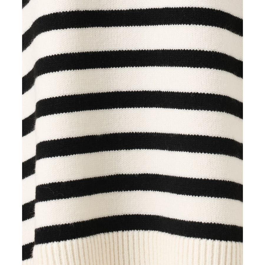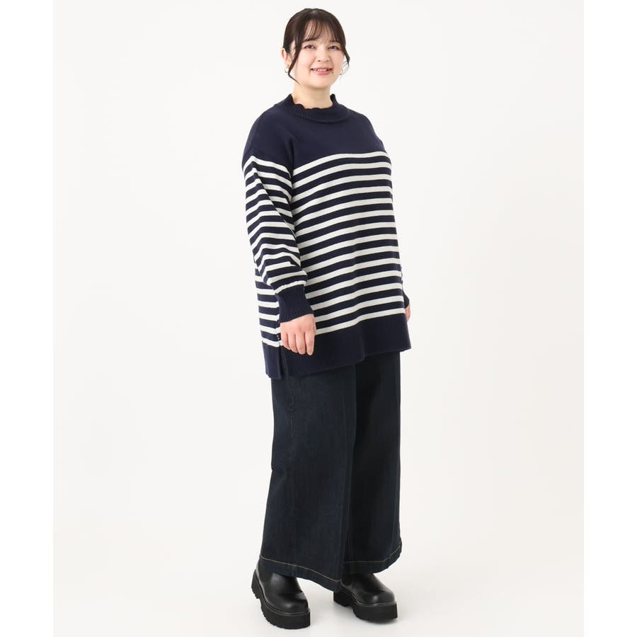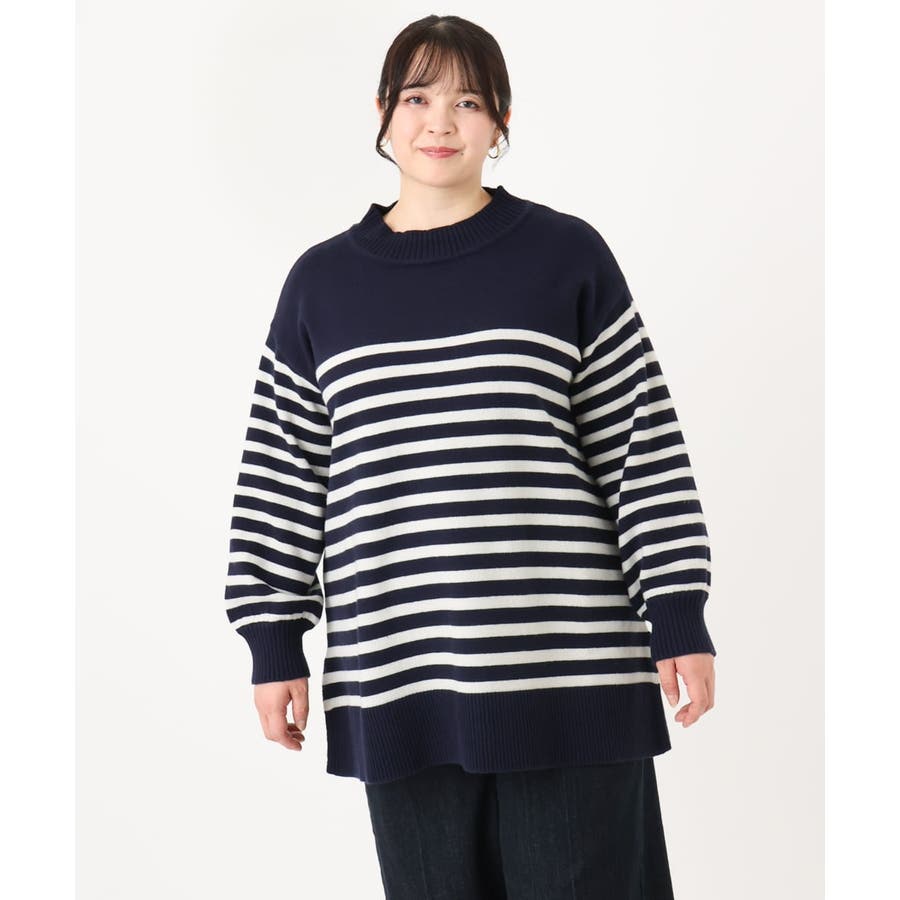 程よくネックラインにそうハイネックにゆったりとしたシルエットのパネルボーダーニット。