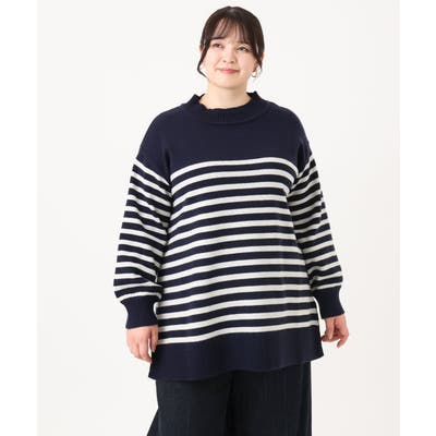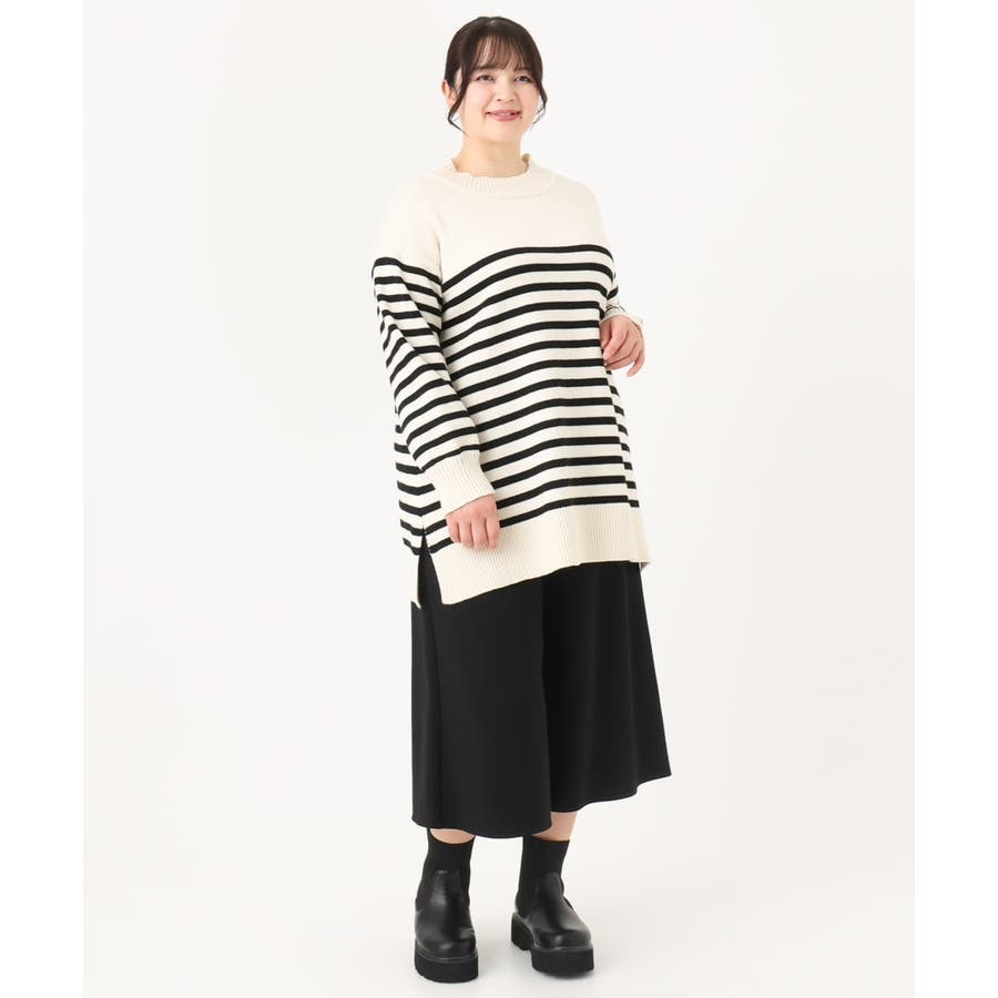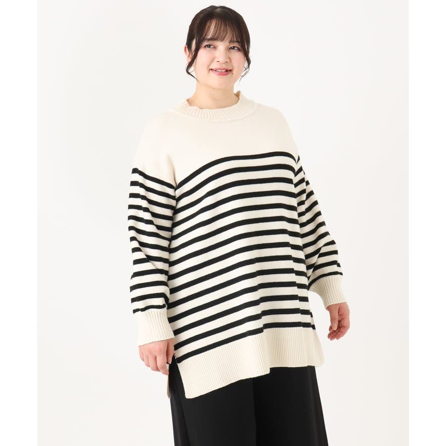 【大きいサイズ】パネルボーダーサイドスリットニット