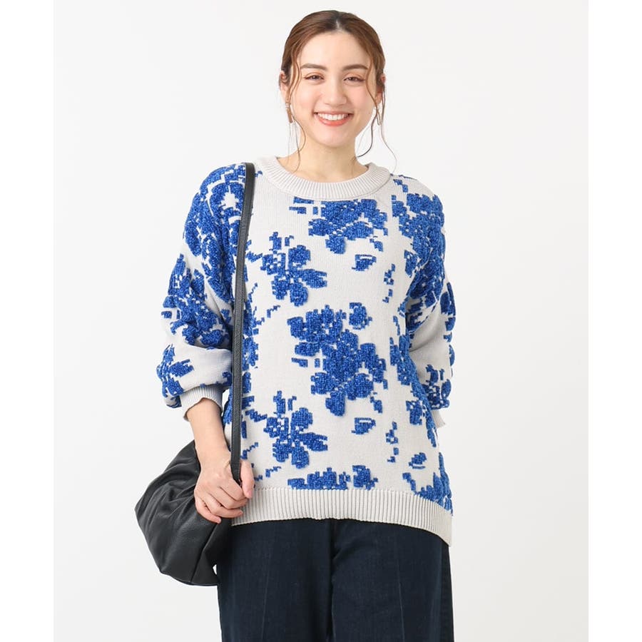 大き目の花柄が目を惹くモールニットは立体感もあるのでシンプルなボトムスに合わせるだけで着映えするアイテムです。