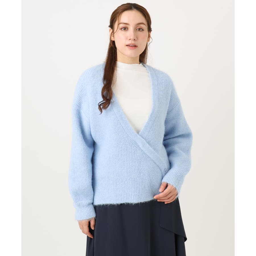ライトなタム糸を片畦に編んだカシュクール風ニット。