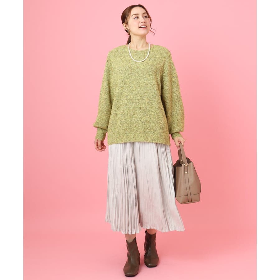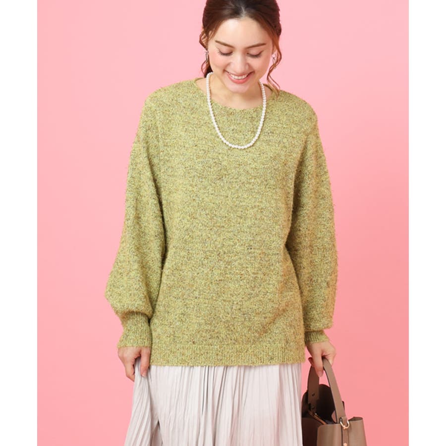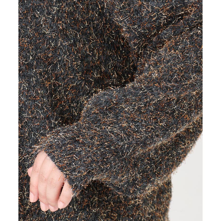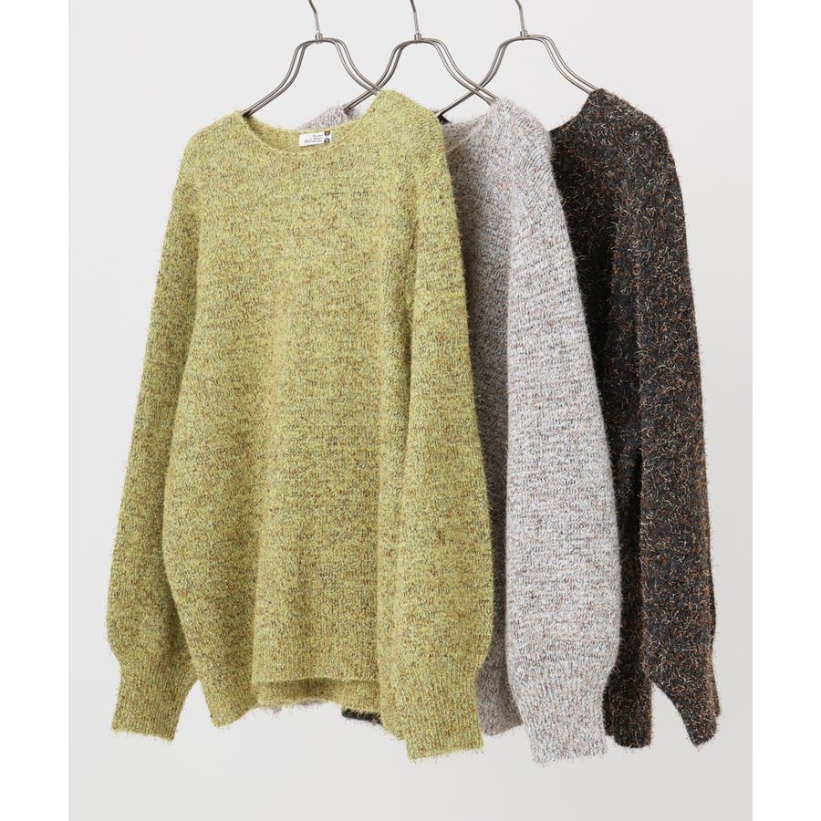 ライトな毛足風に糸が出るミックスヤーンを天竺編みで仕上げています。