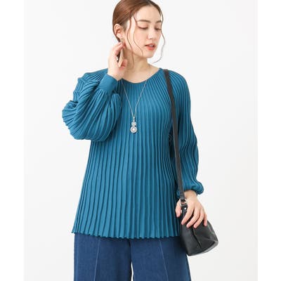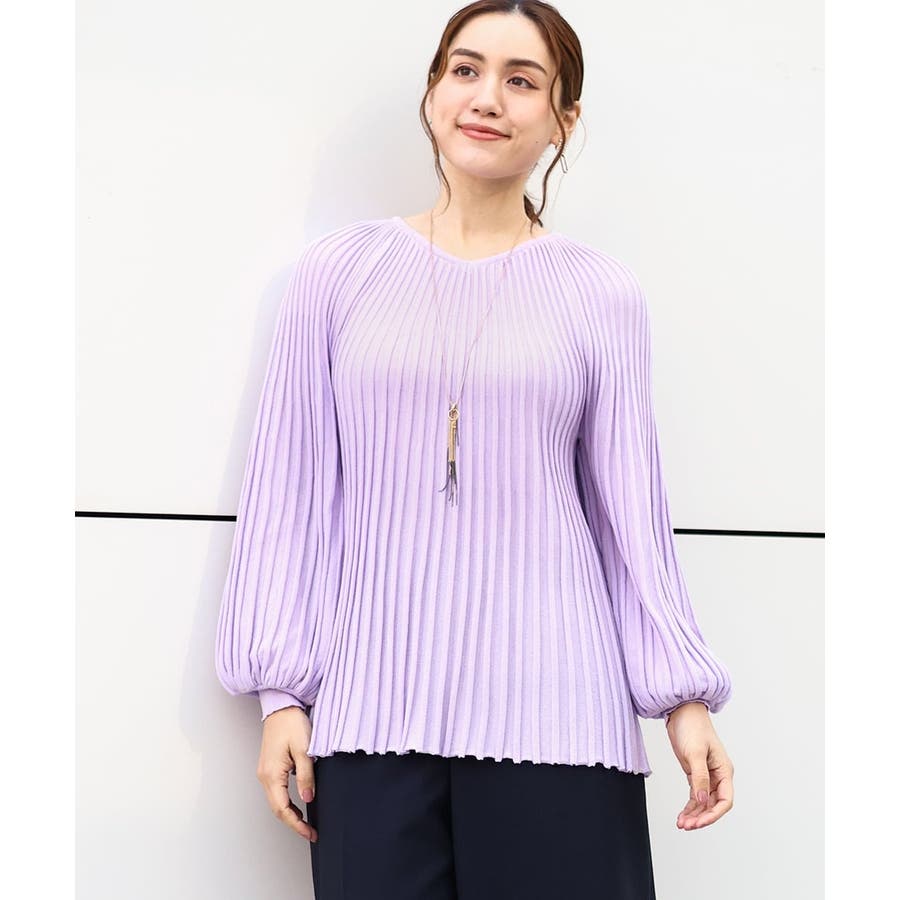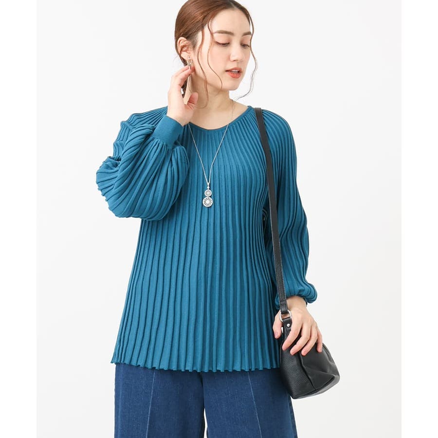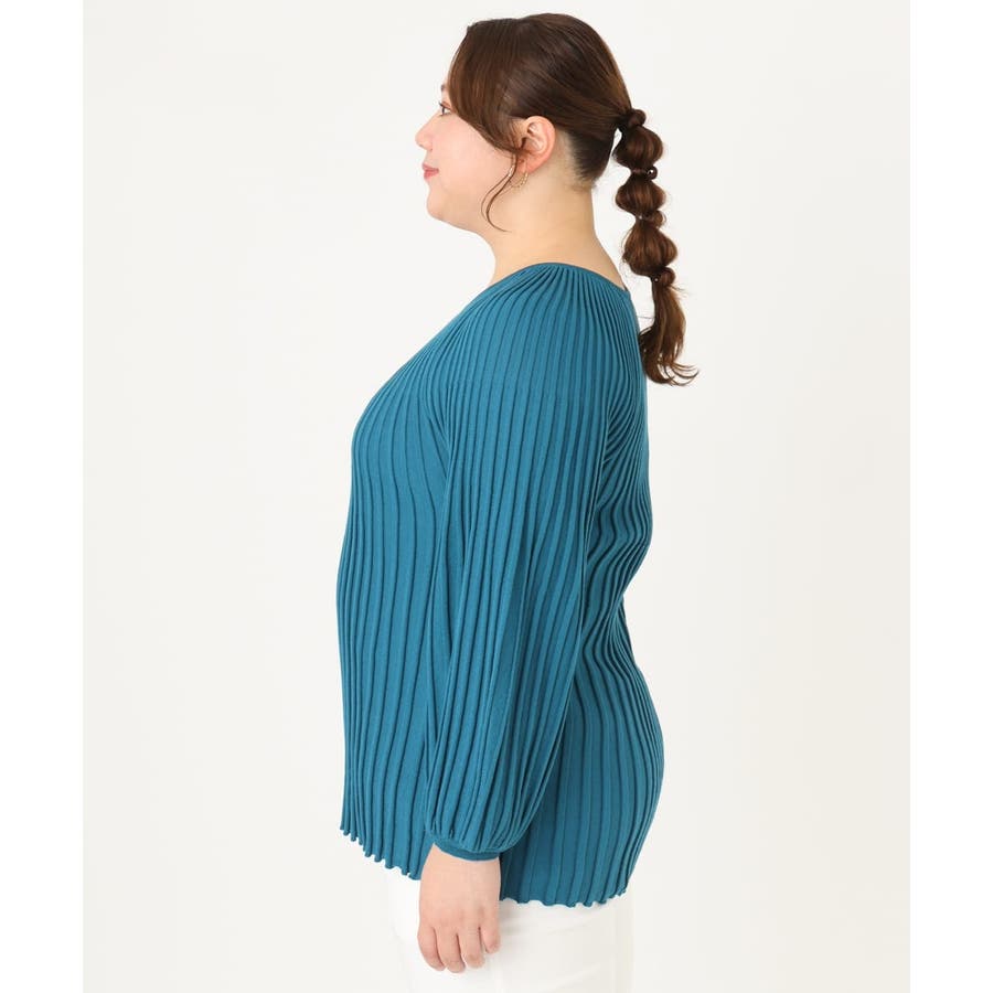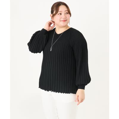 【大きいサイズ】パフスリーブプリーツ風ニット