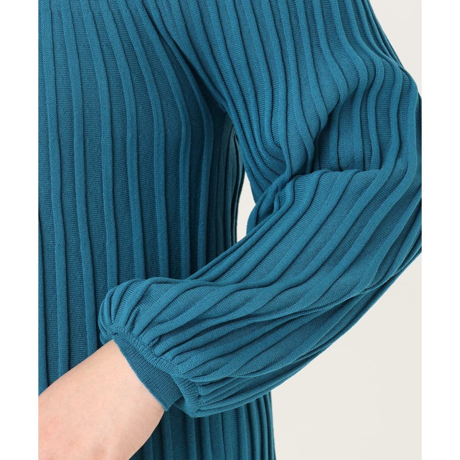 裾に向かってフレアプリーツに見える編地のニット。