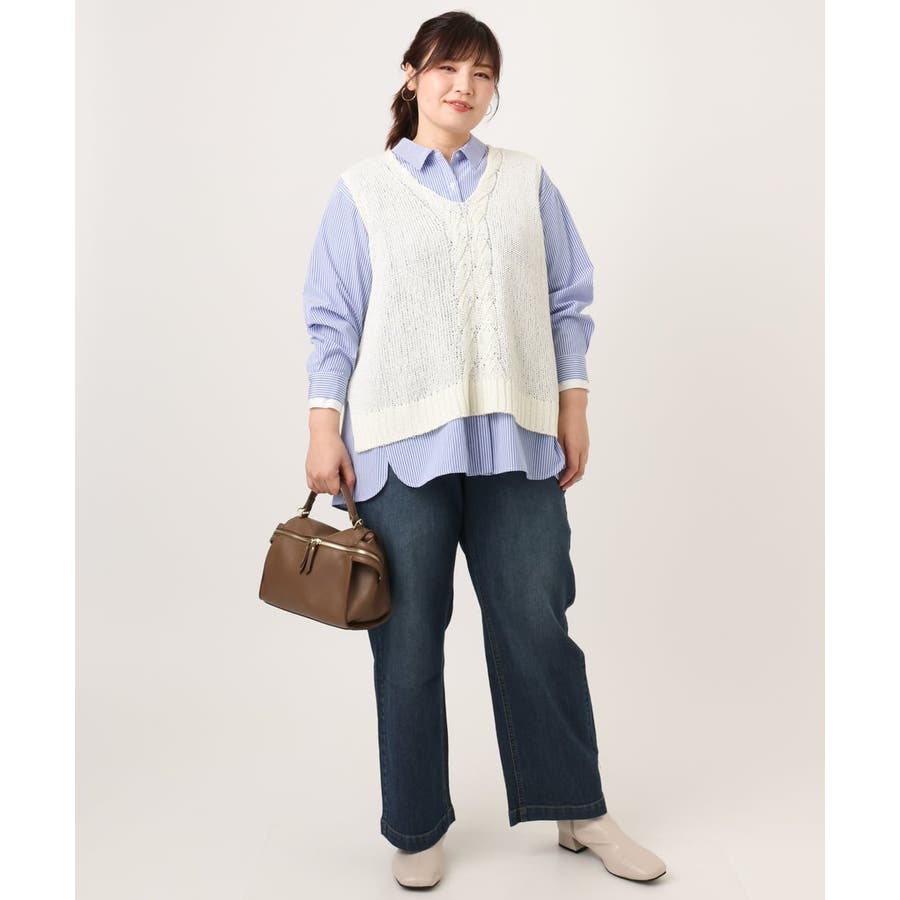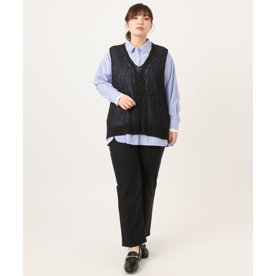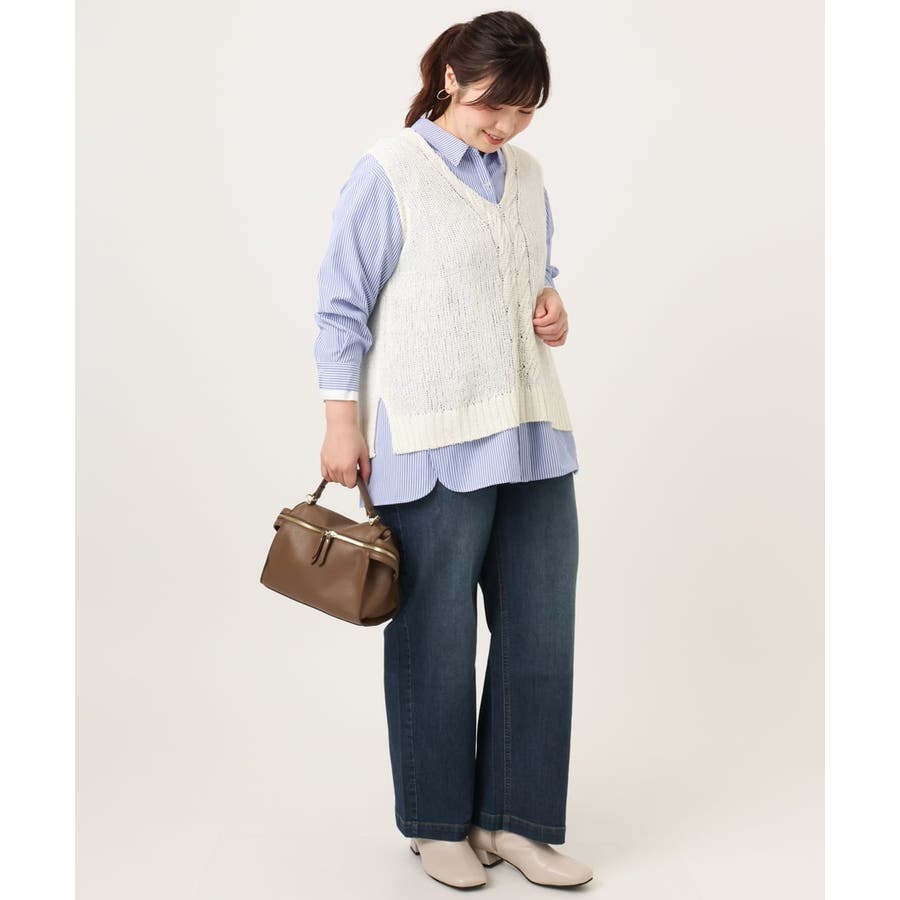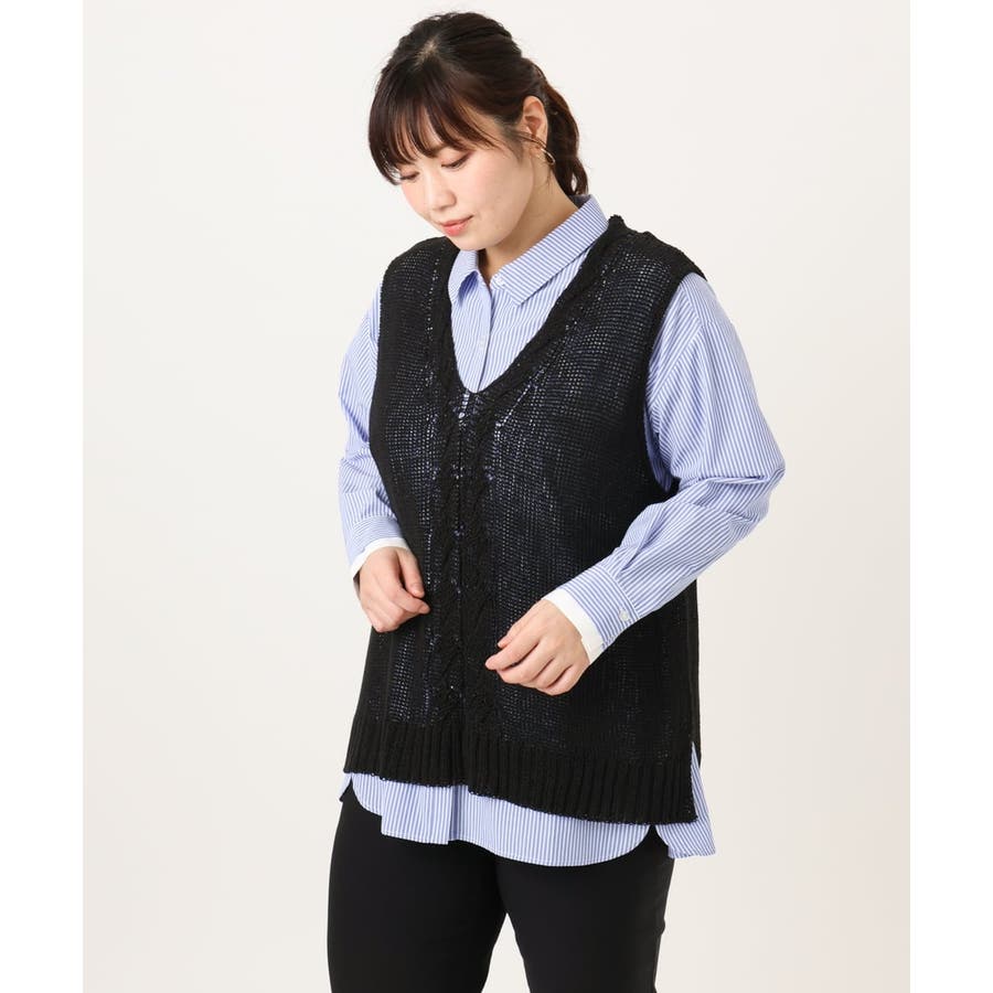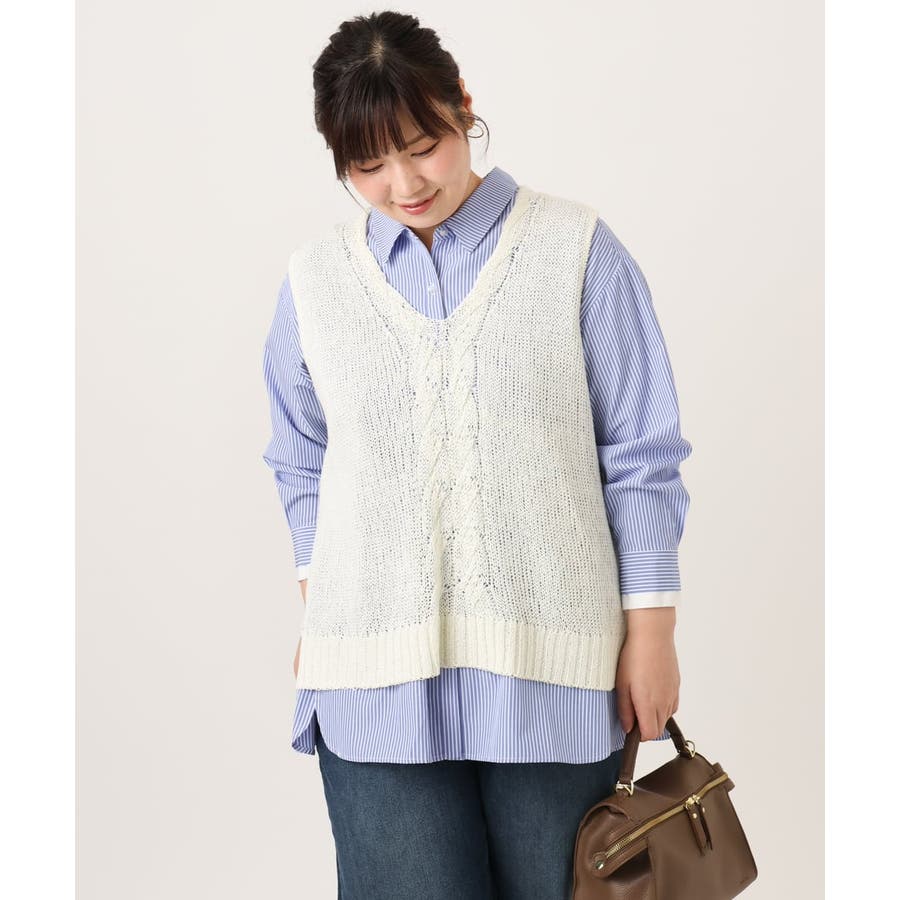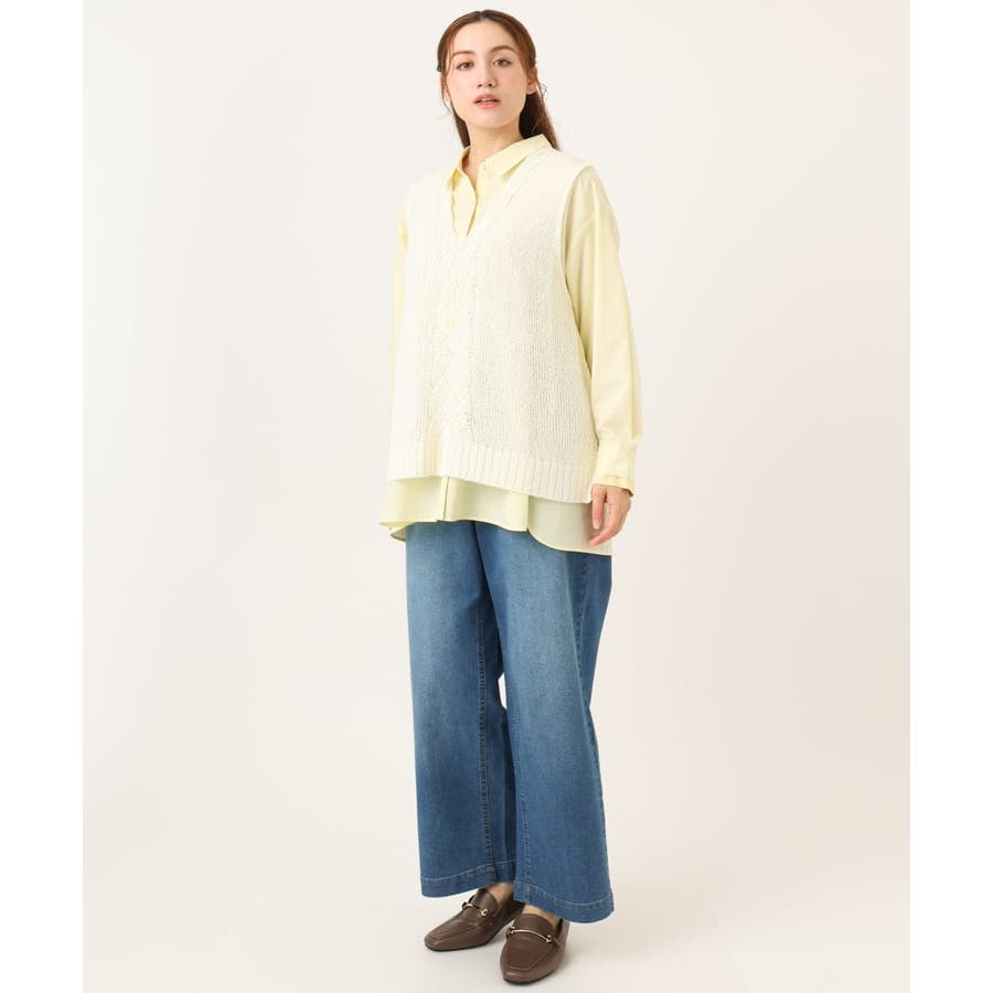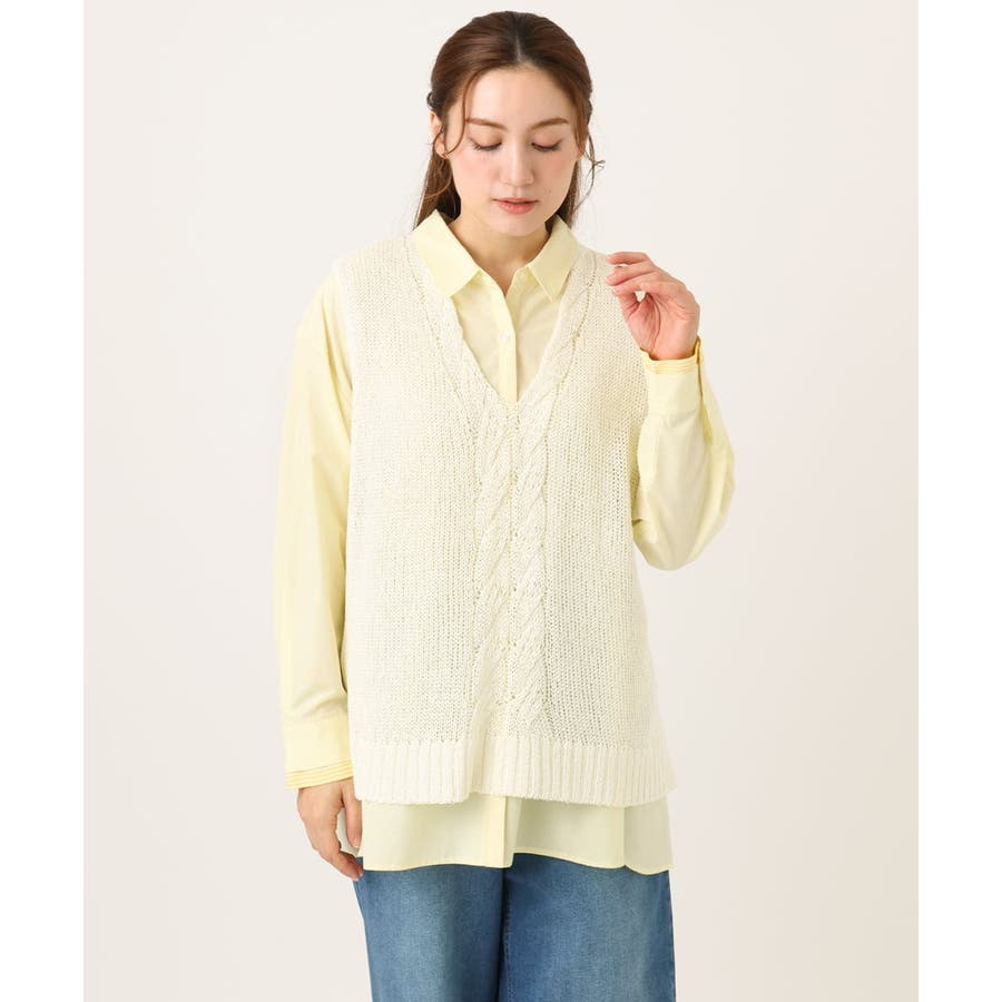 編み続きのケーブルデザインが今年らしいアクセントのニットベスト。
