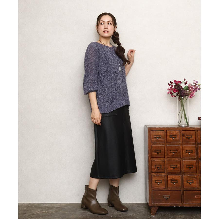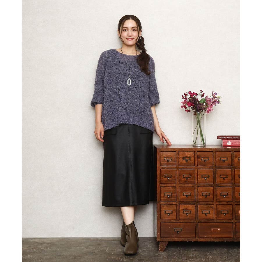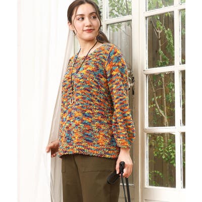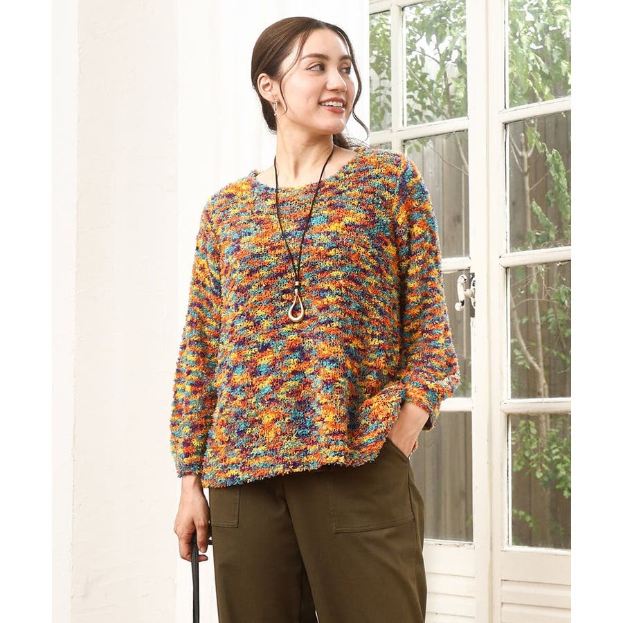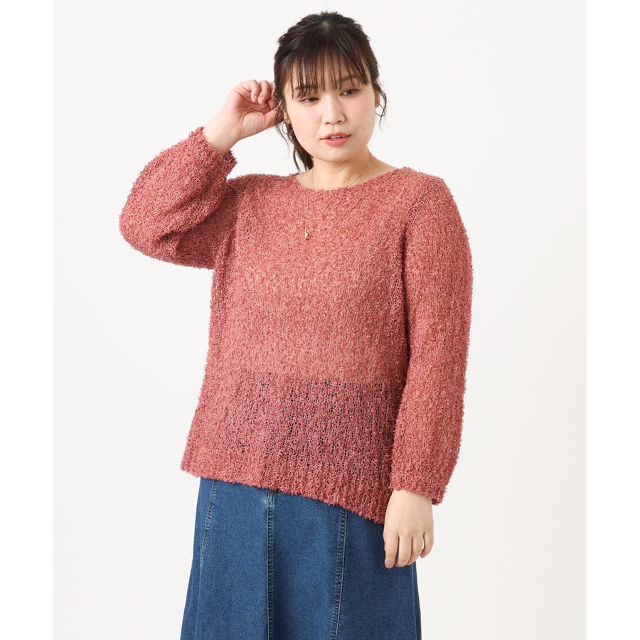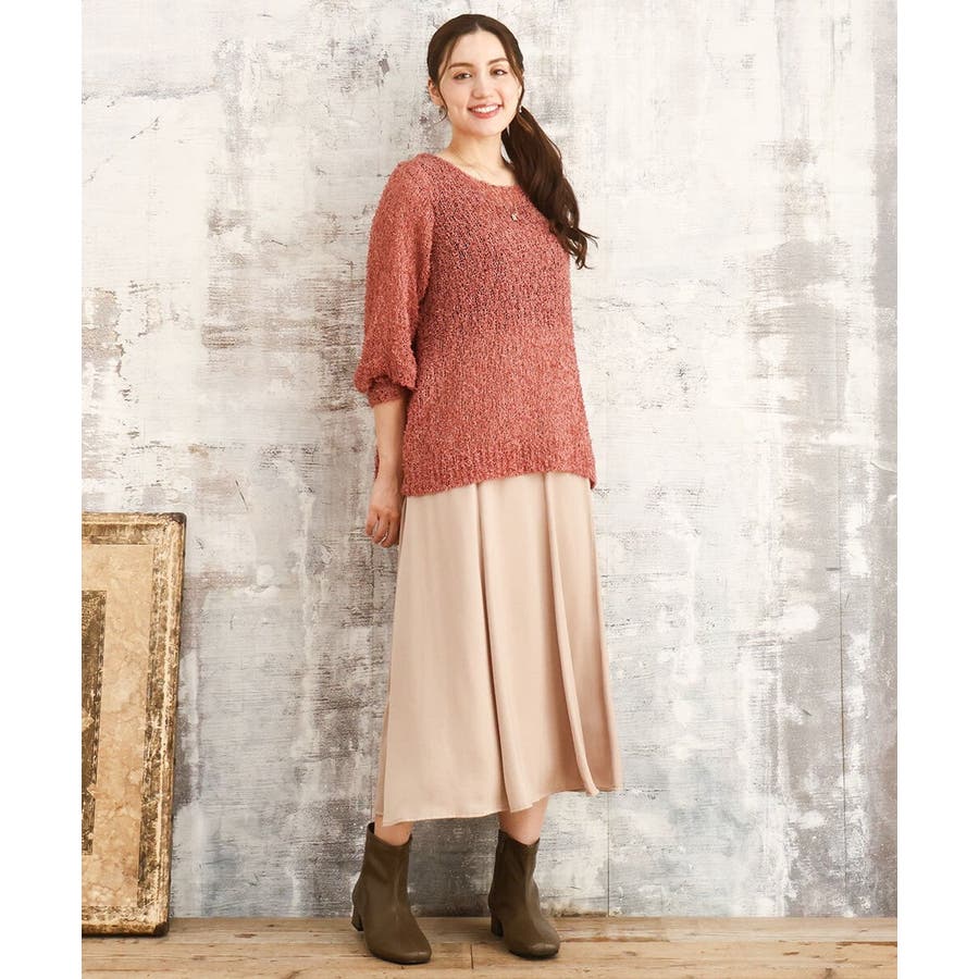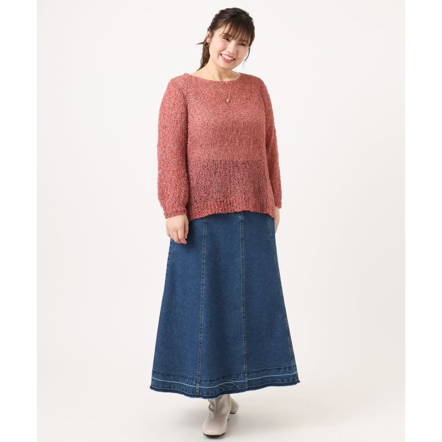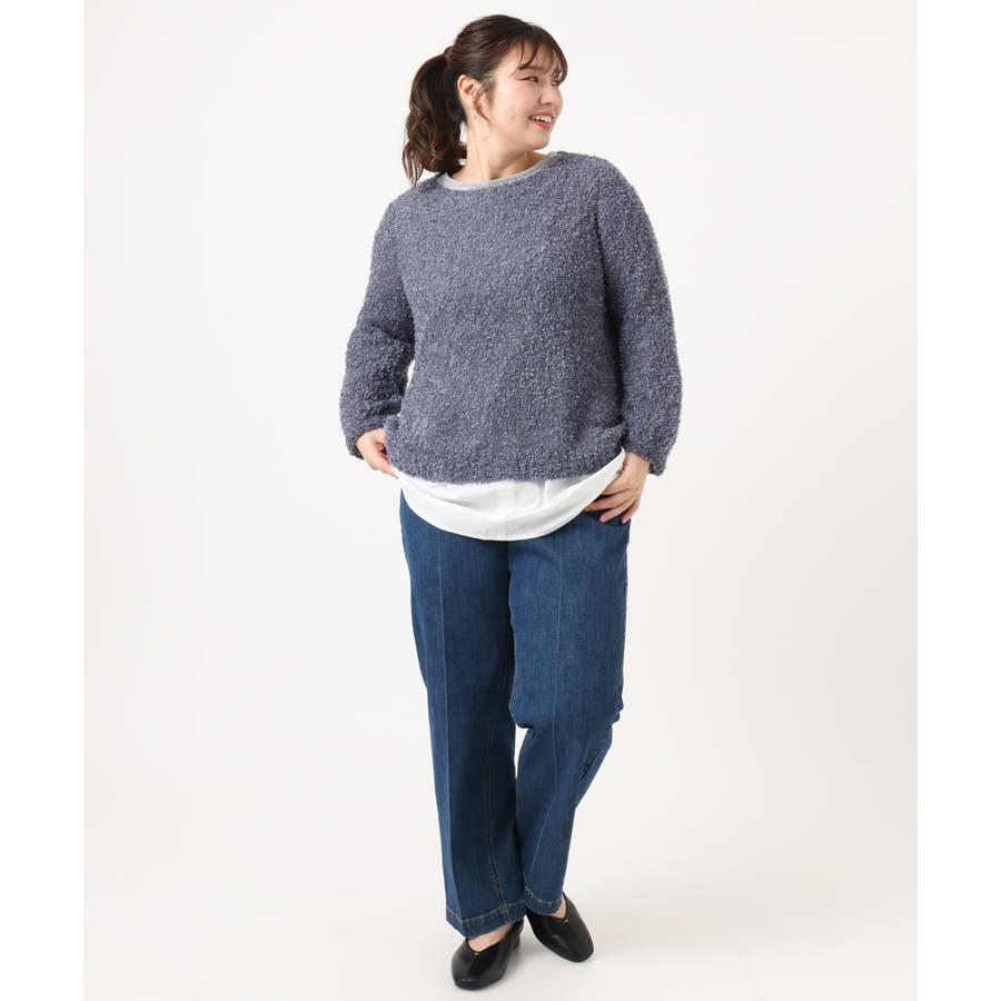 ゆるっとしたシルエットにザックリとした編地が今年らしいニットプルオーバー。