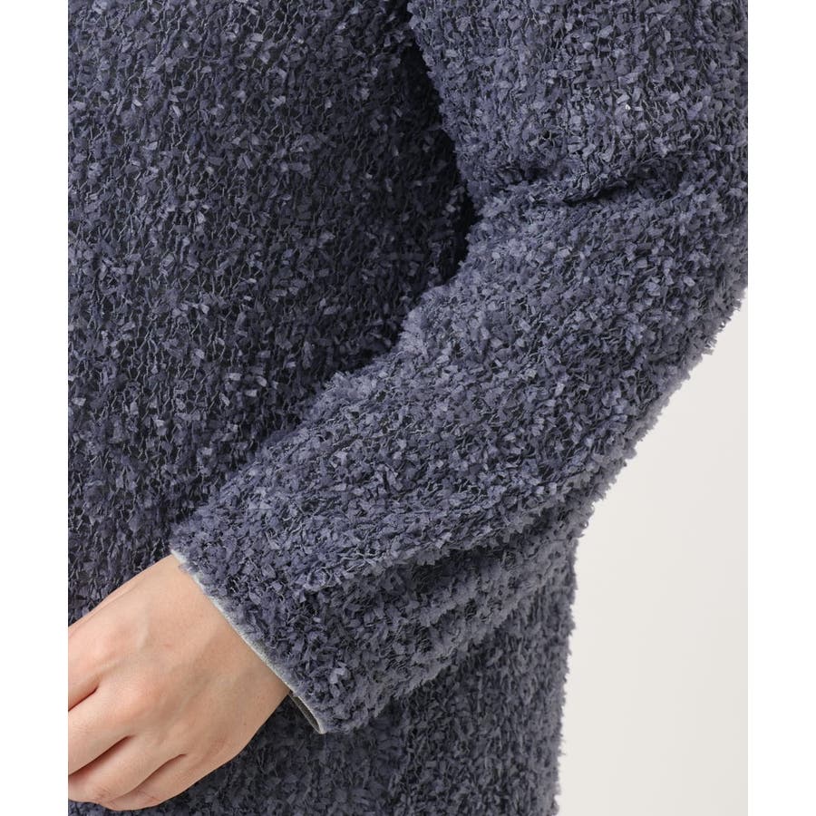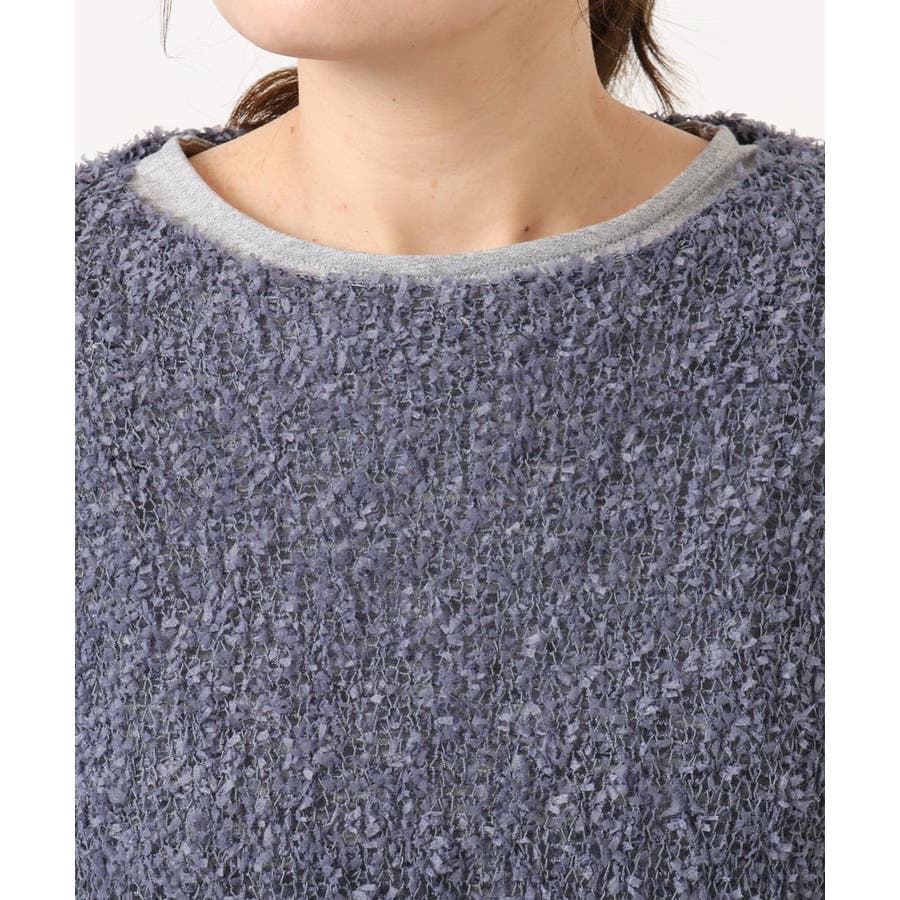 ドライタッチの細かなテープ状の糸を使用した意匠糸をざっくりと天竺に編み上げています。