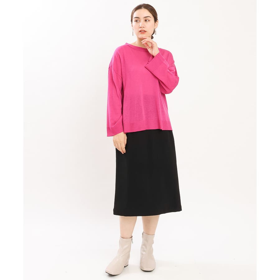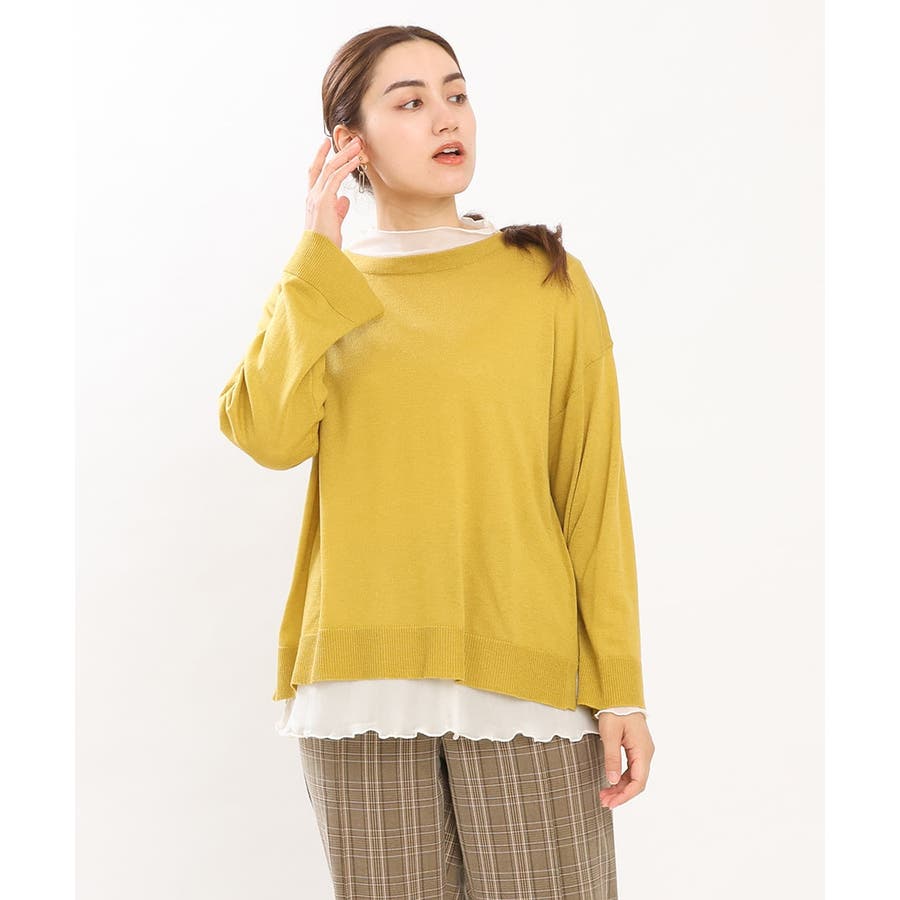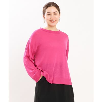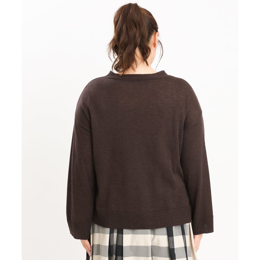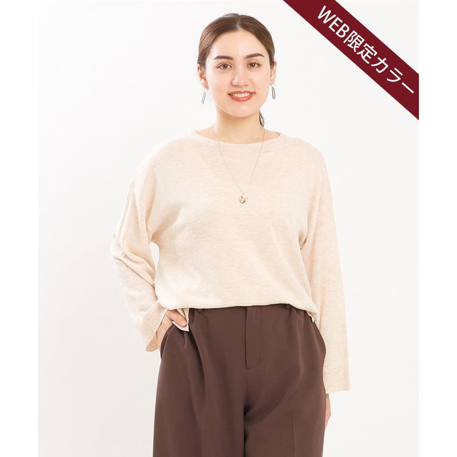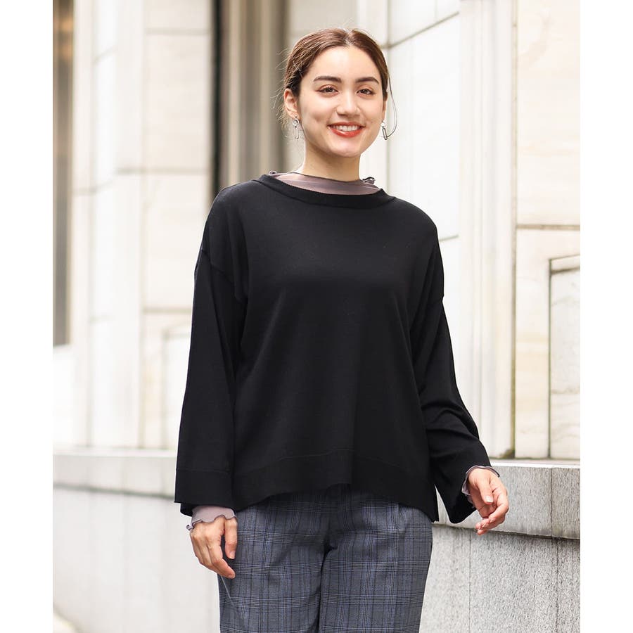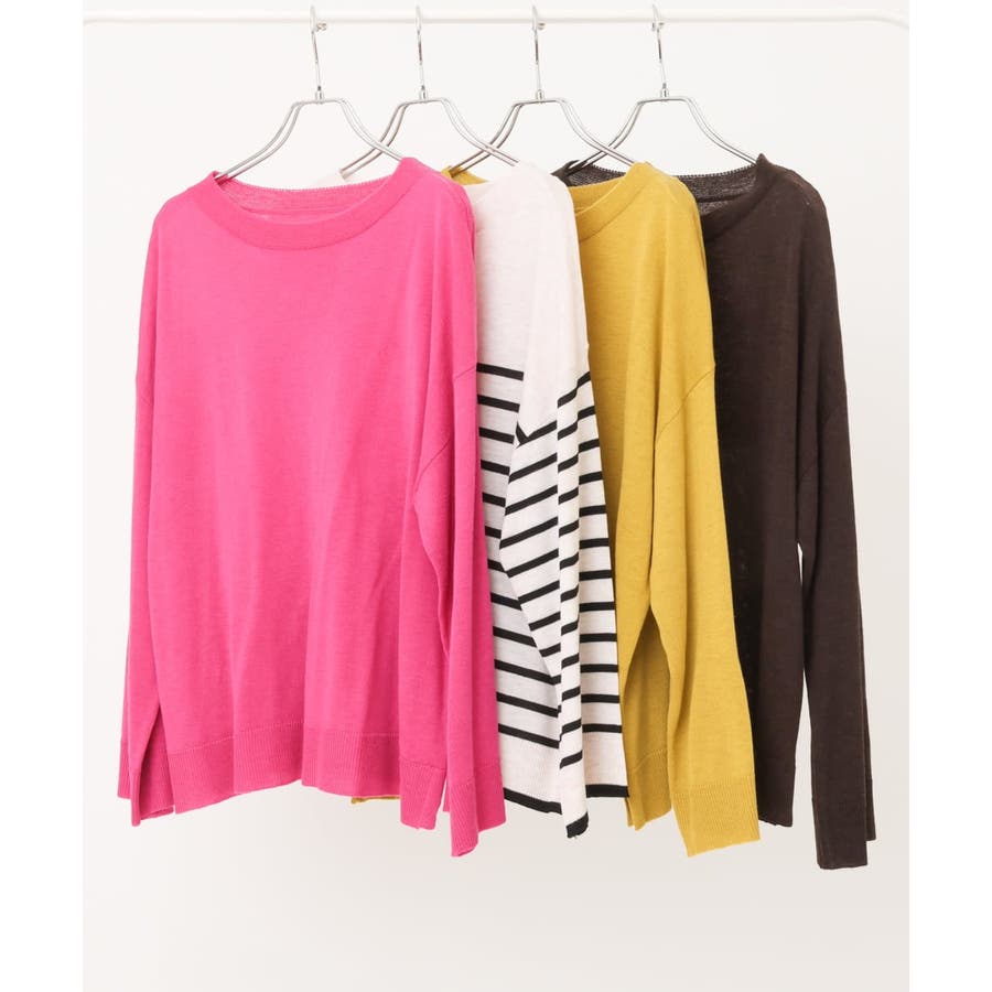 ゆったりドロップショルダーで短め丈が今年らしい薄手ニット。