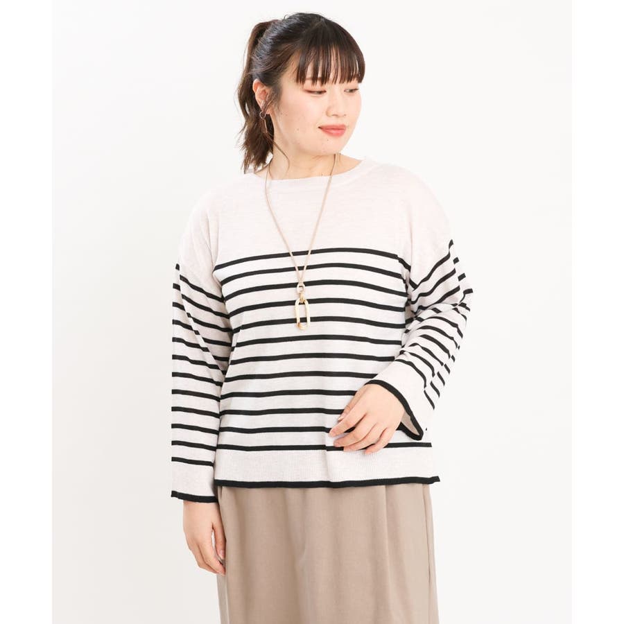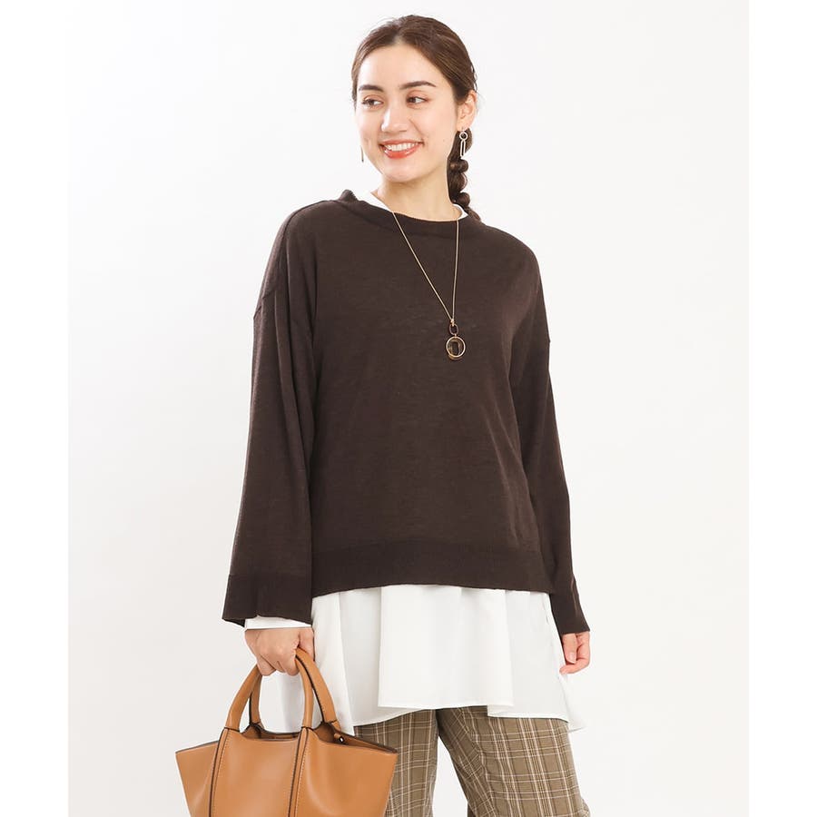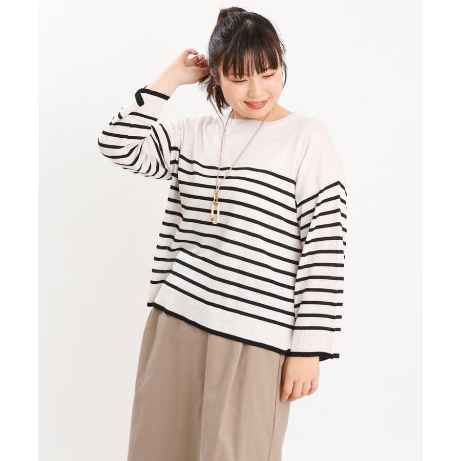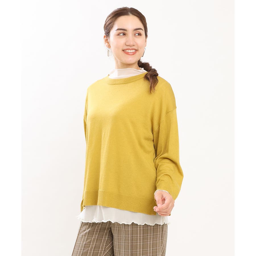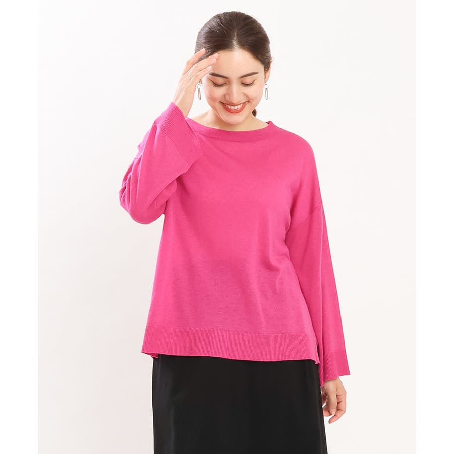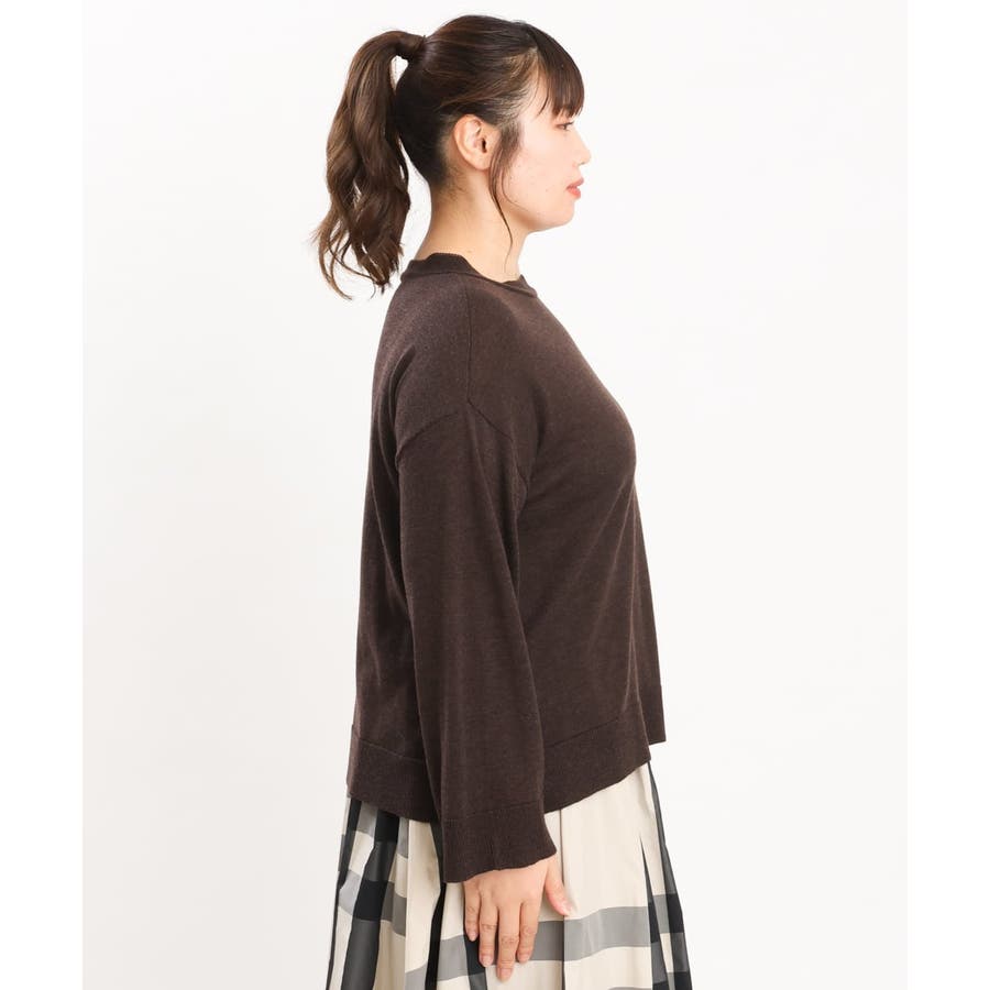 ゆったりドロップショルダーで短め丈が今年らしい薄手ニット。