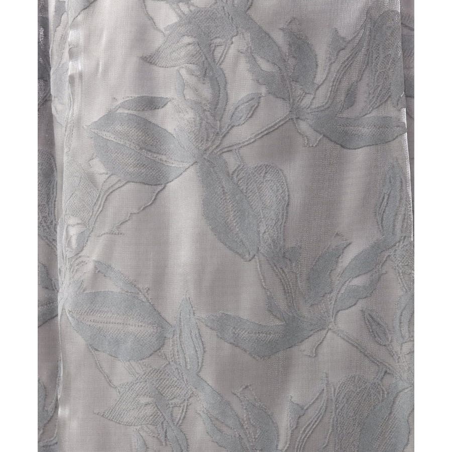 程よいハリと光沢のあるオーガンジーにボタニカル柄のフロッキープリントをかけたシアー素材を使用。