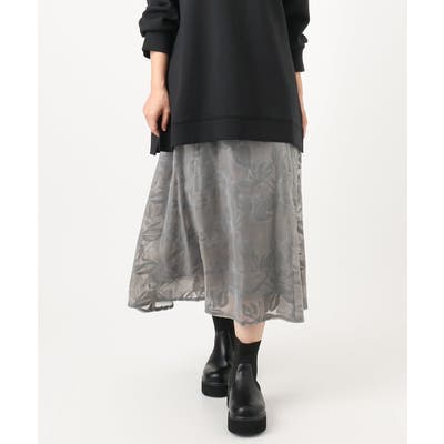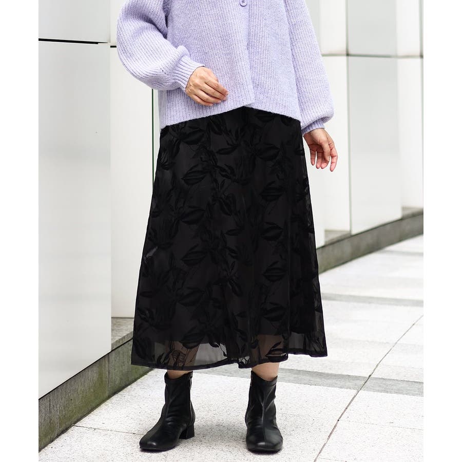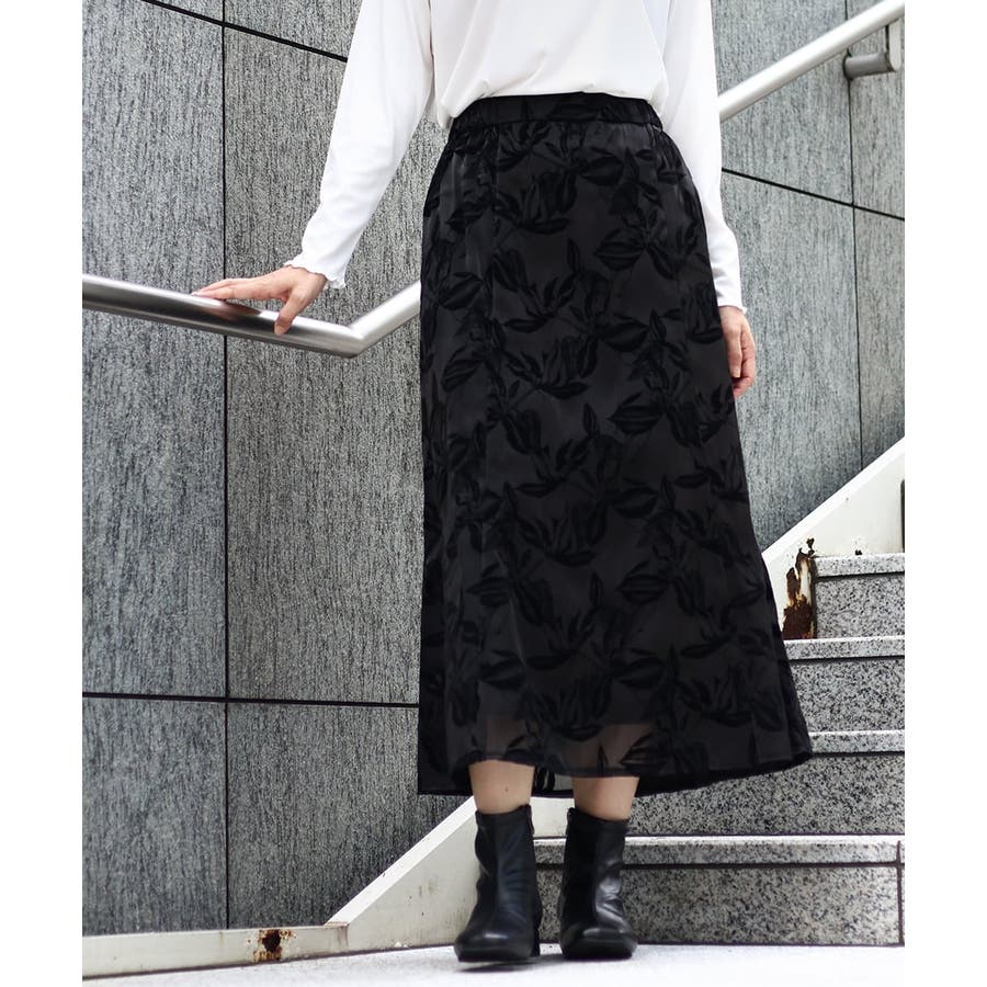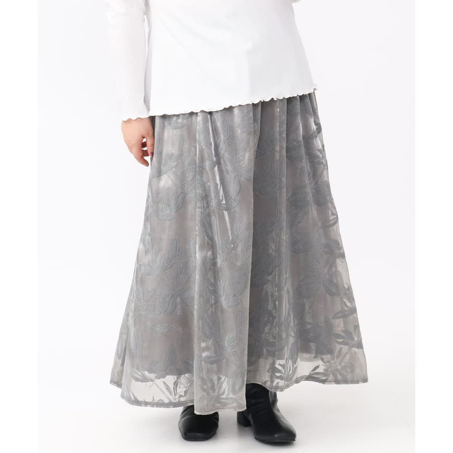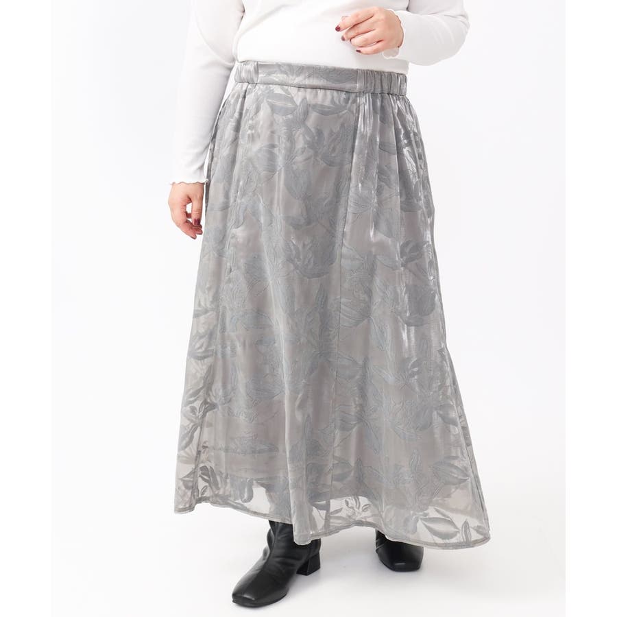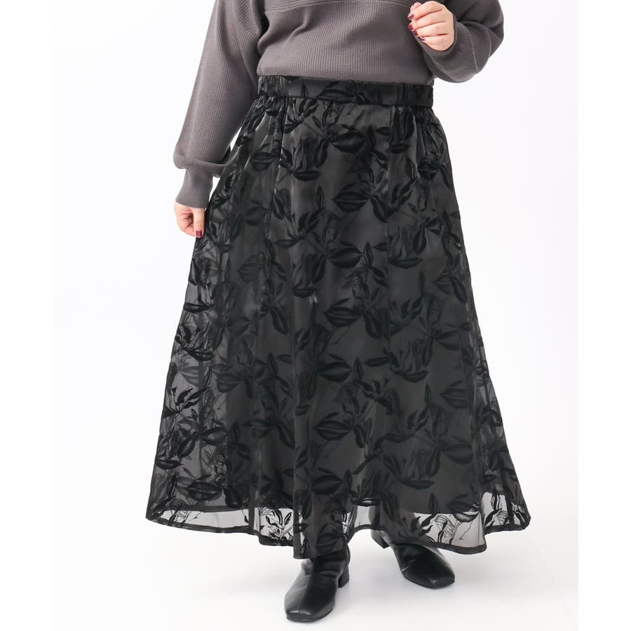 【大きいサイズ】オーガンジーフロッキープリントスカート