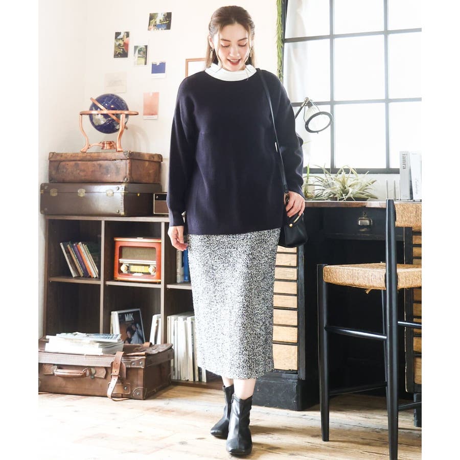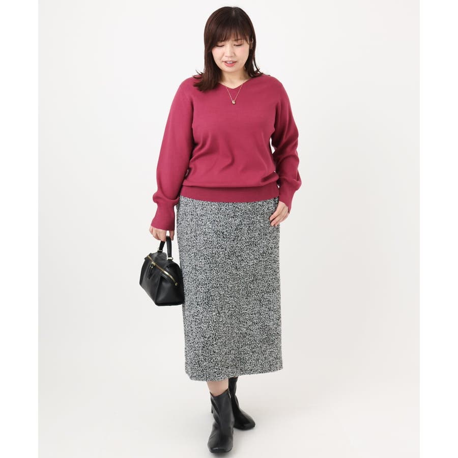 【大きいサイズ/a.v.v×eur3】ツイードタイトスカート