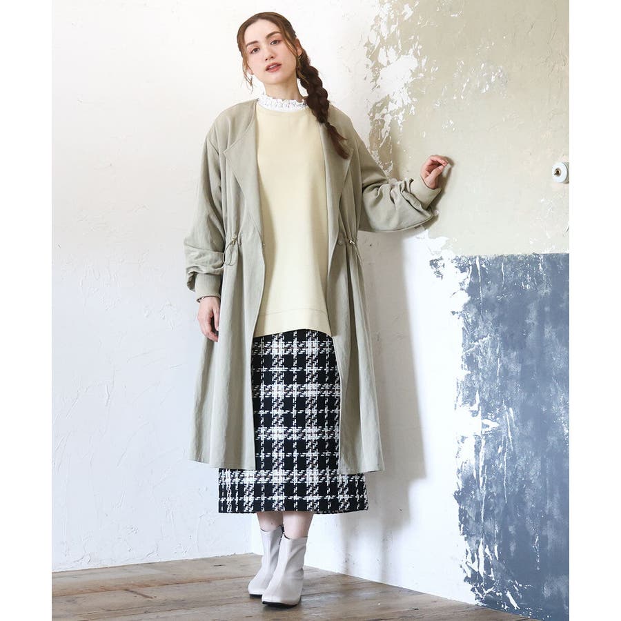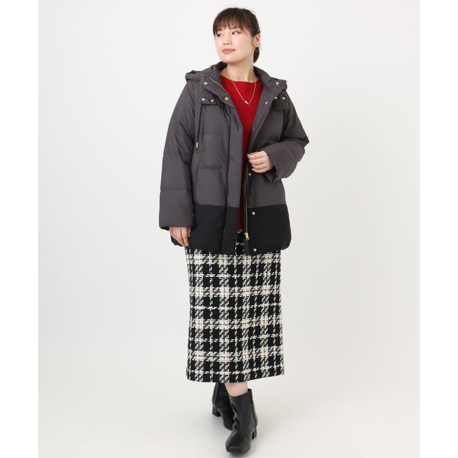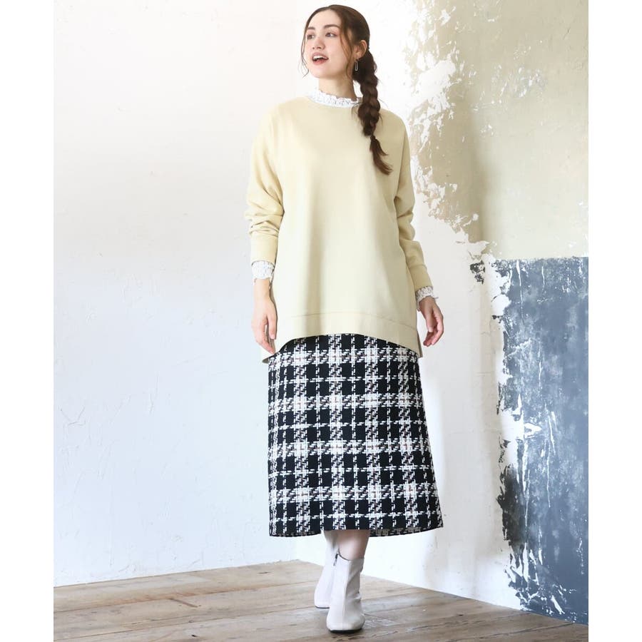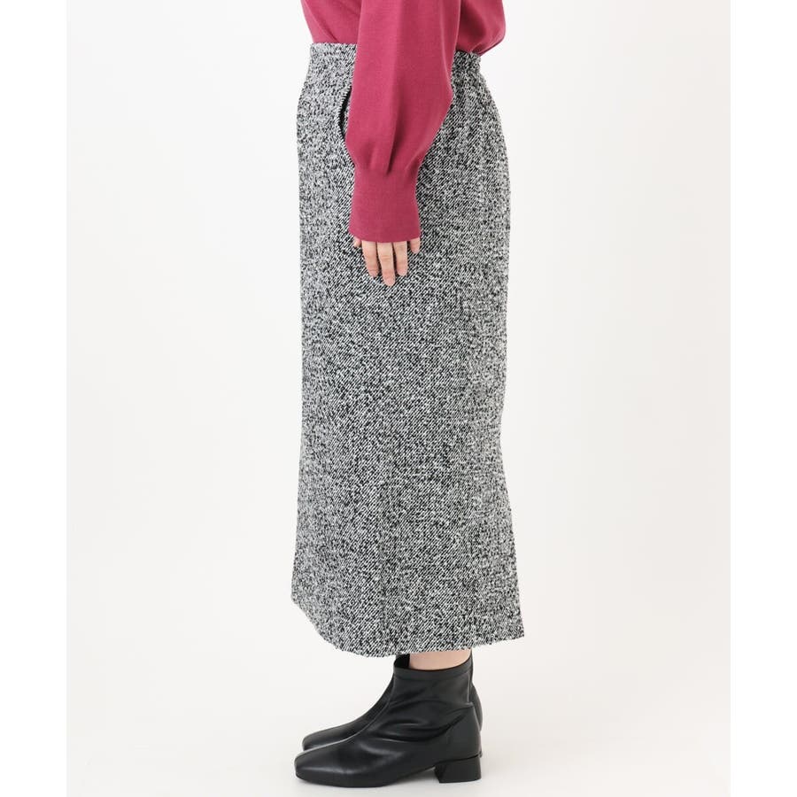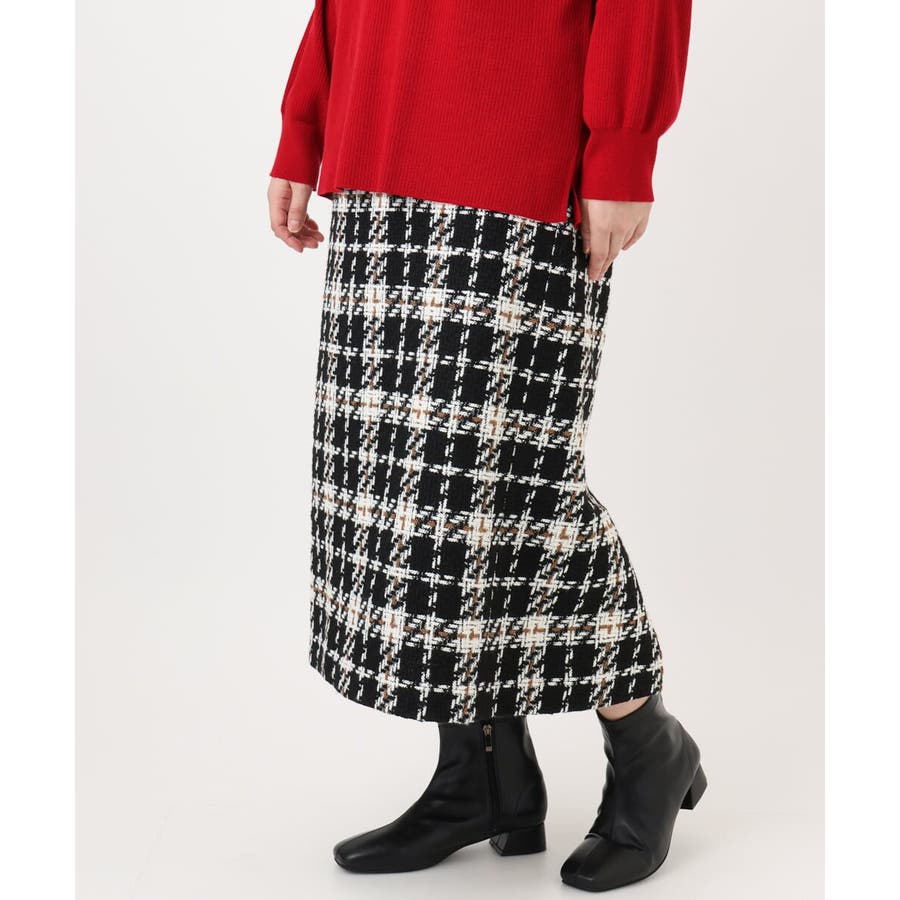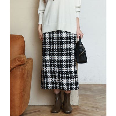 秋冬らしいザックリとしたチェックとツィードのタイトスカート。