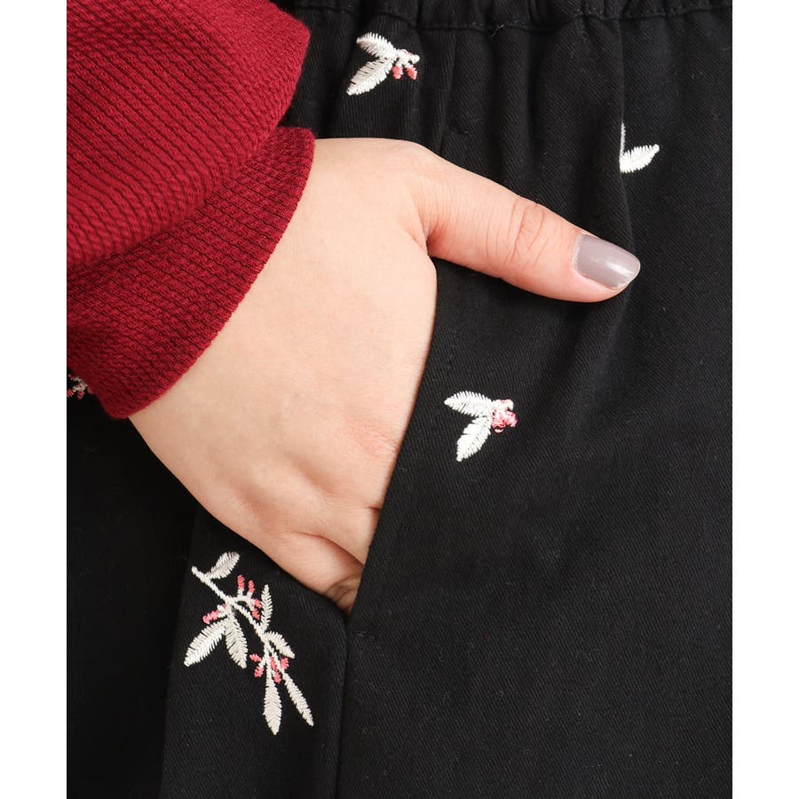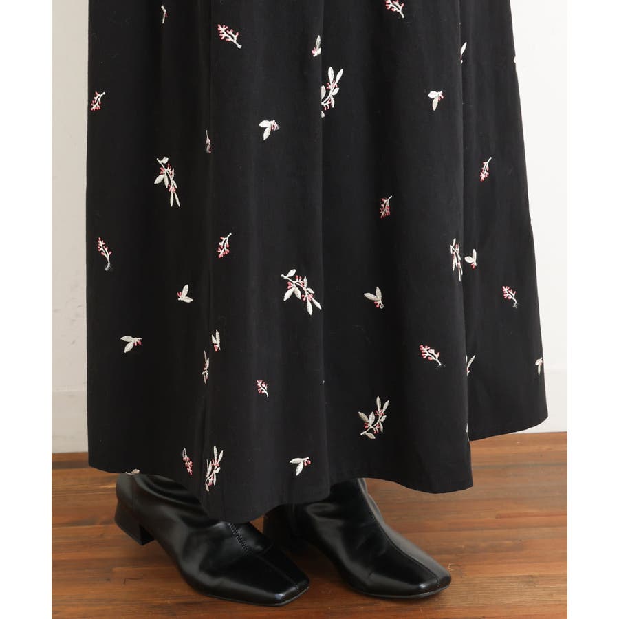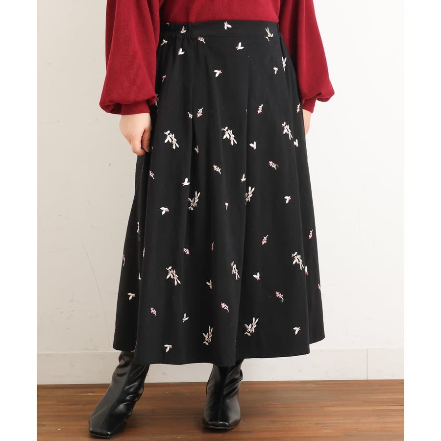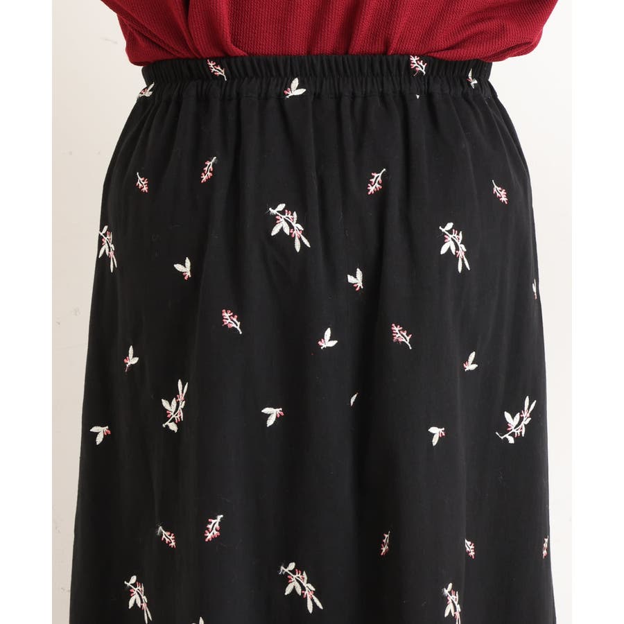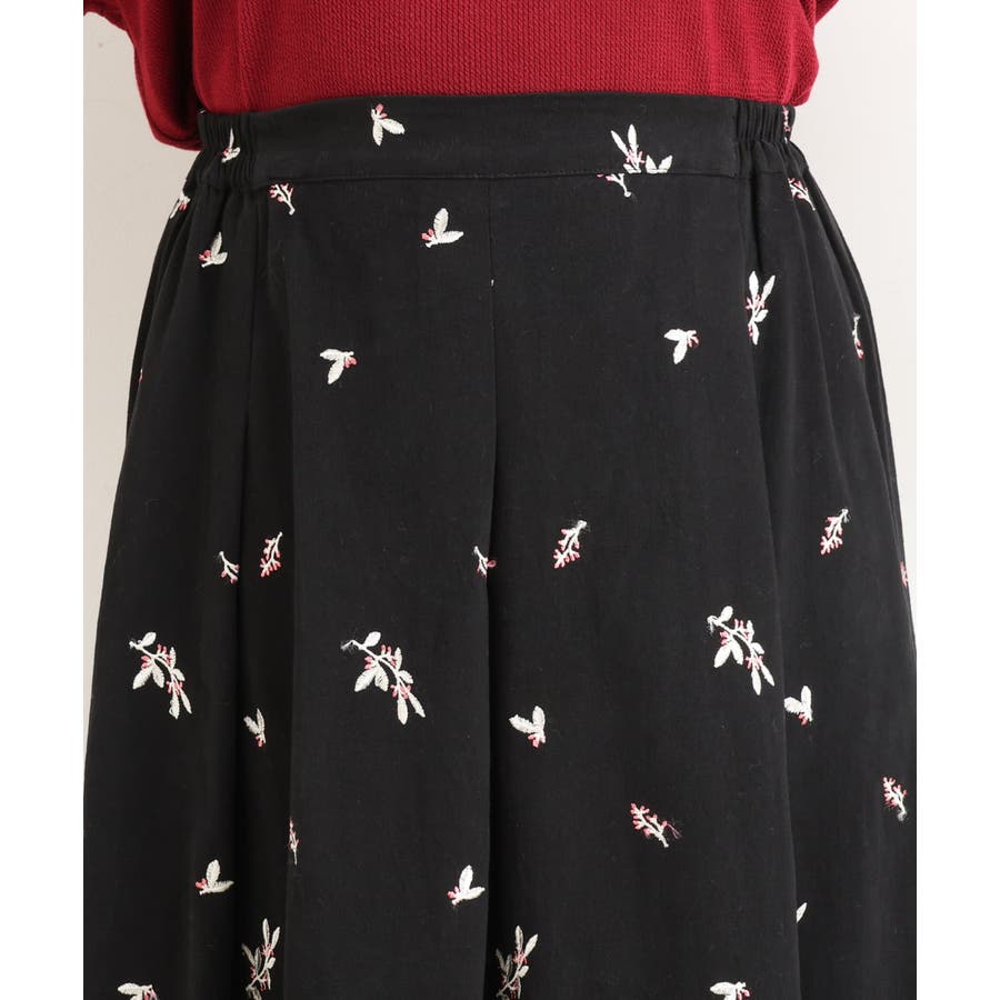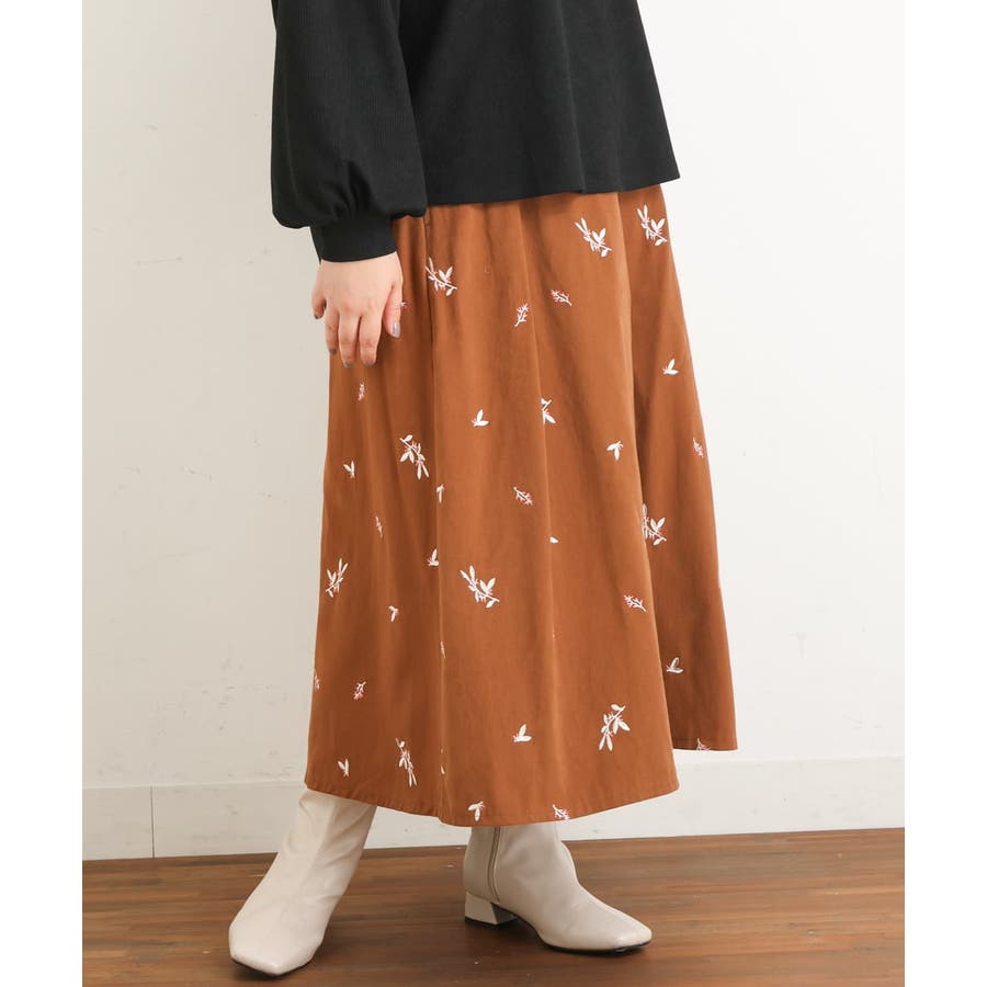 リーフ刺繍がポイントのナチュラルな雰囲気が楽しめるスカートです。
