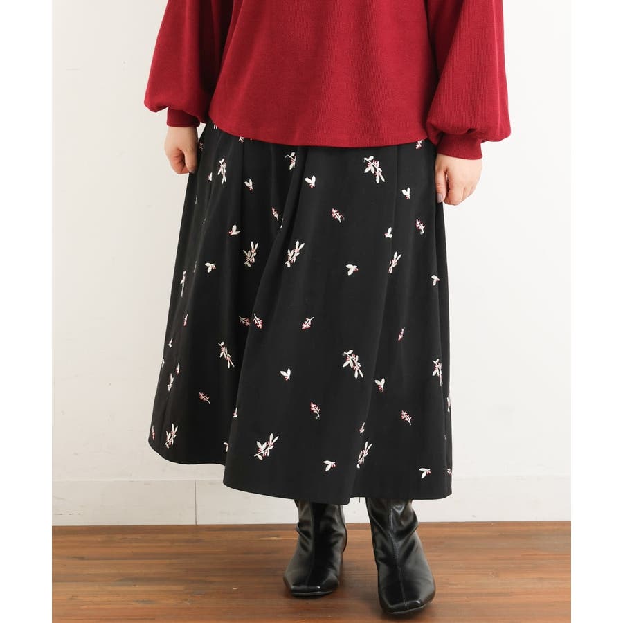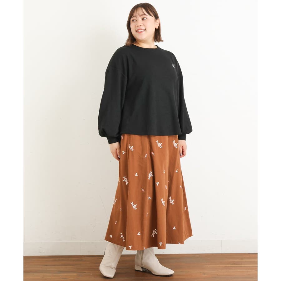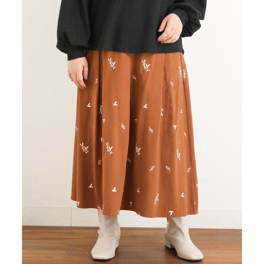 【大きいサイズ/soso×eur3】リーフ刺繍スカート