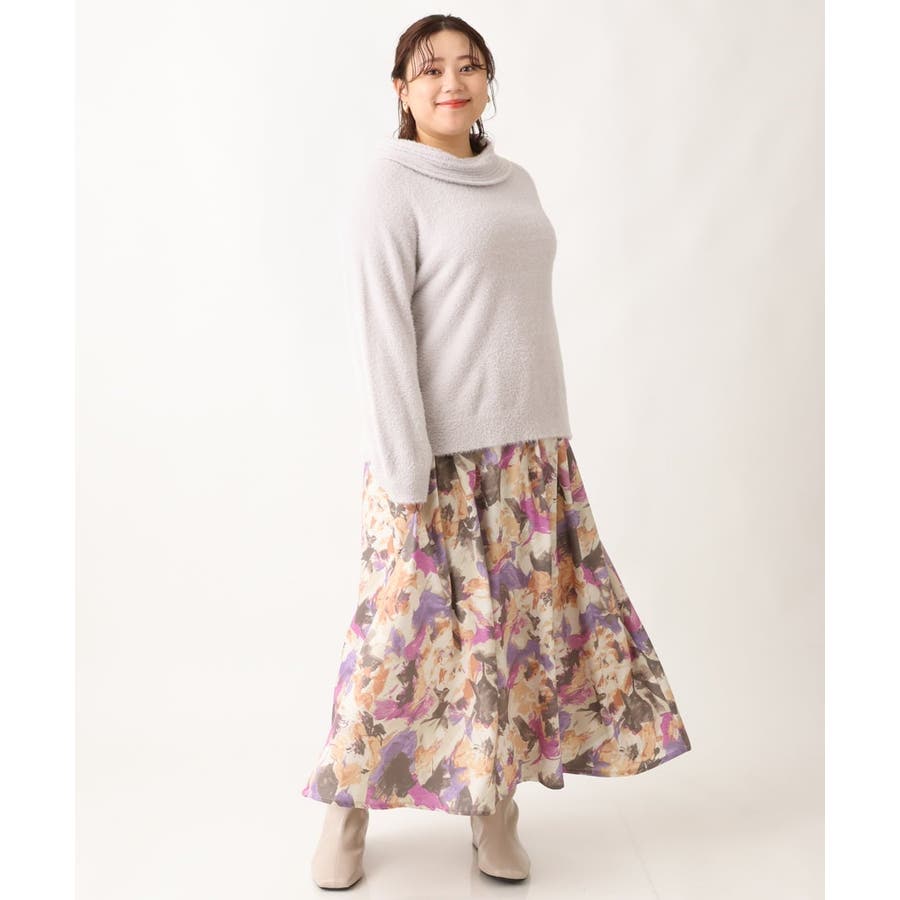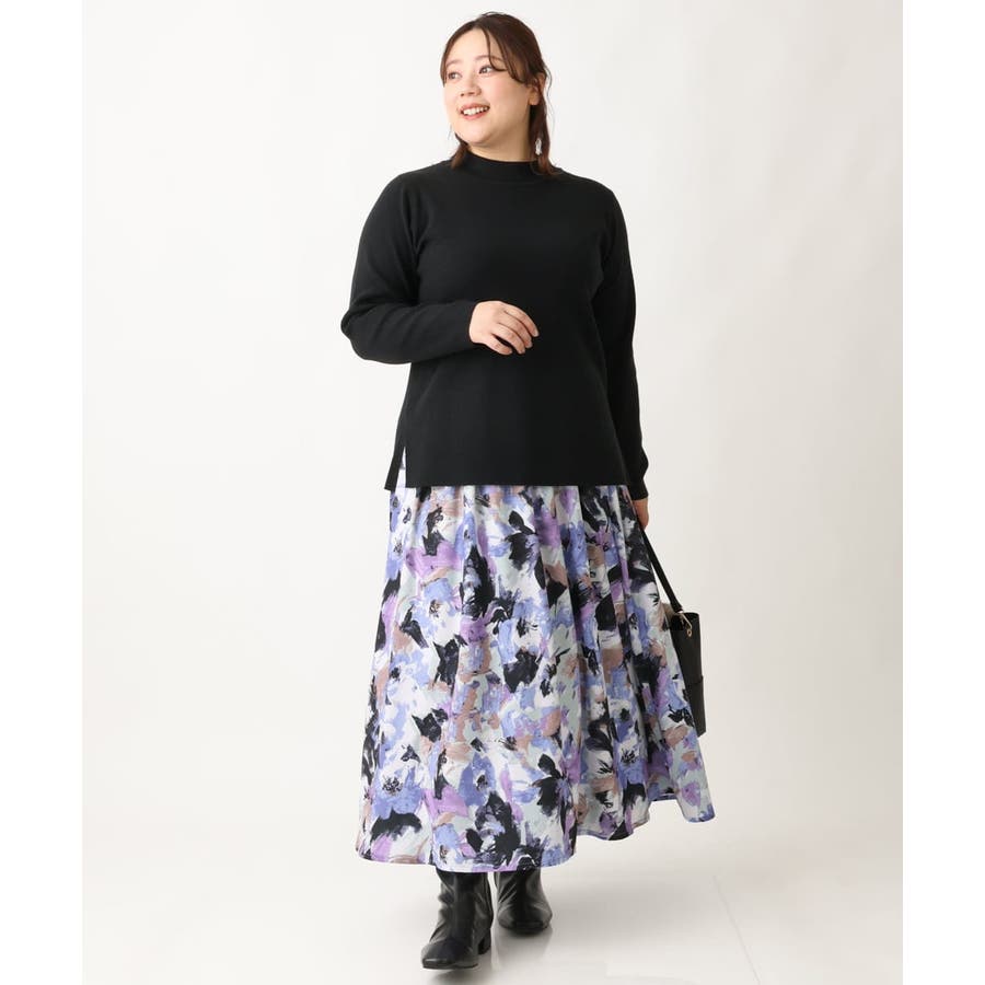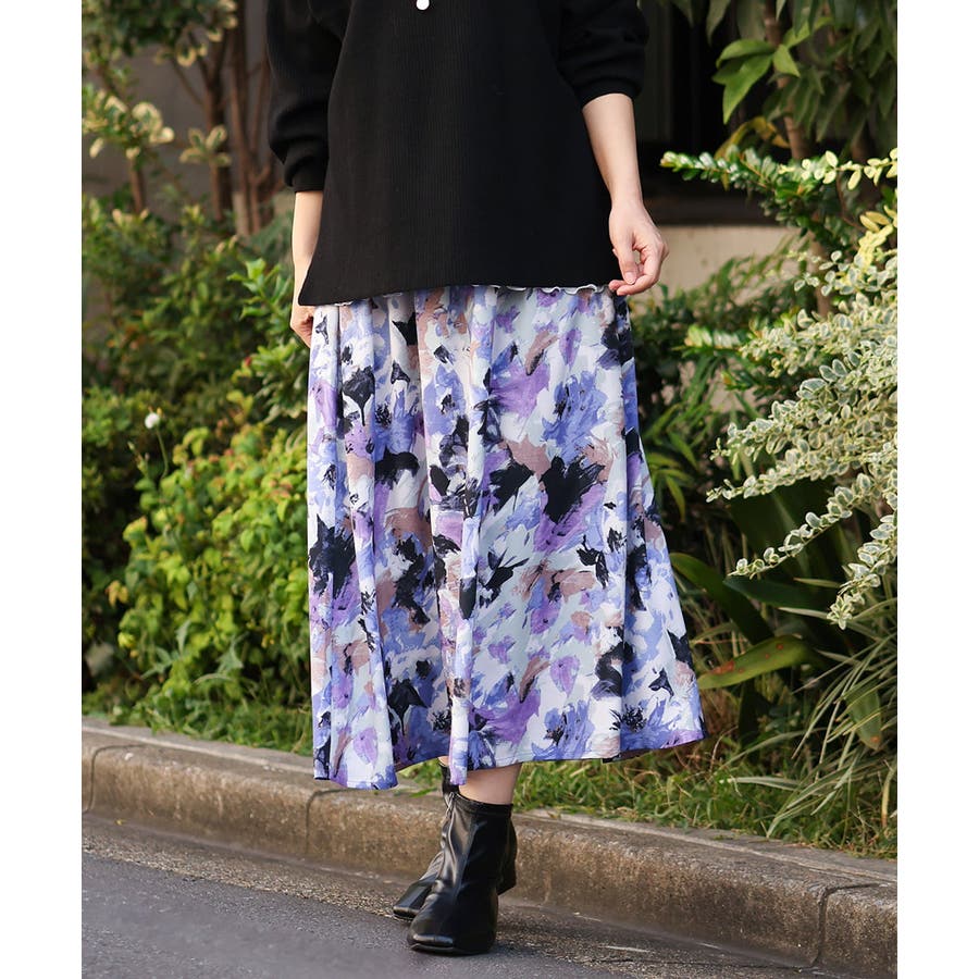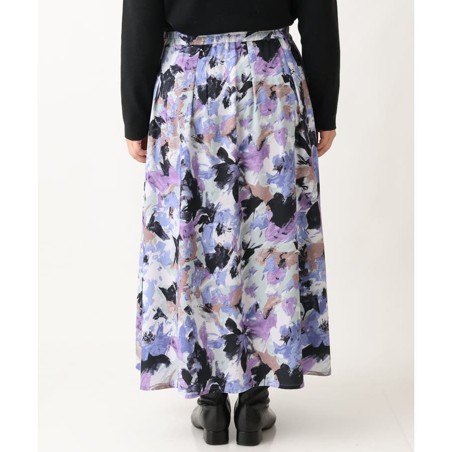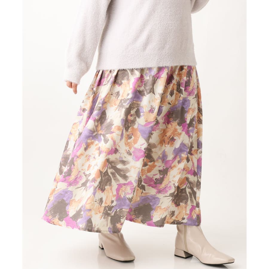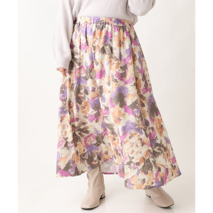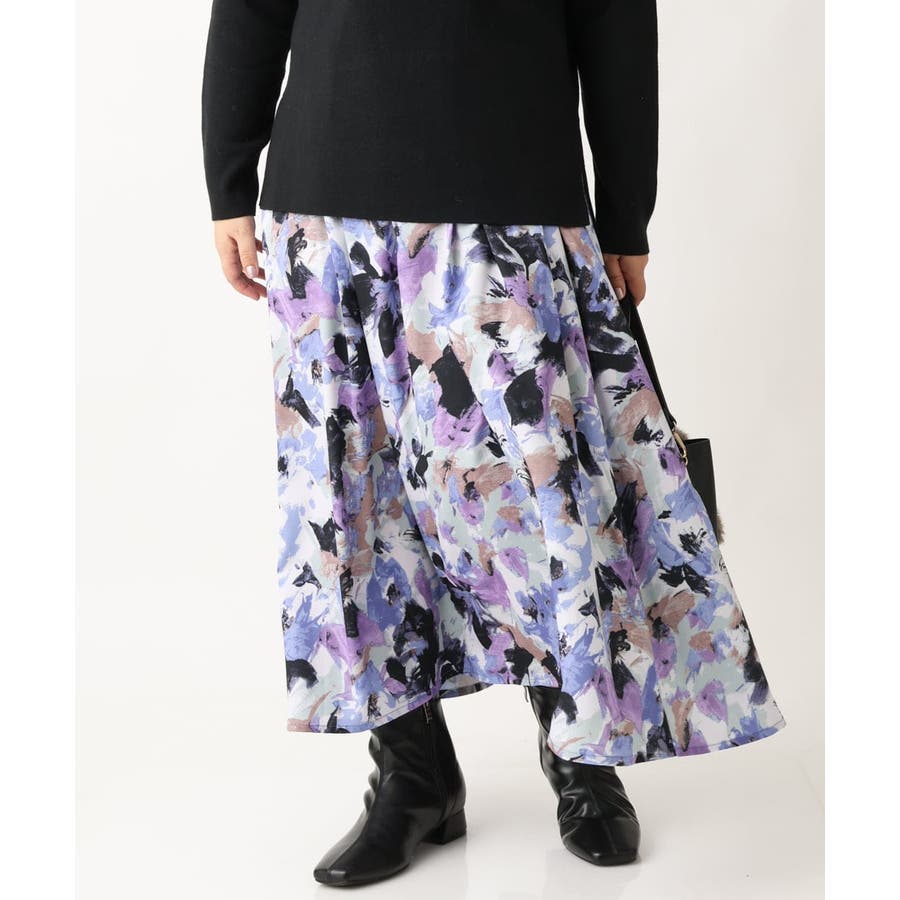 【大きいサイズ】ペイントフラワープリントスカート