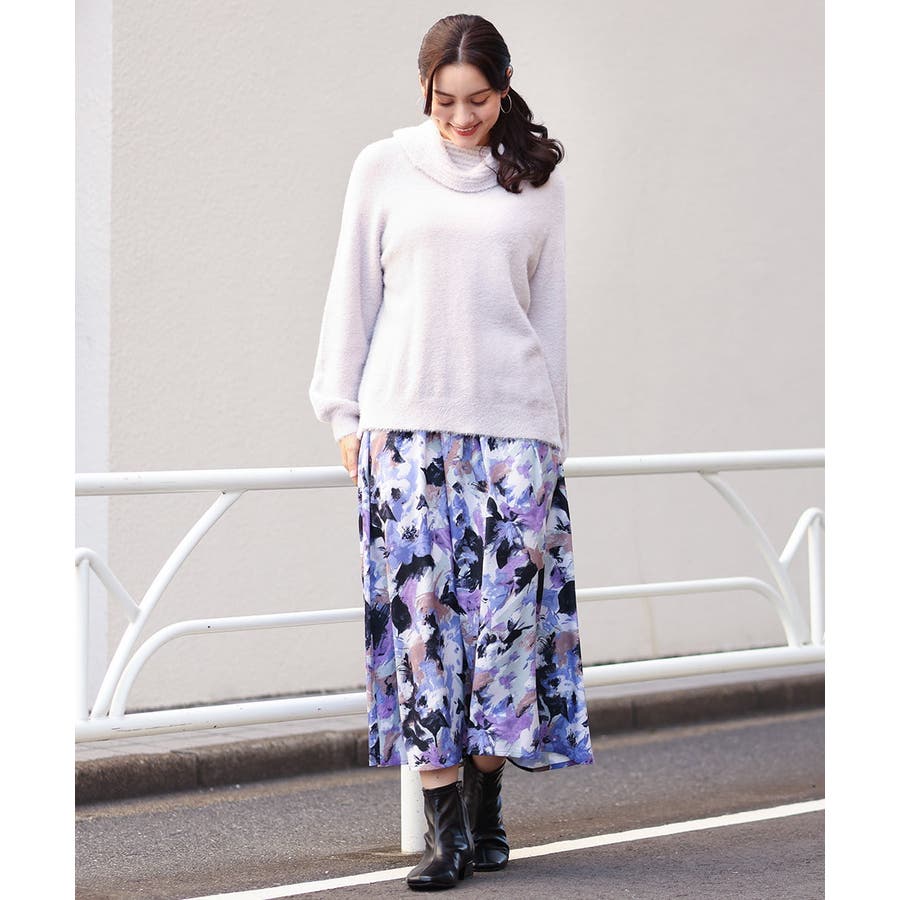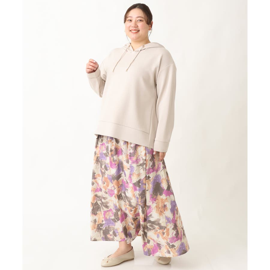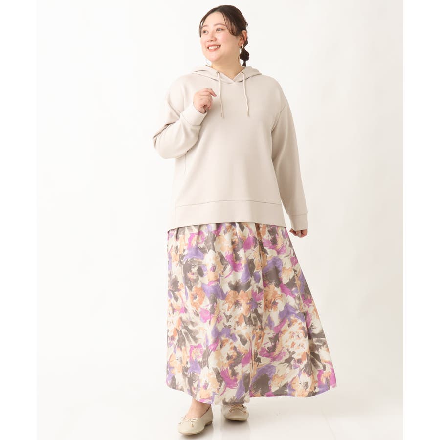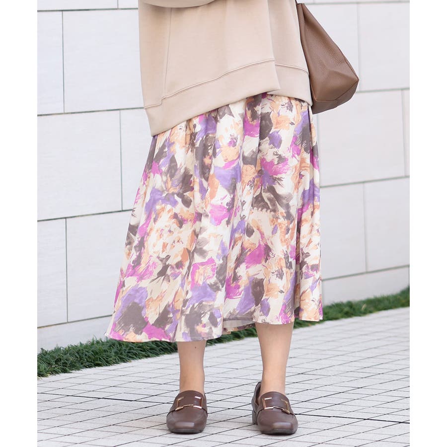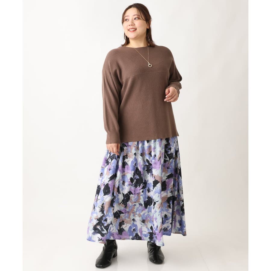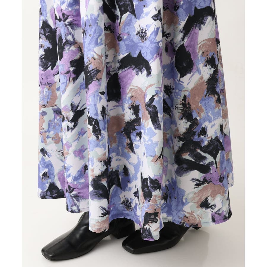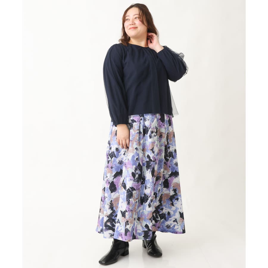 【大きいサイズ】ペイントフラワープリントスカート
