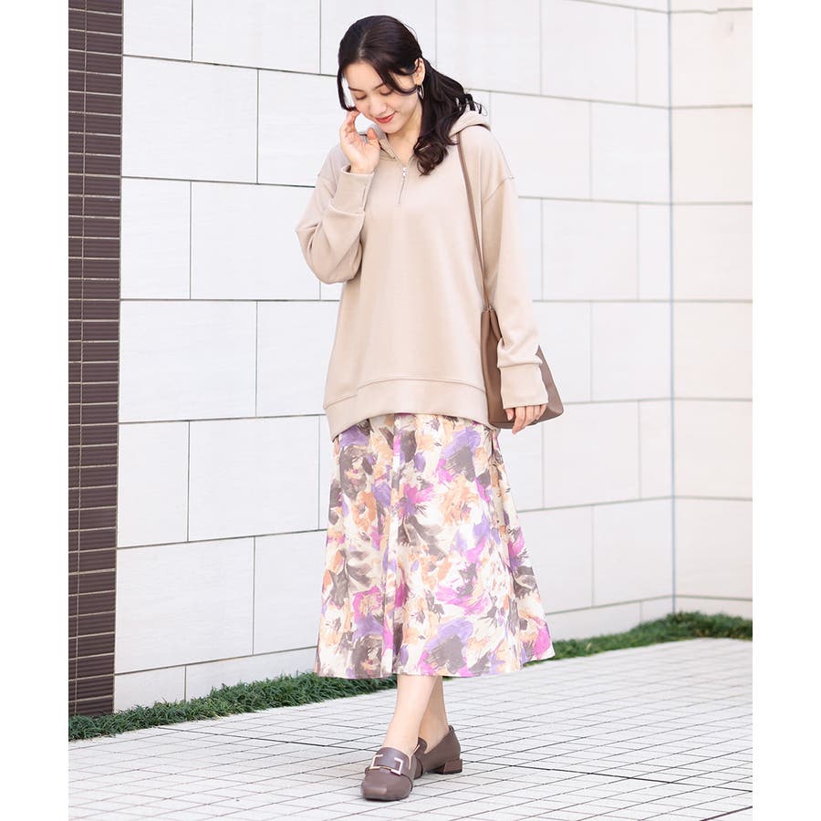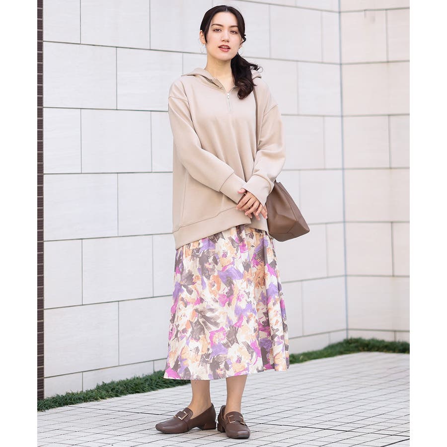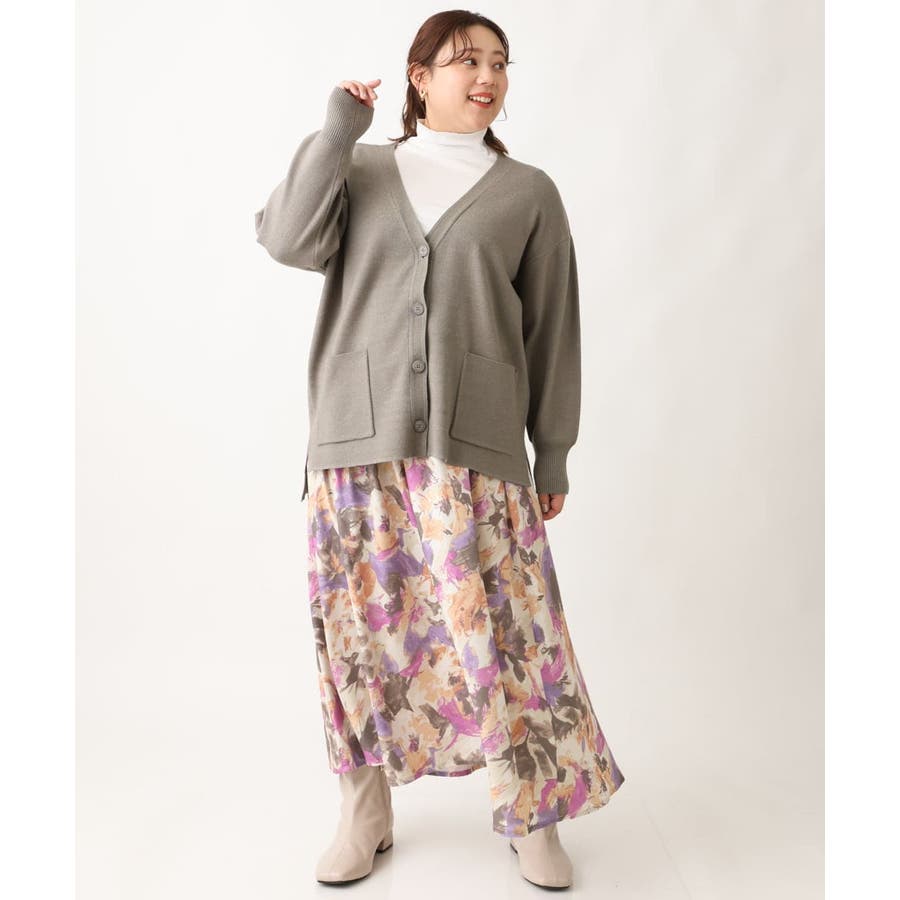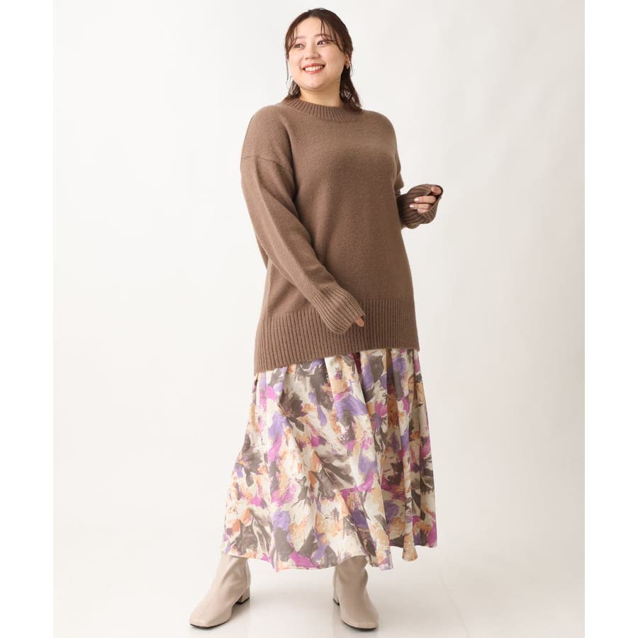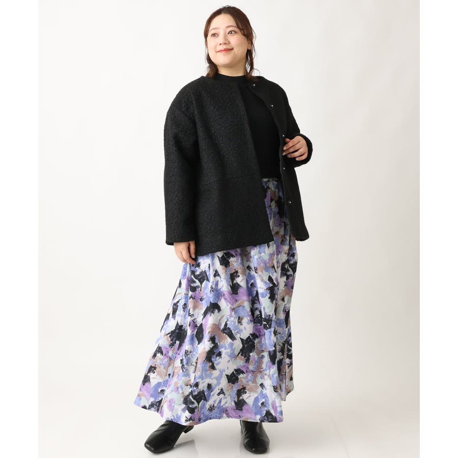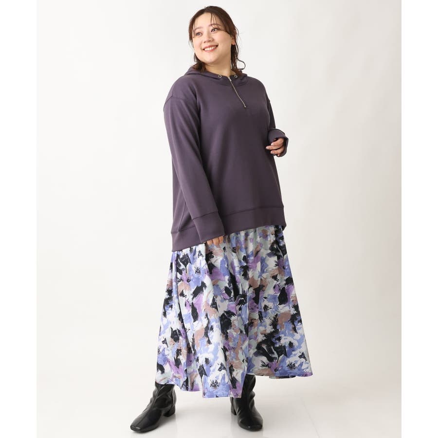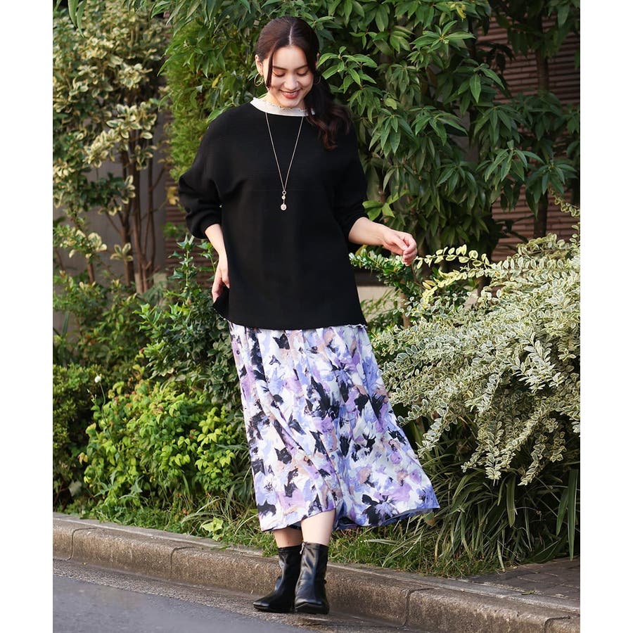 【大きいサイズ】ペイントフラワープリントスカート