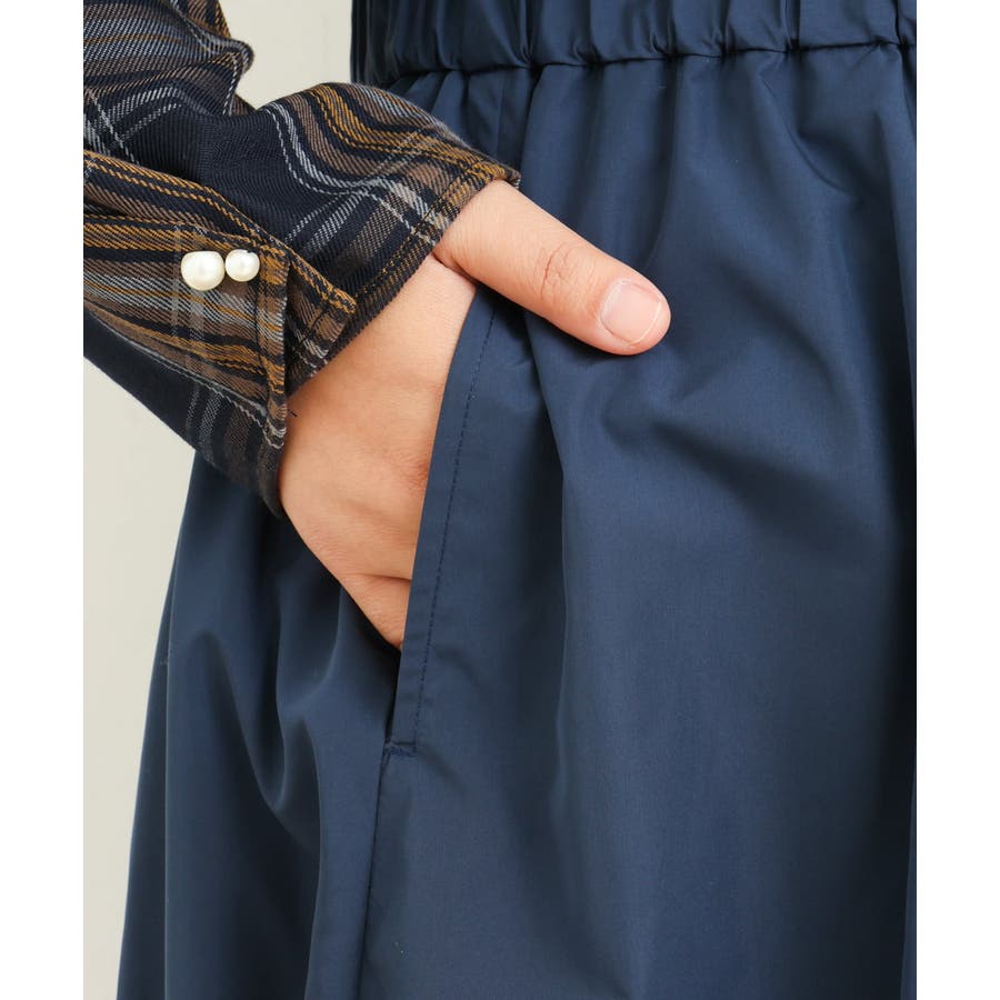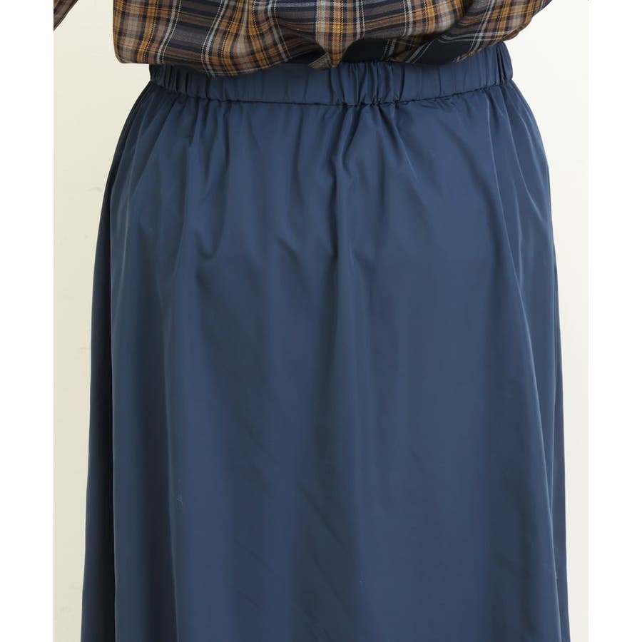 前スカートにギャザーをいれないことでウエストまわりがすっきり見える効果があります。